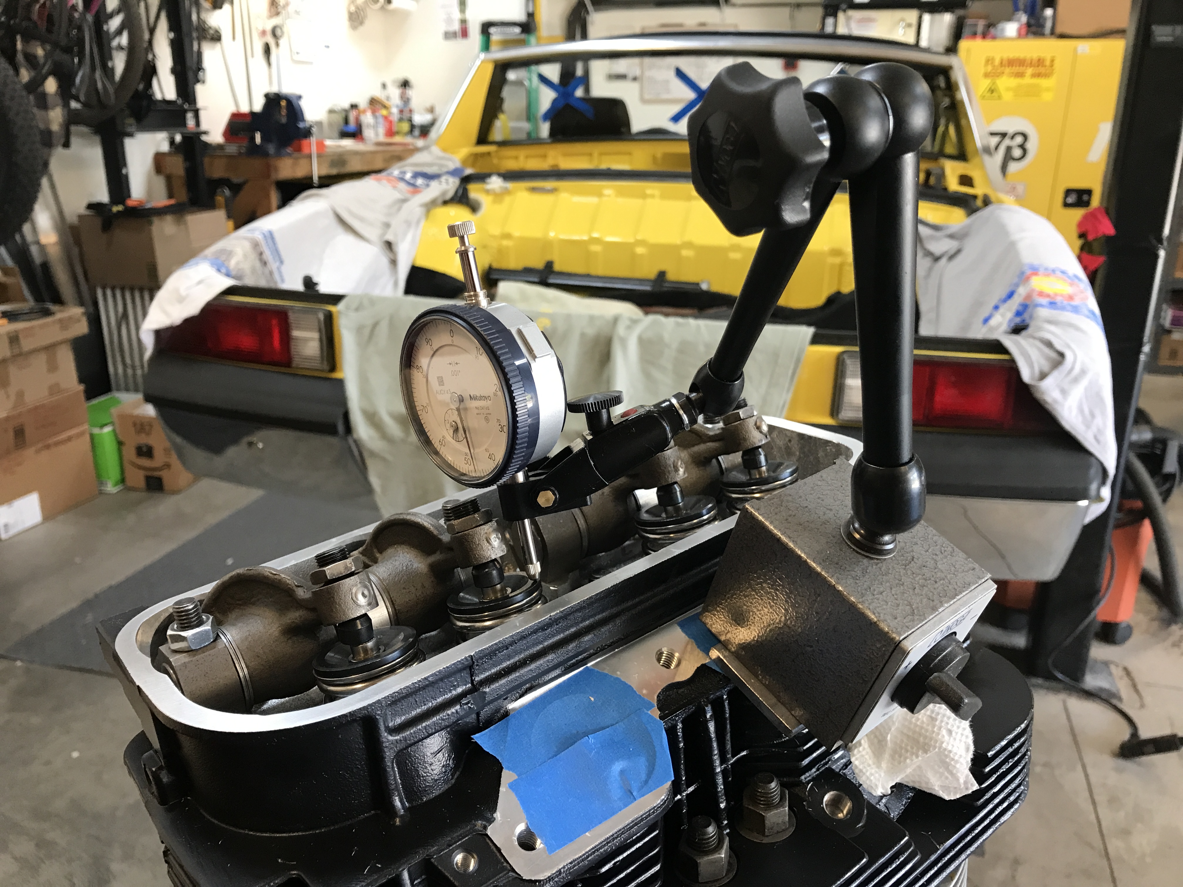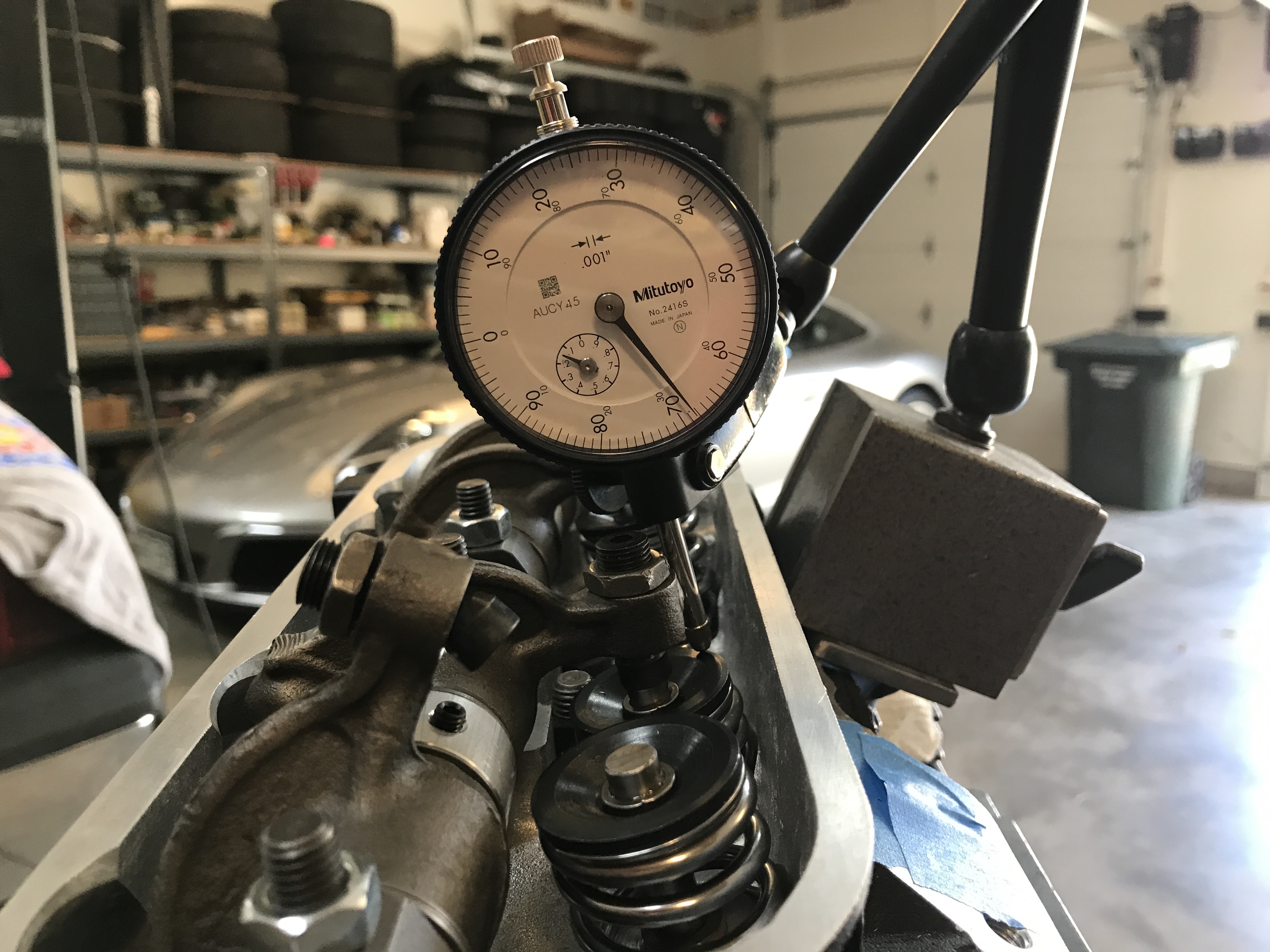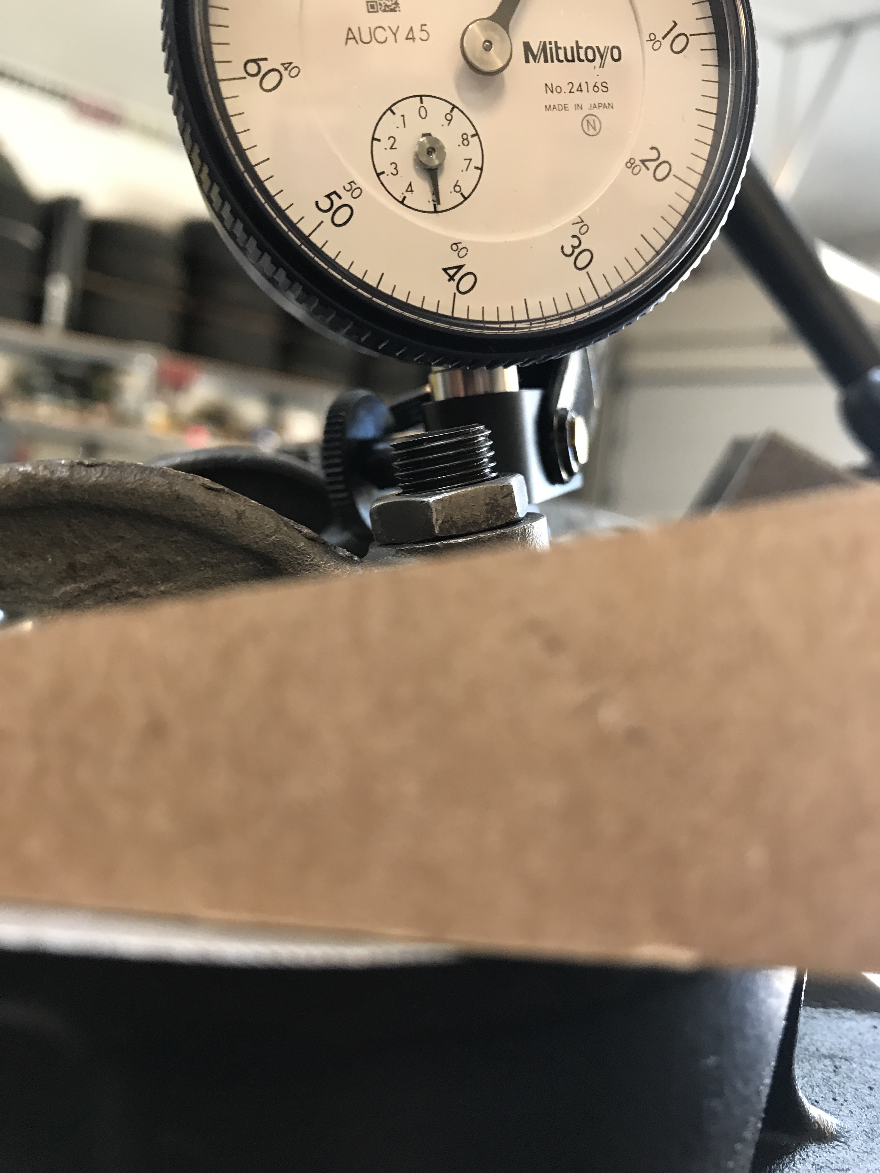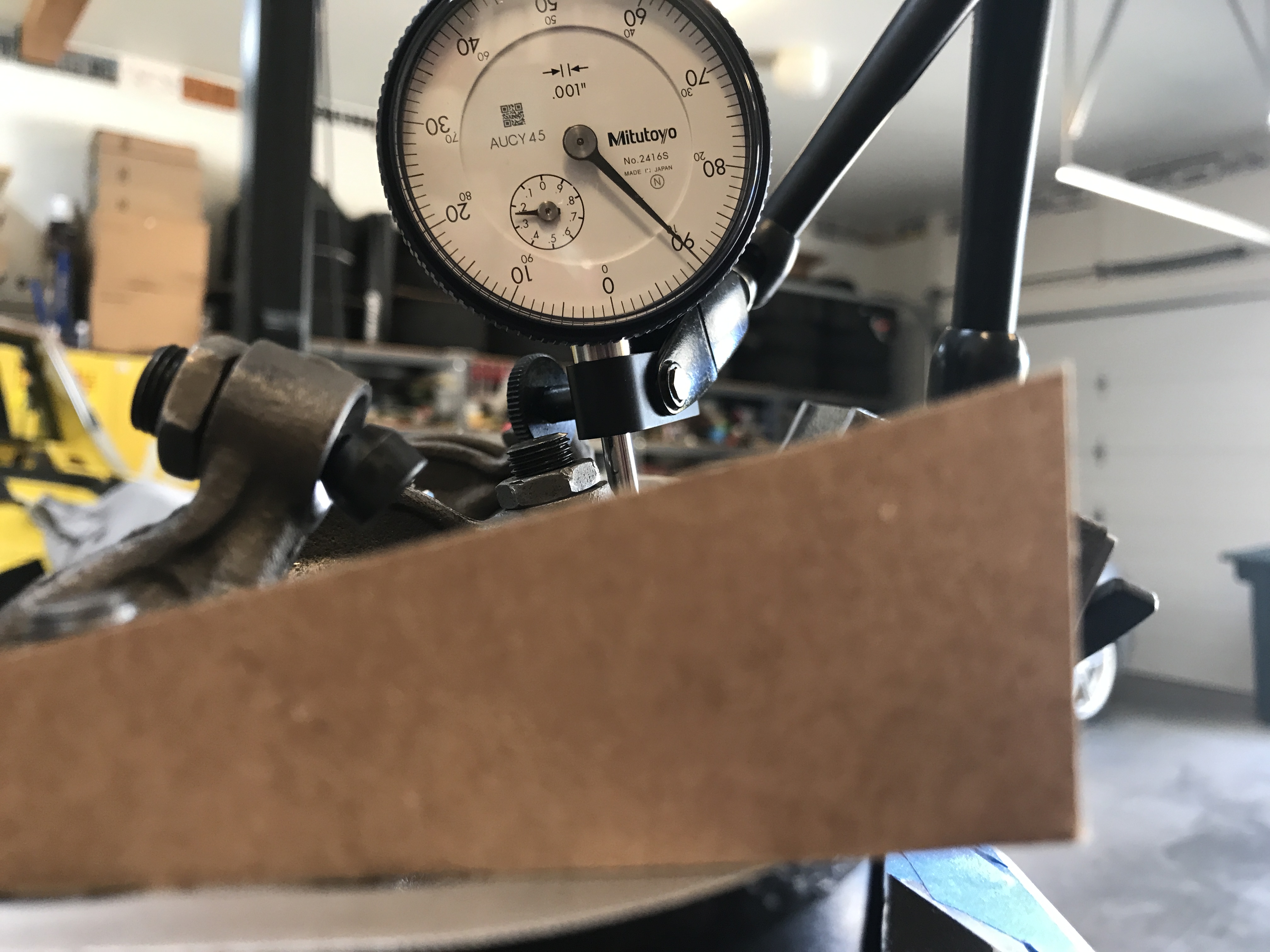 OK, time to play with the pushrod lengths again. Here is my new dial gauge set up.