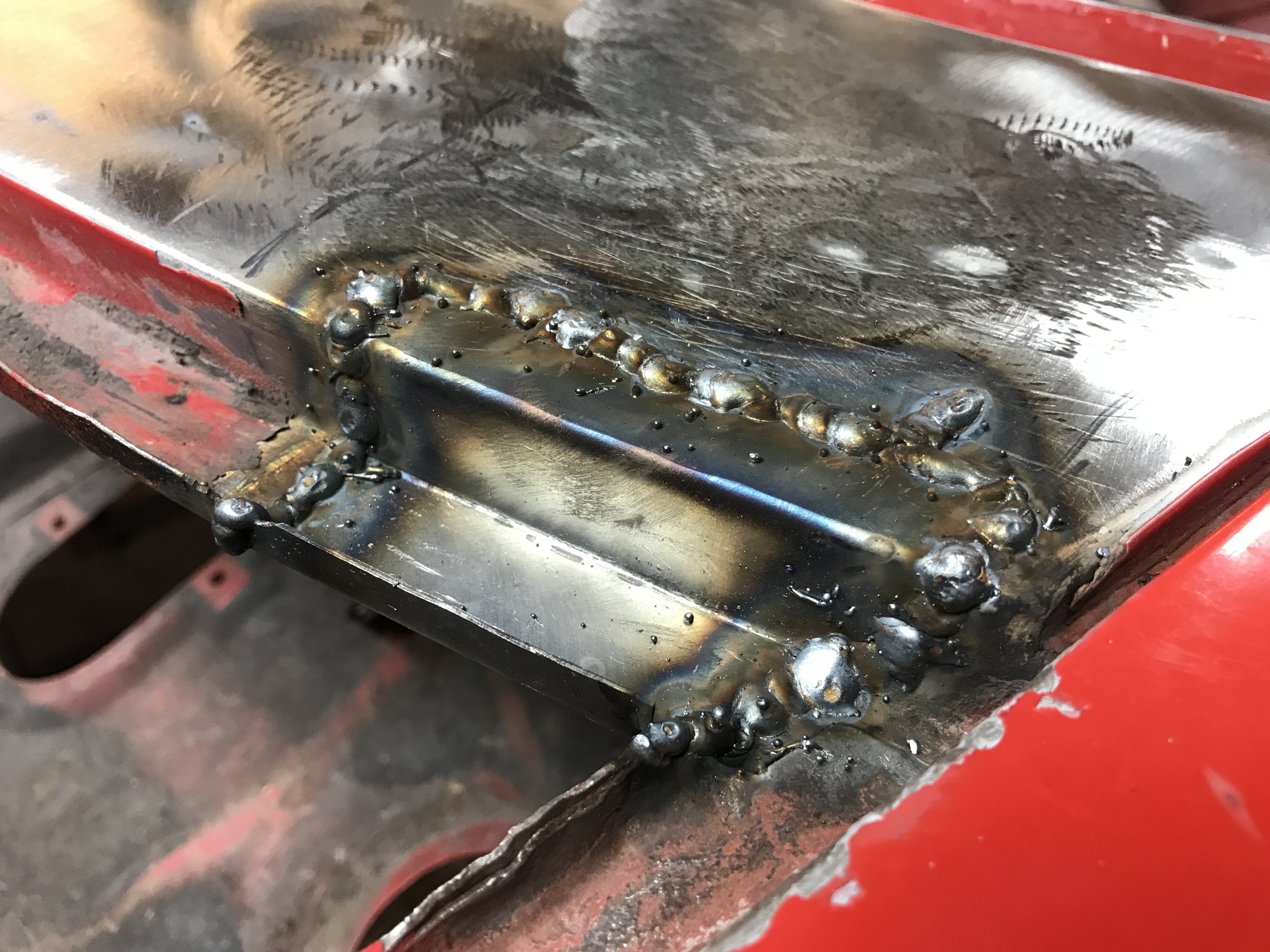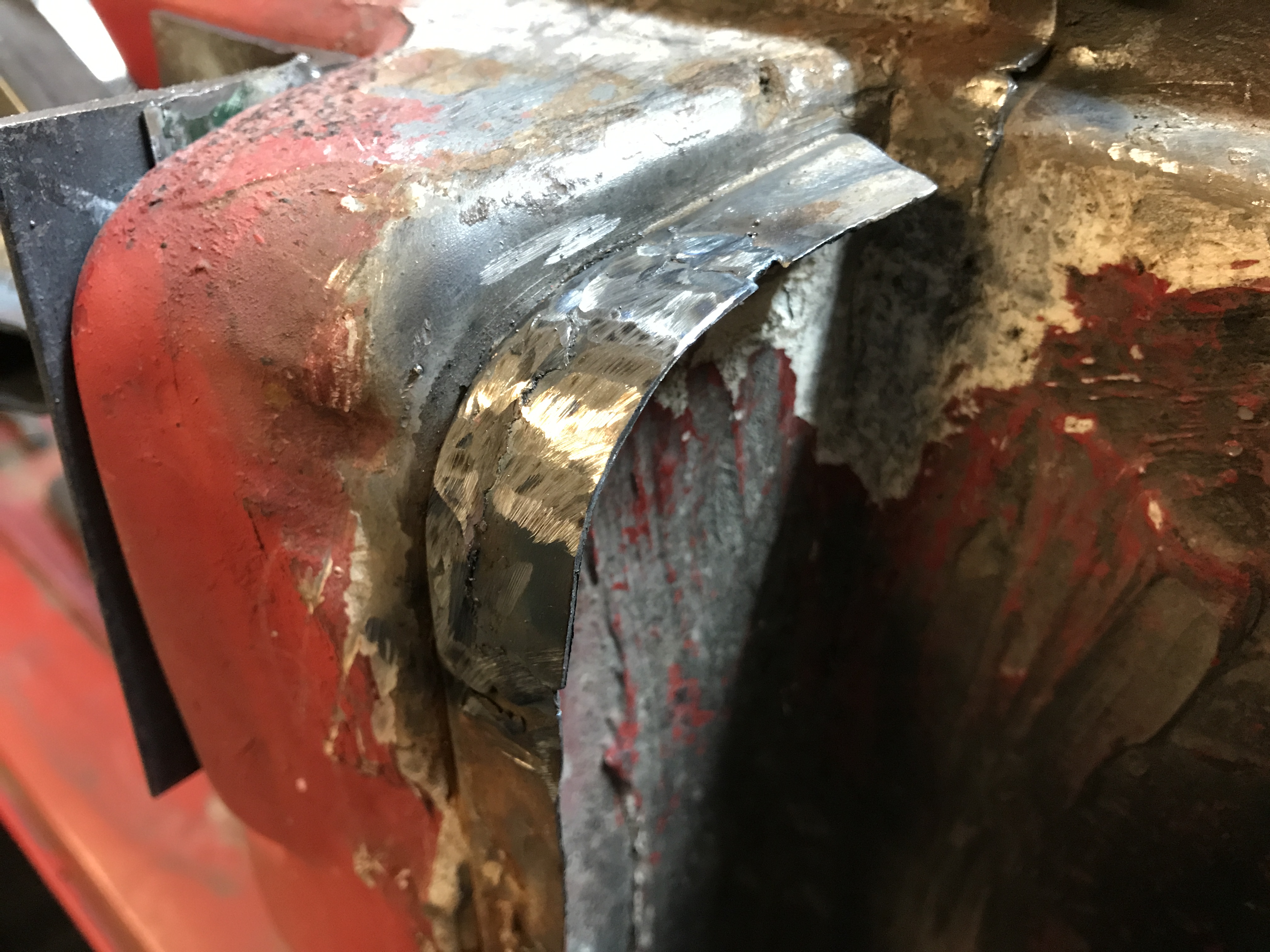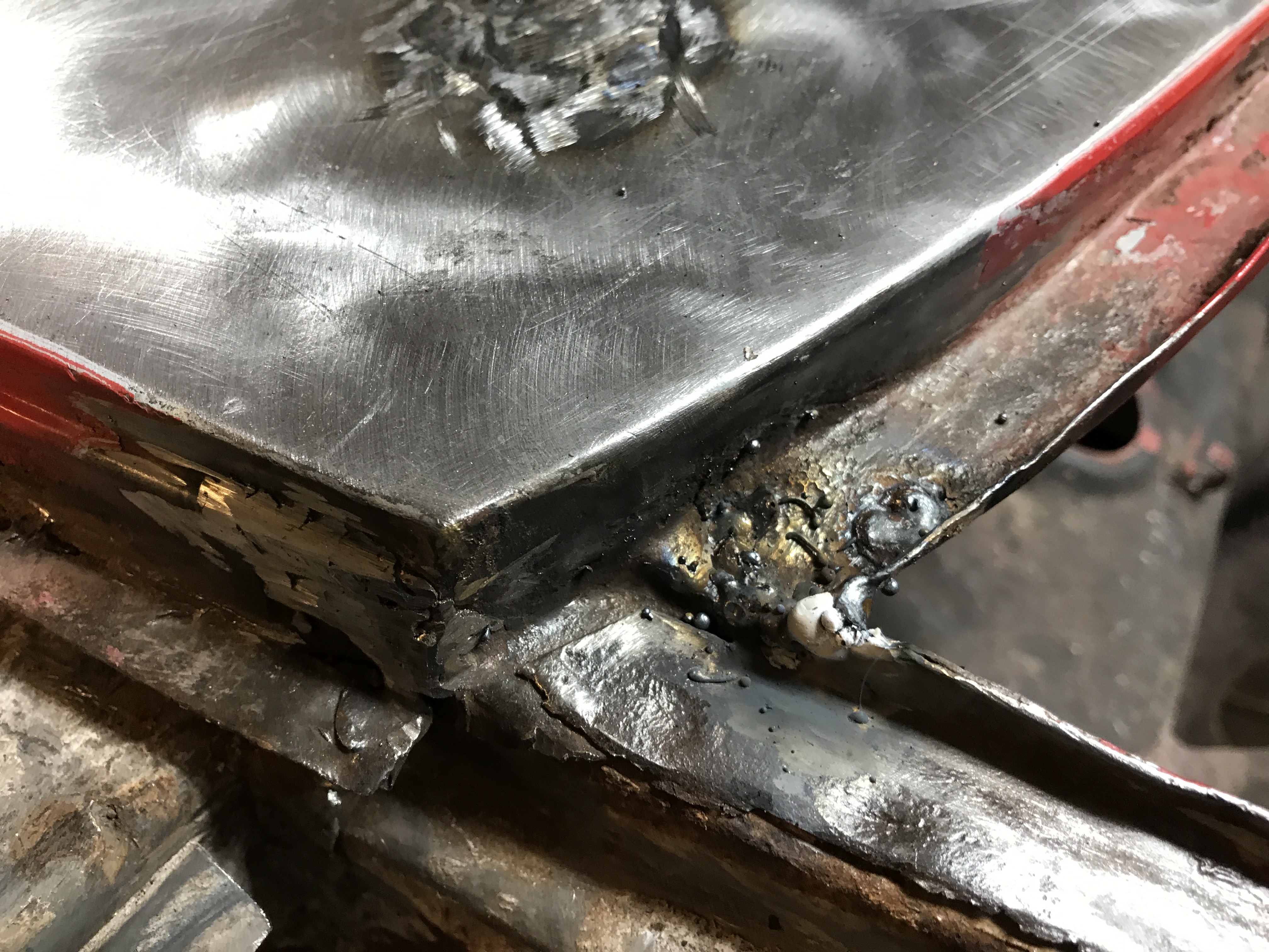 Looking inside the fender, where it meets the mounting flange on the A-pillar.