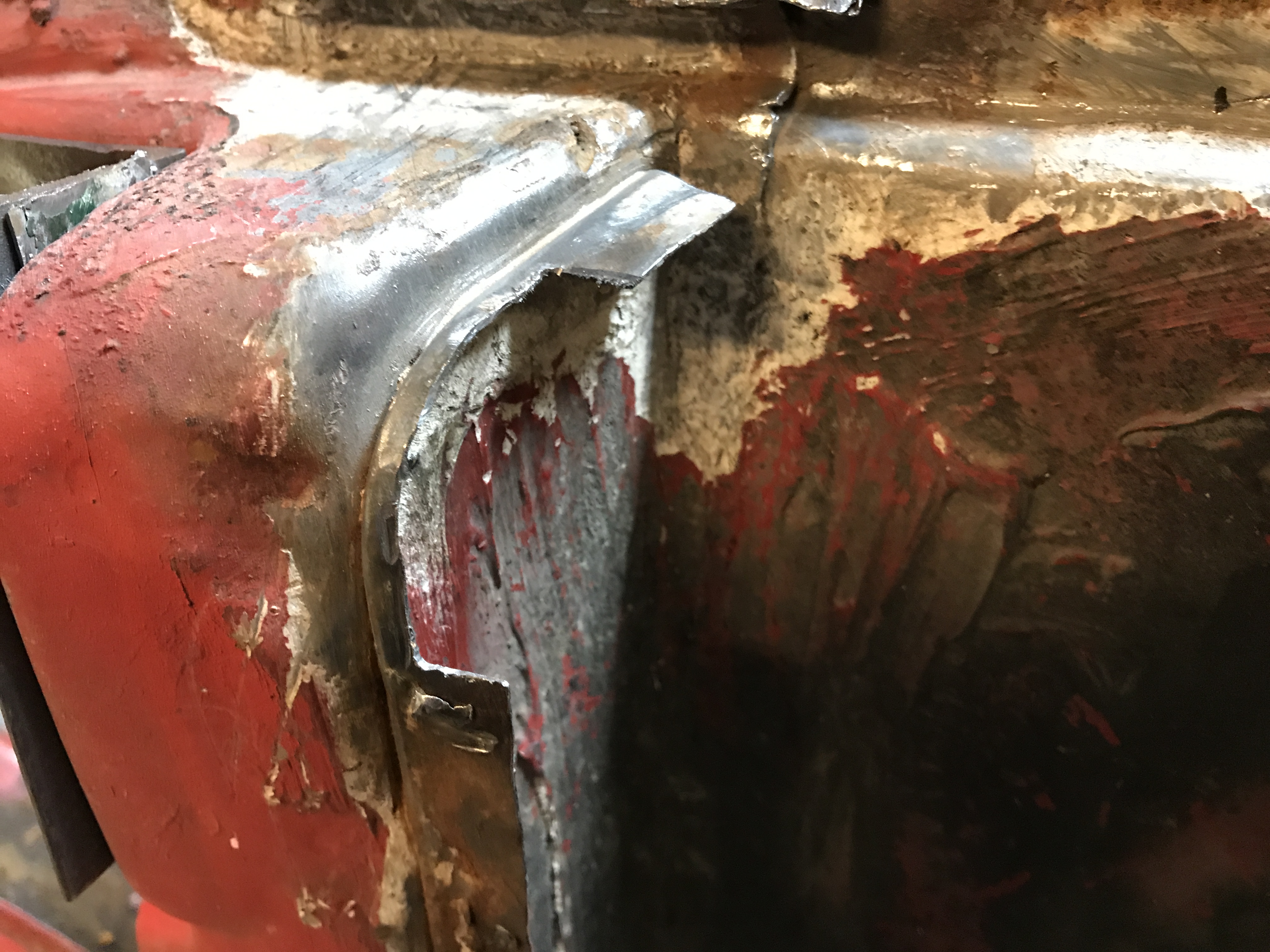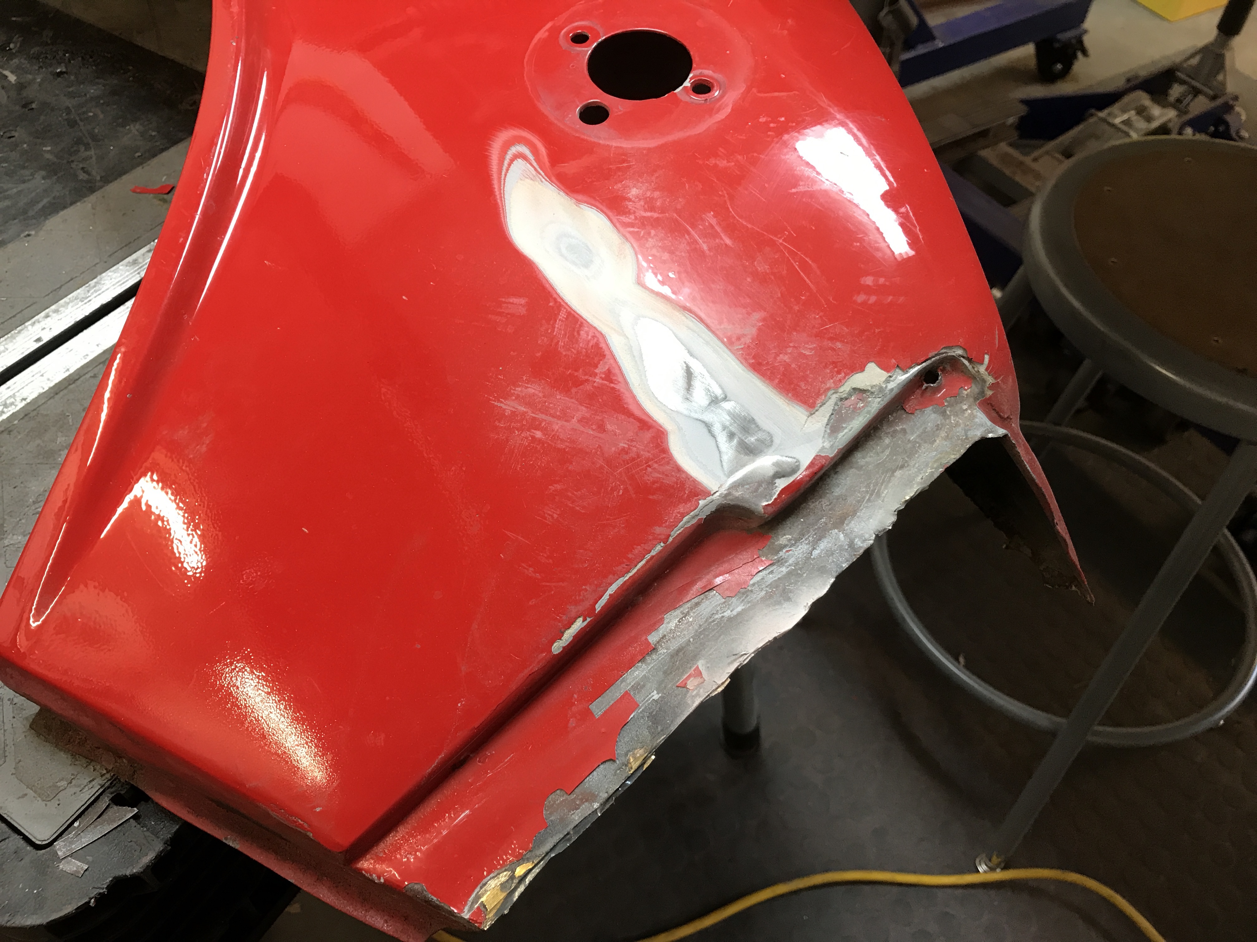 With the recess 90% straight, the next step is stripping paint to expose the bare metal. Guess what--bondo!