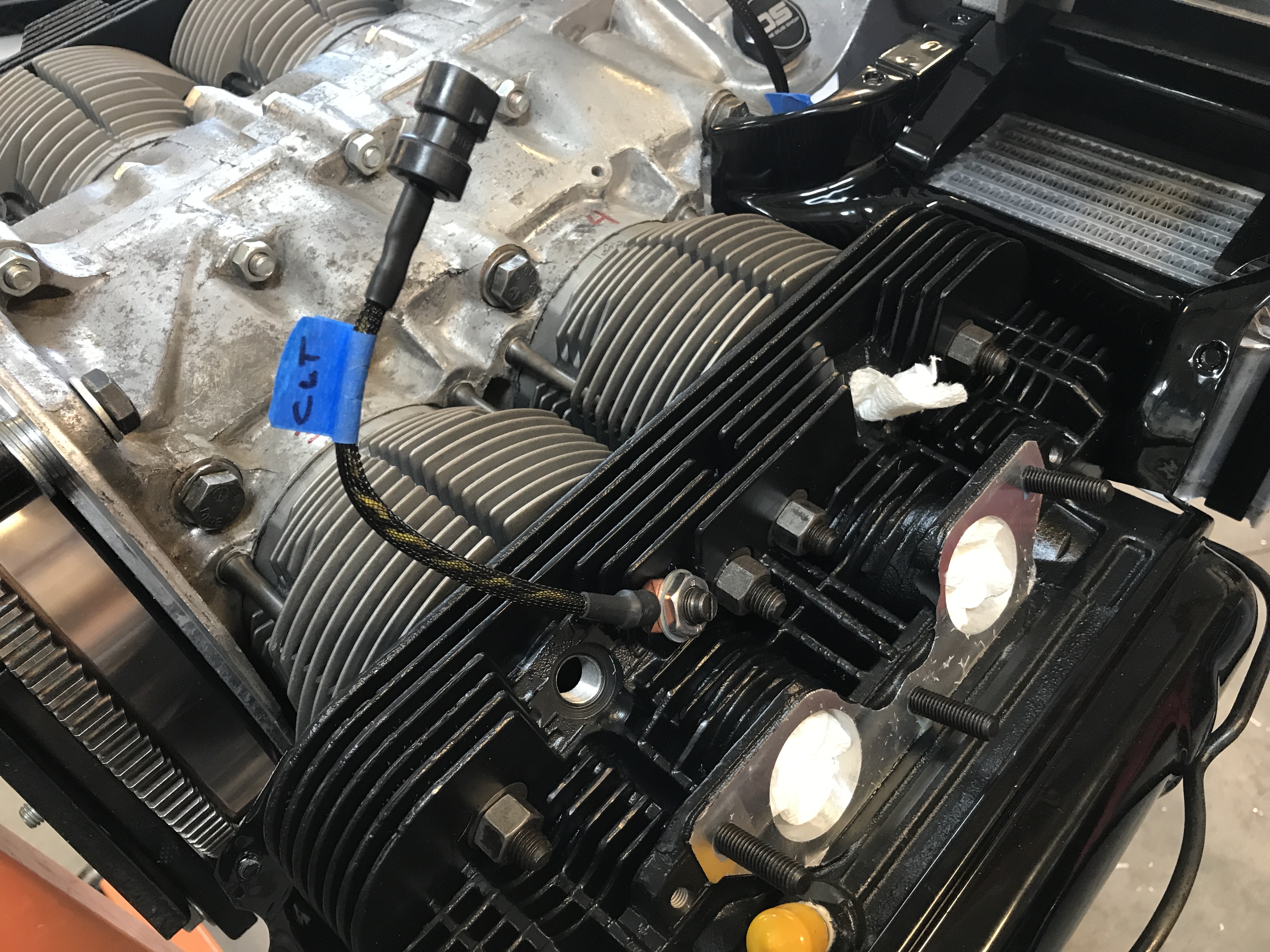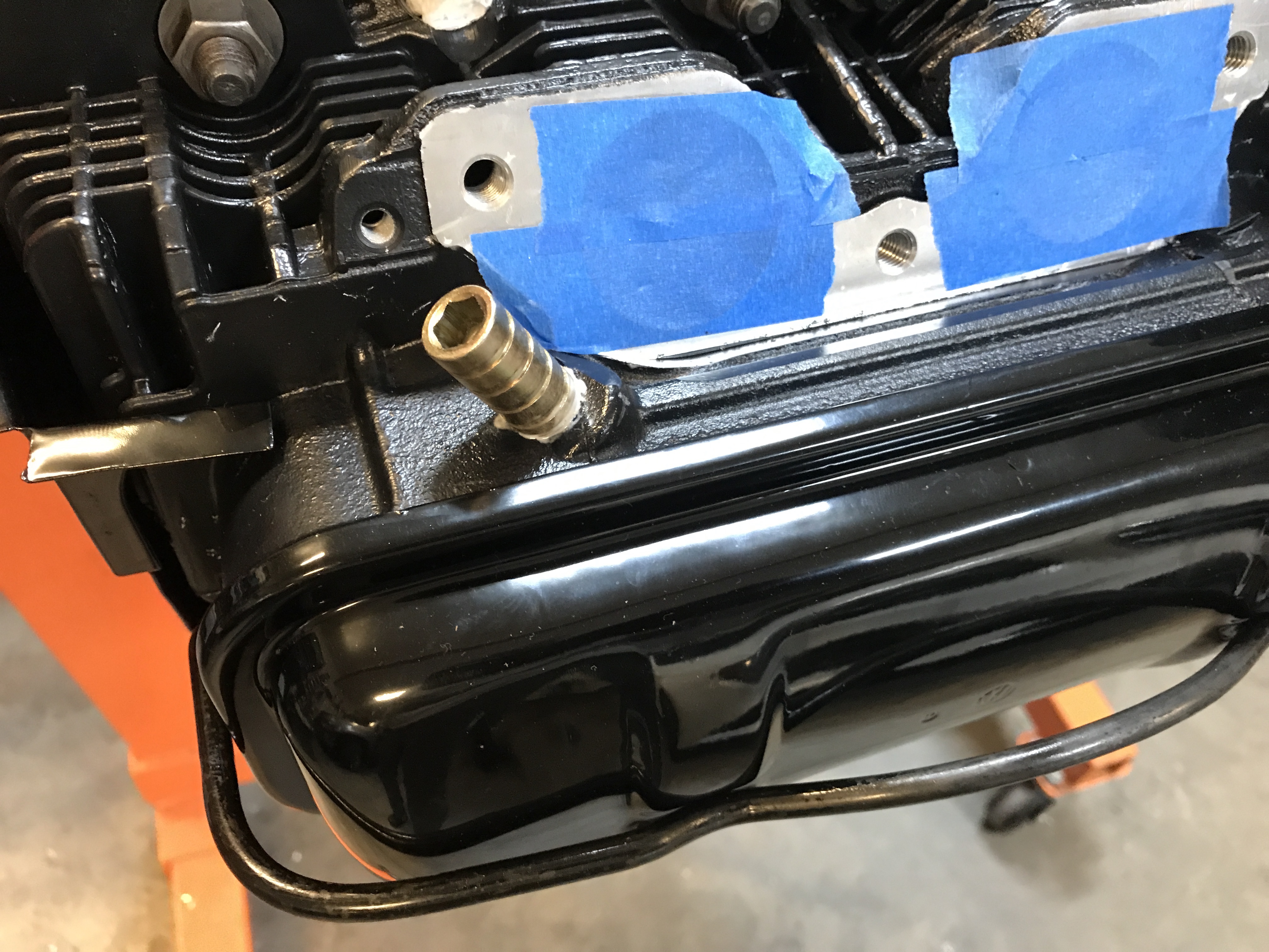 One more thing before the sheet metal can go on: the new head temperature sensor for the Dub Shop EFI system.