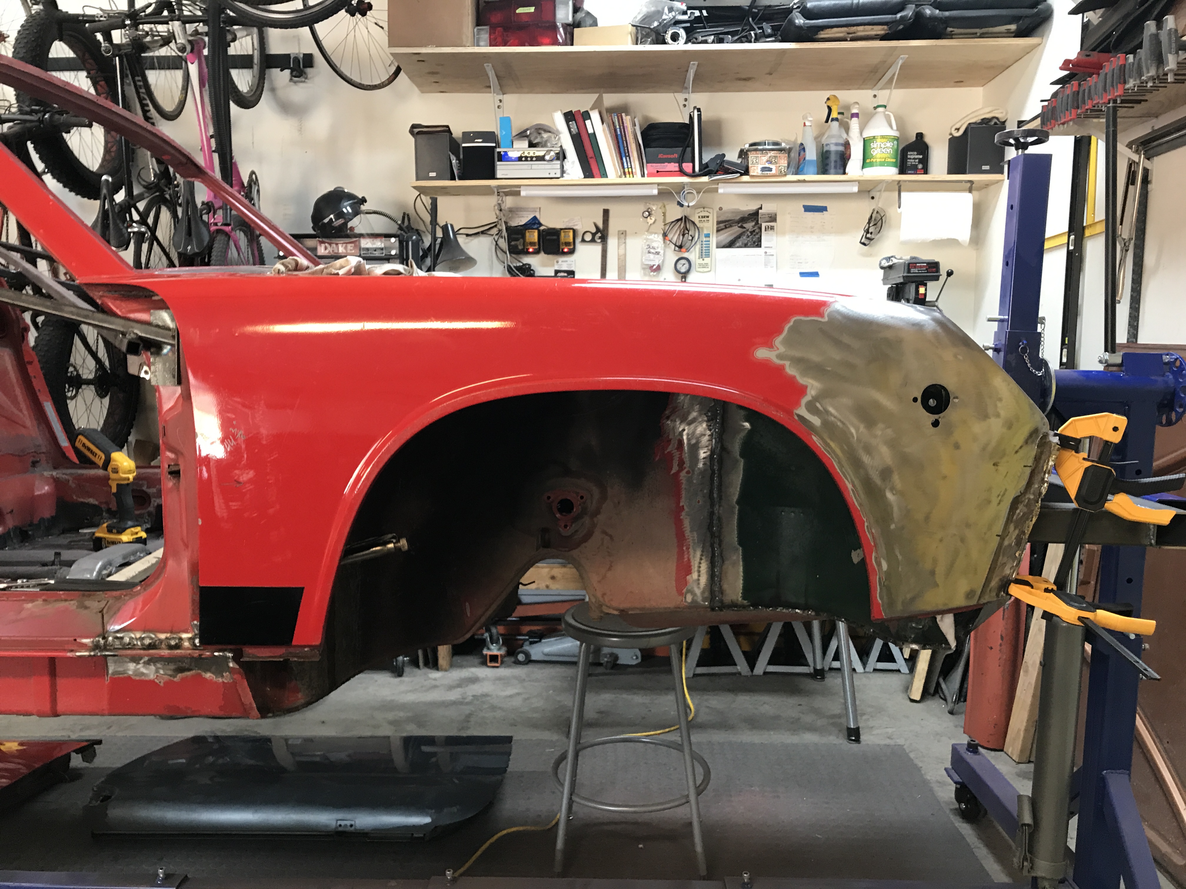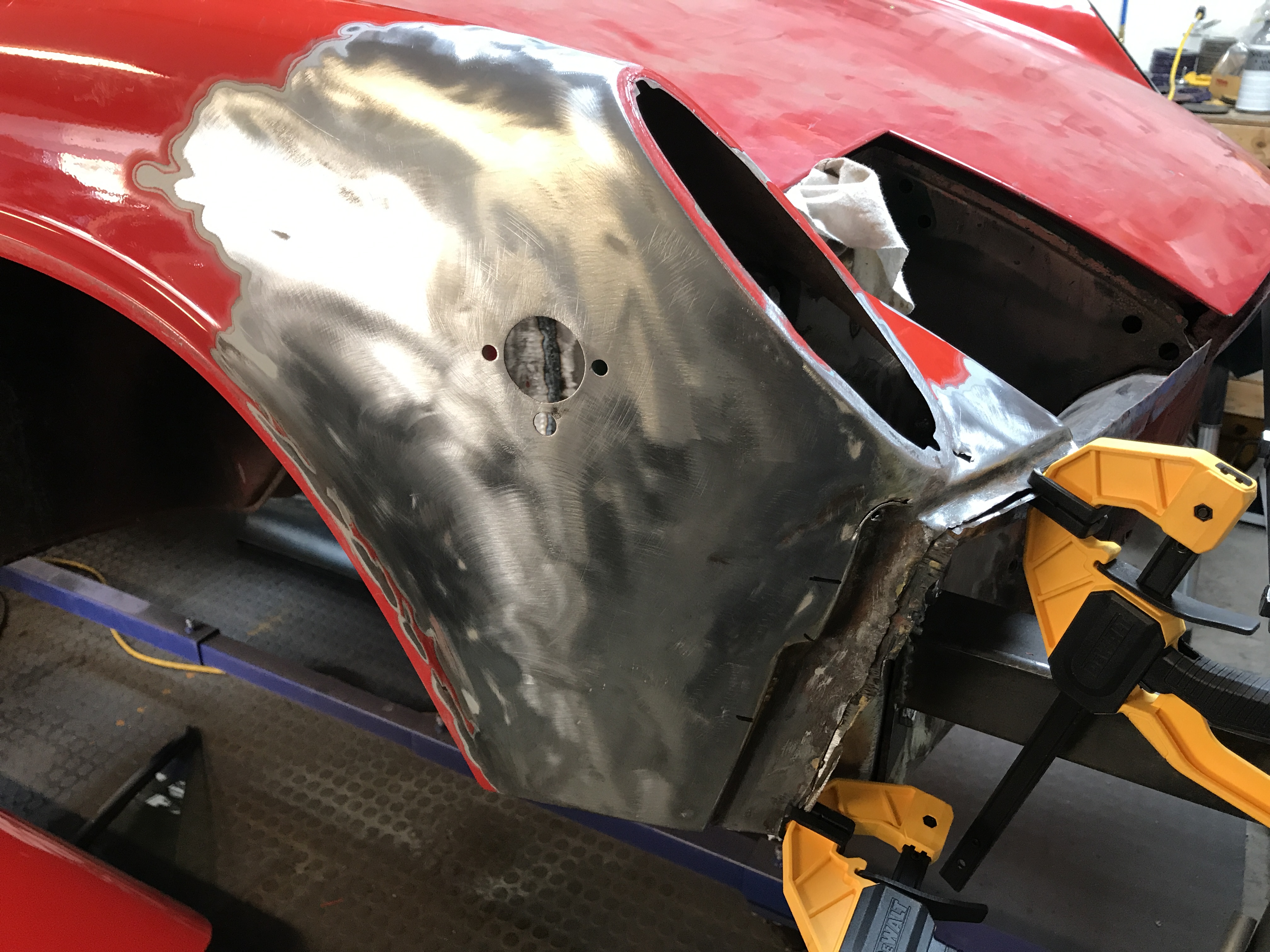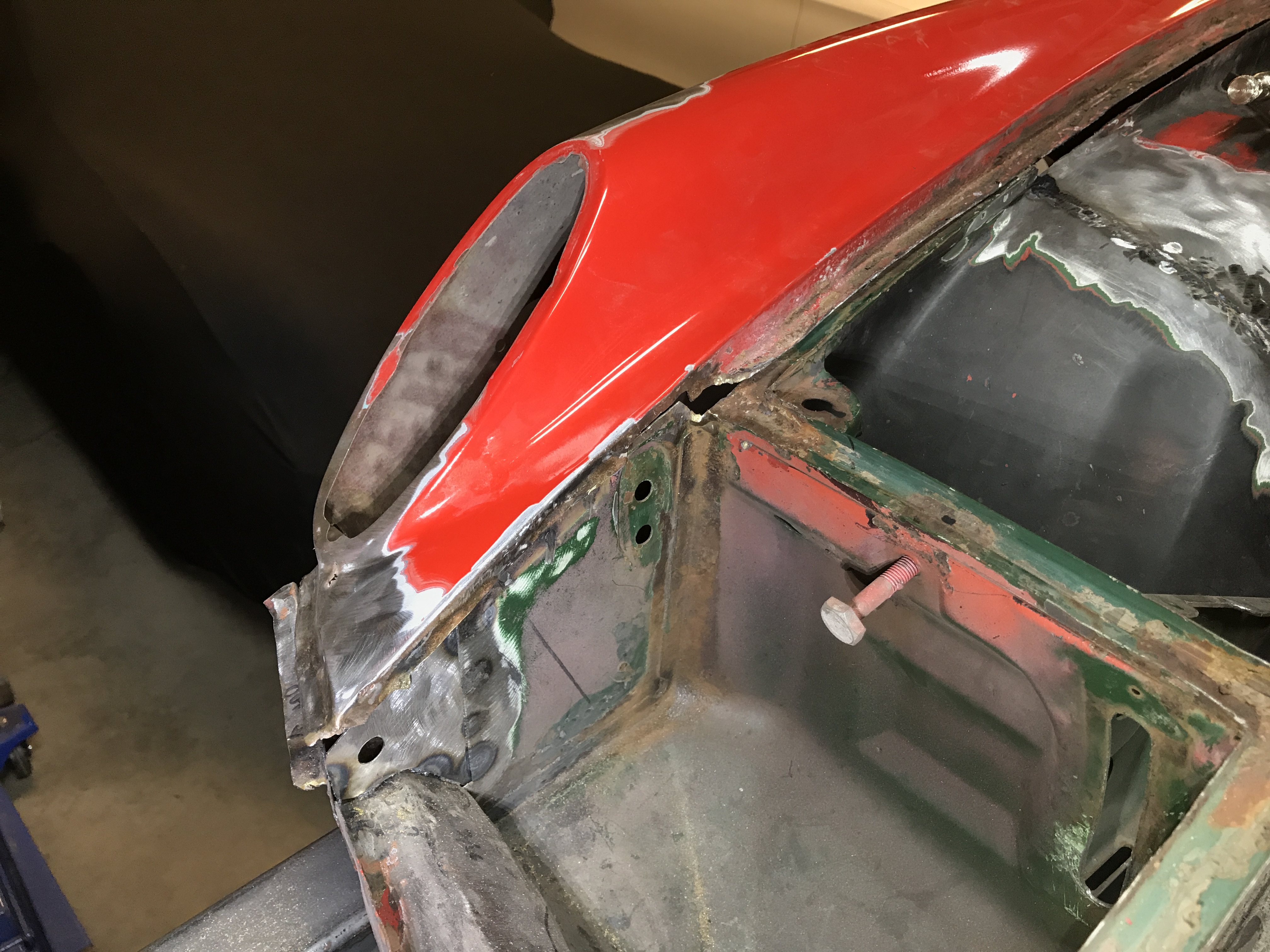 MIG time today. First, the patch in the left side of the cowl. I think it would help to set the wire feed just a bit down. (IMG:style_emoticons/default/welder.gif) Less time grinding the welds down. Thanks for the suggestion. Each day it seems like the MIG responds differently. |