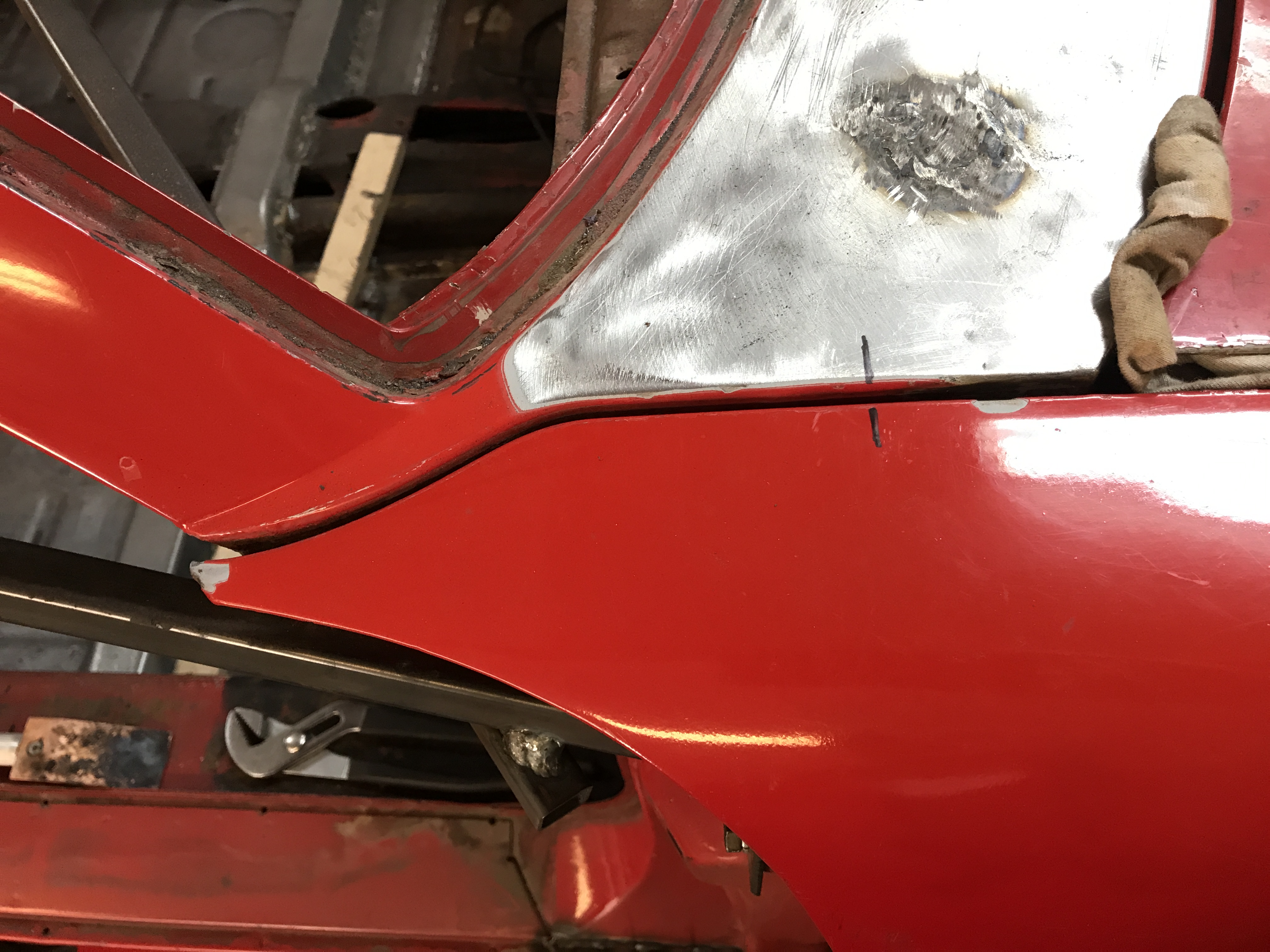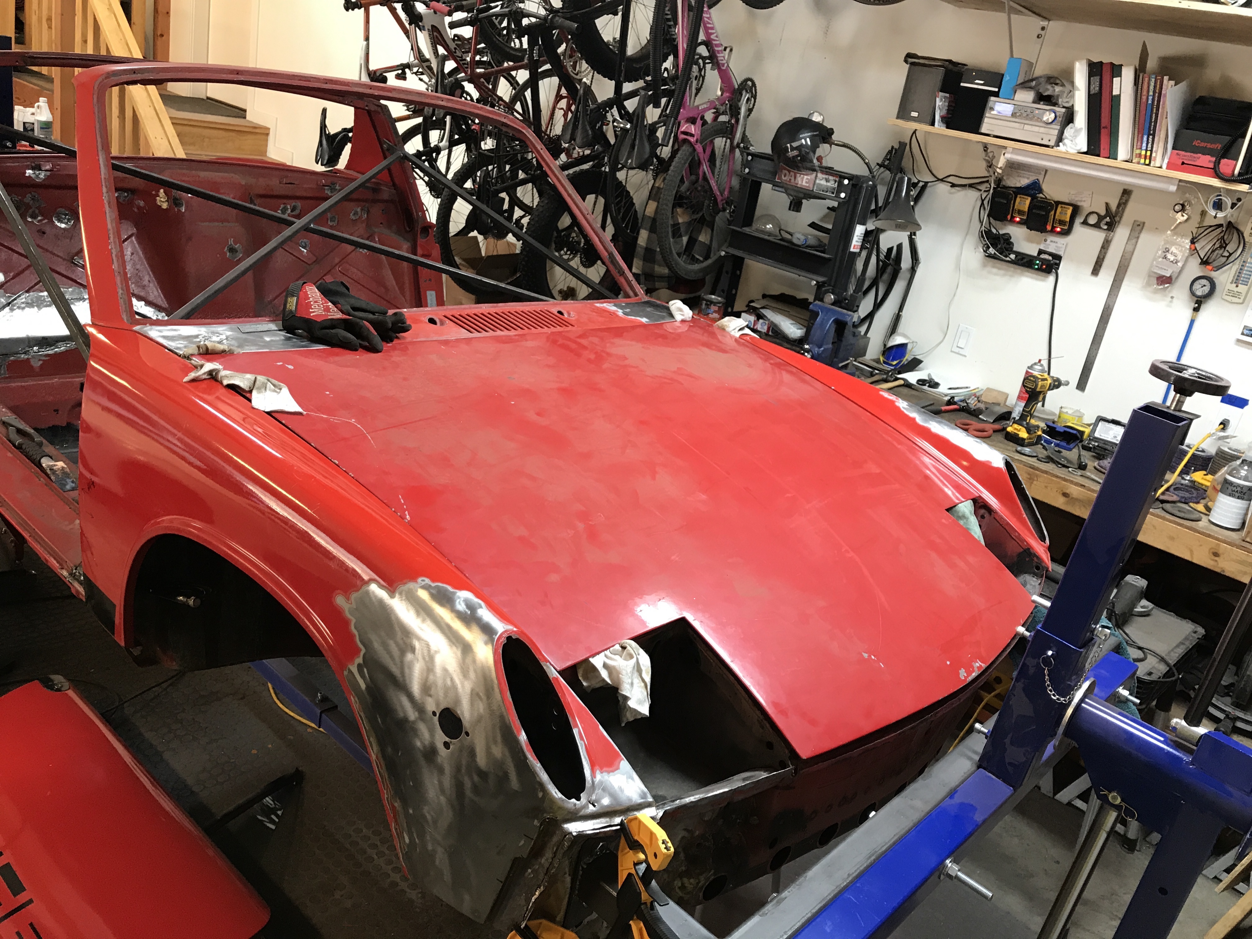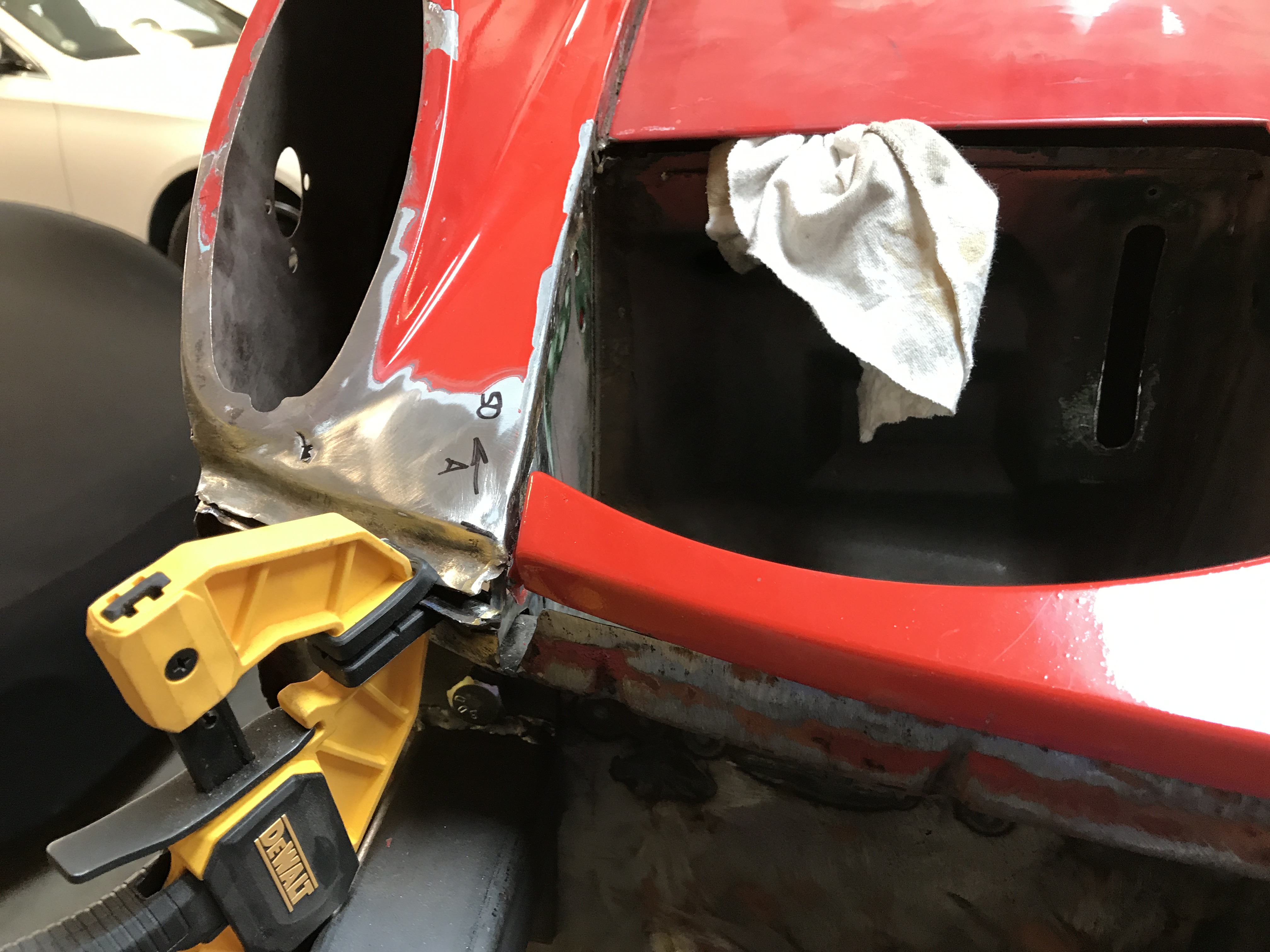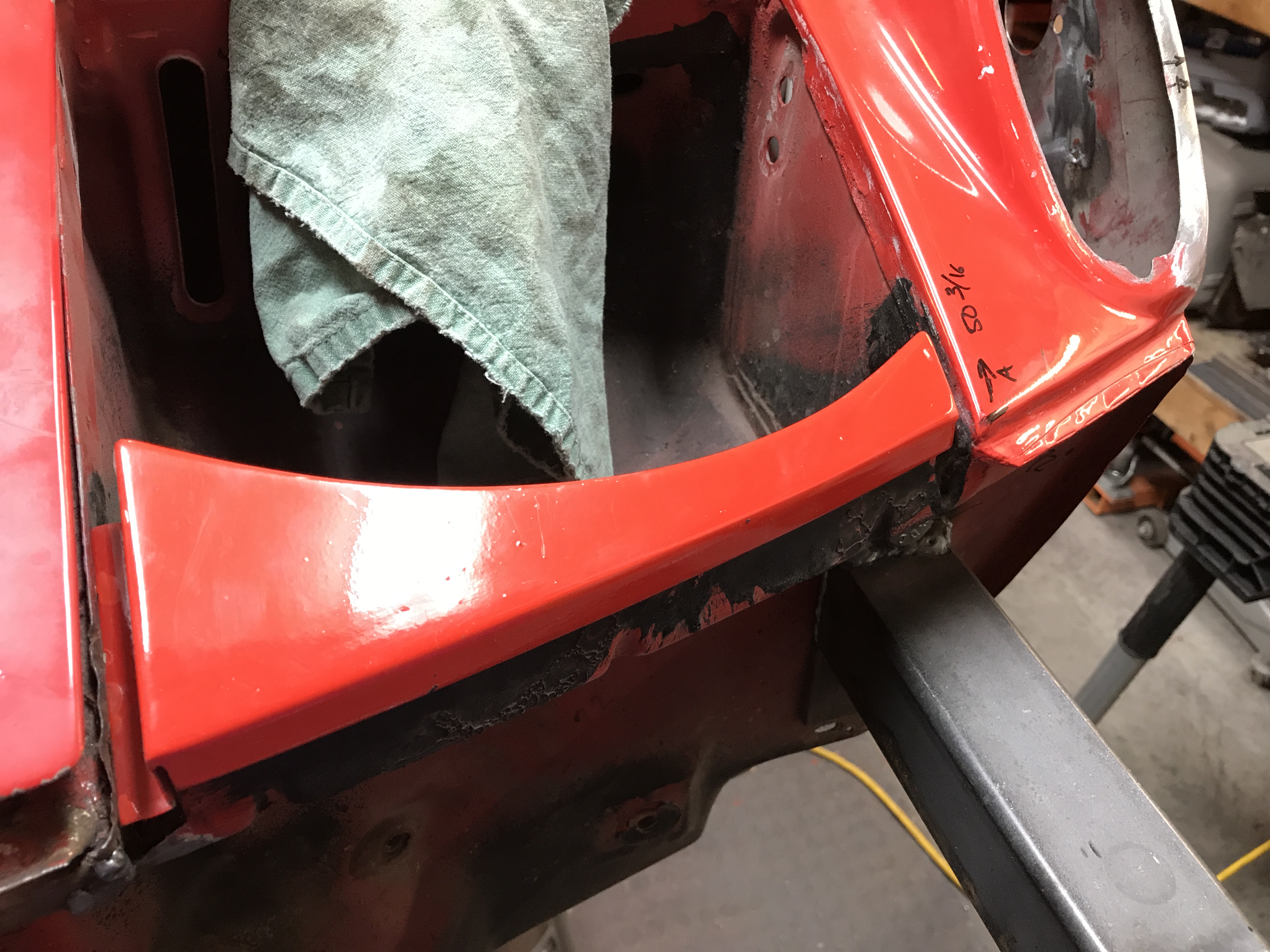 I also propped the frunk lid in place, a good reference since this piece (not from this car) is almost certainly straight.