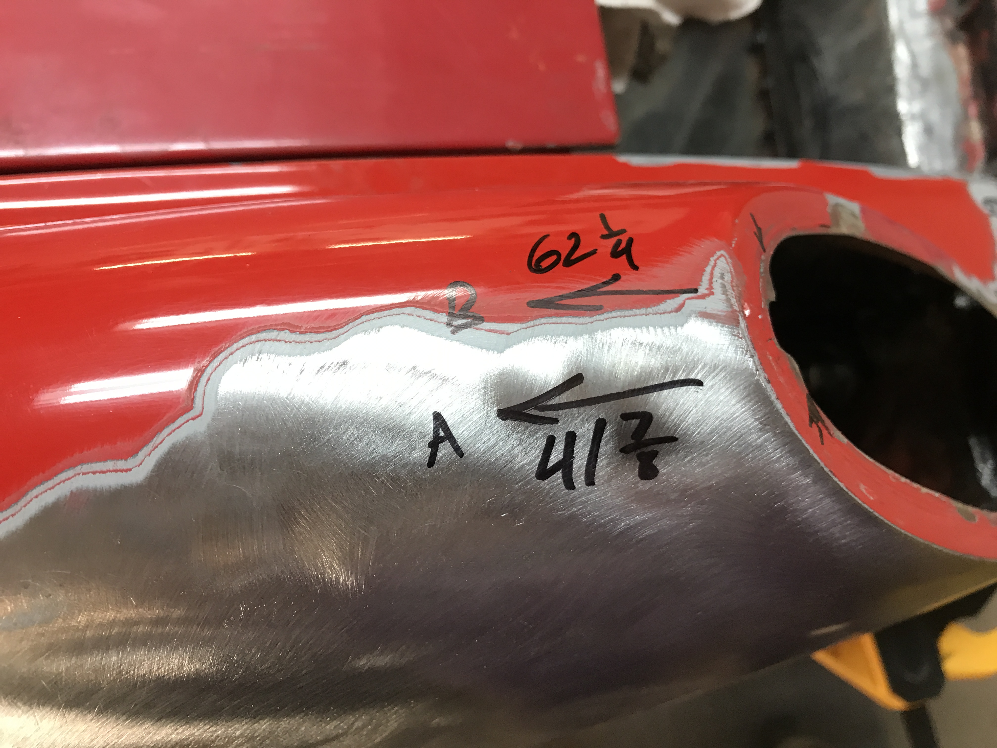 After more brush clearing, I got back to the 914, still in measuring mode. I marked more reference points, and compared distances and angles from right to left.
