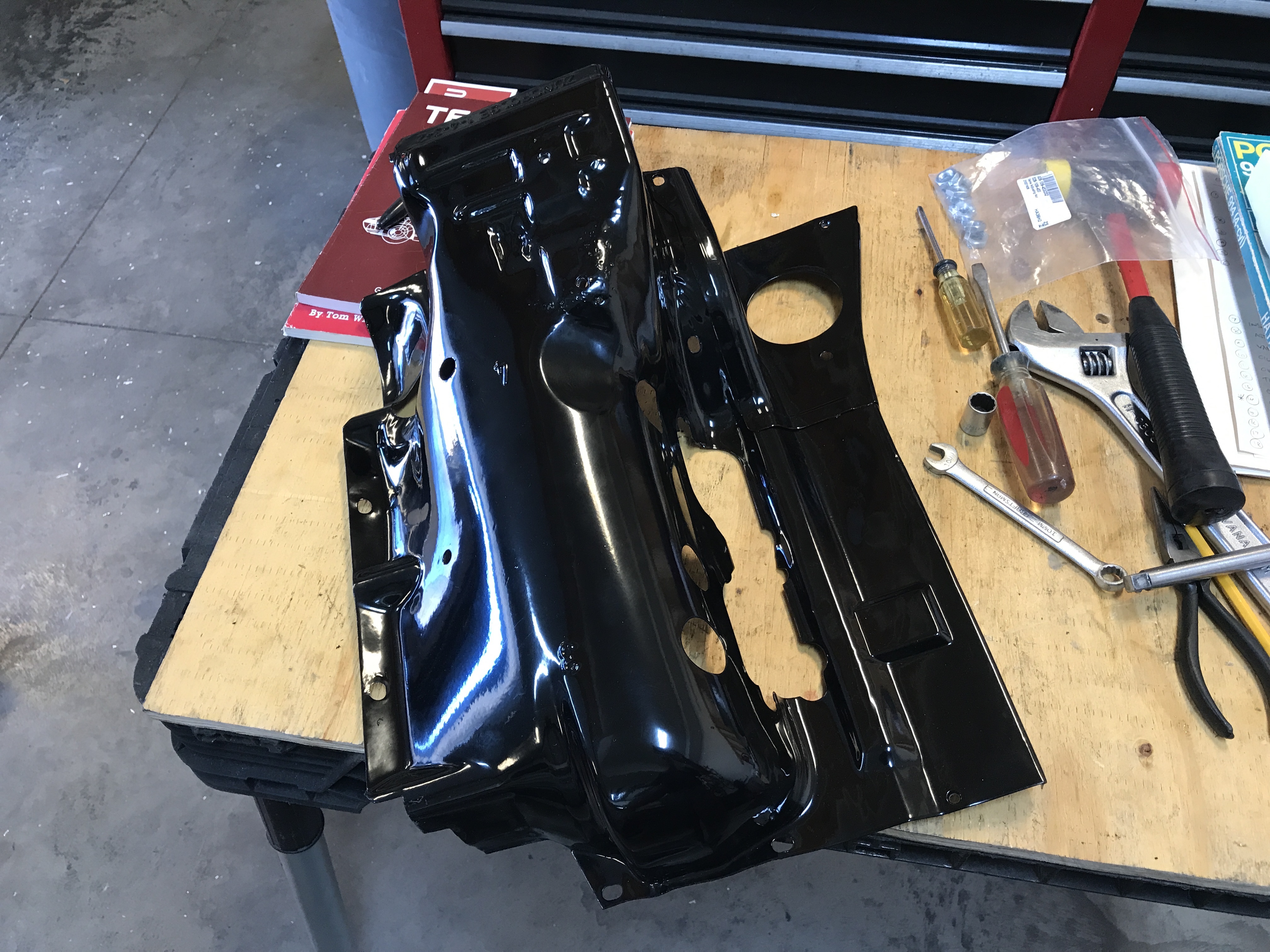 It took a bit of twisting and shoving, but I got the right side installed. Maybe the sheet metal warped a bit when the powder coating shop sand-blasted it.