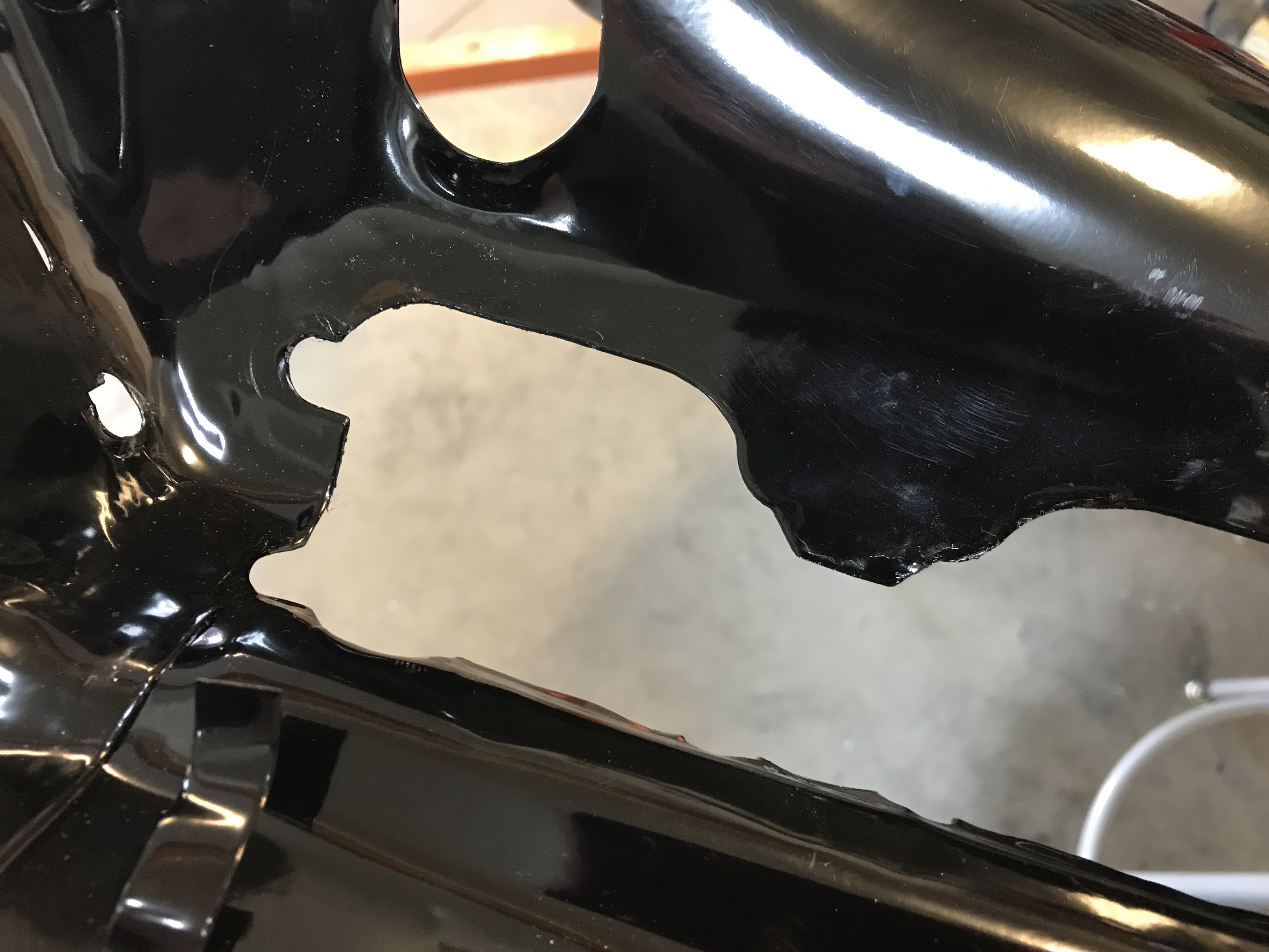 That led to several attempts to file the opening, test fit, and then finally paint the raw edges.