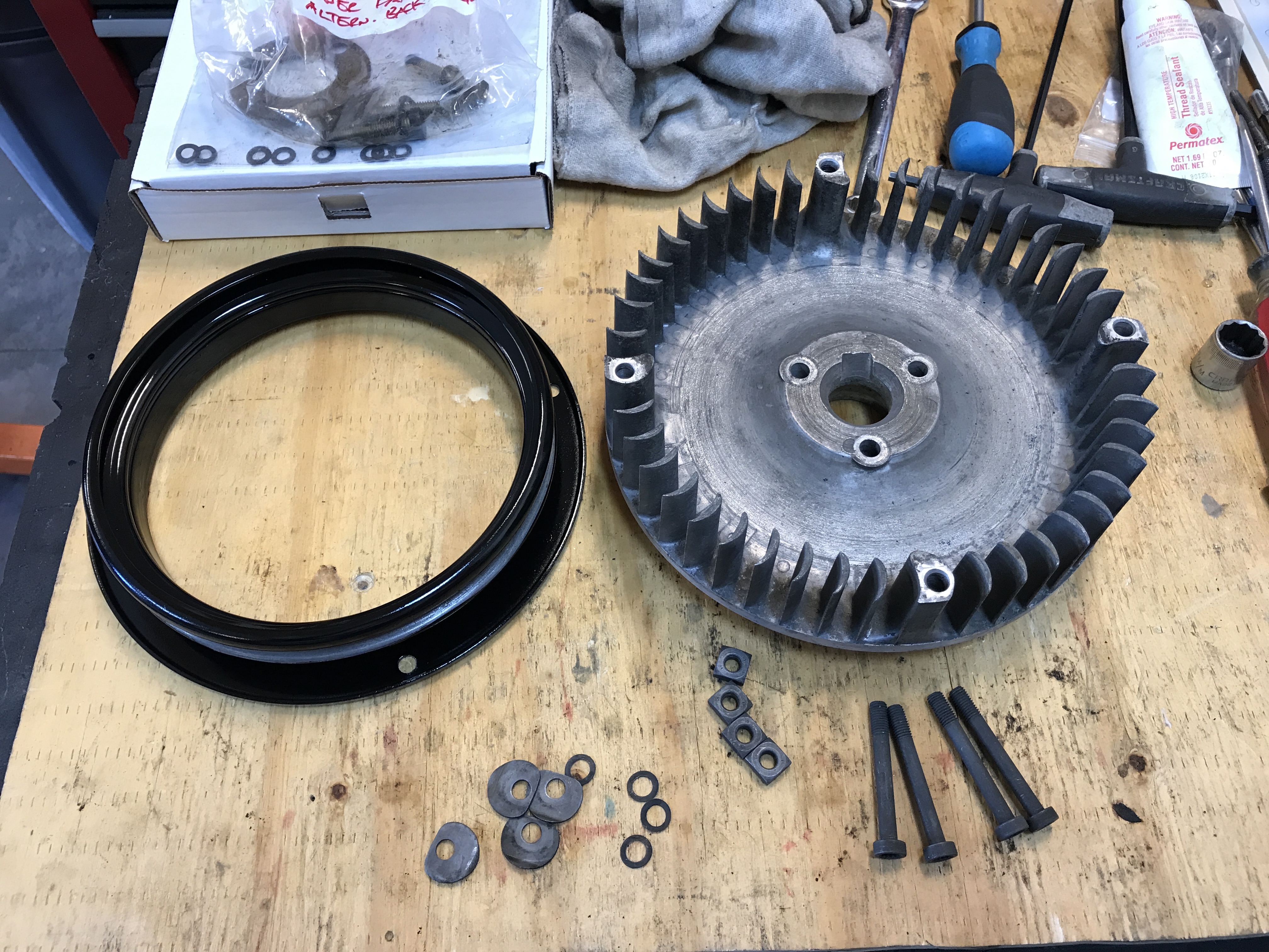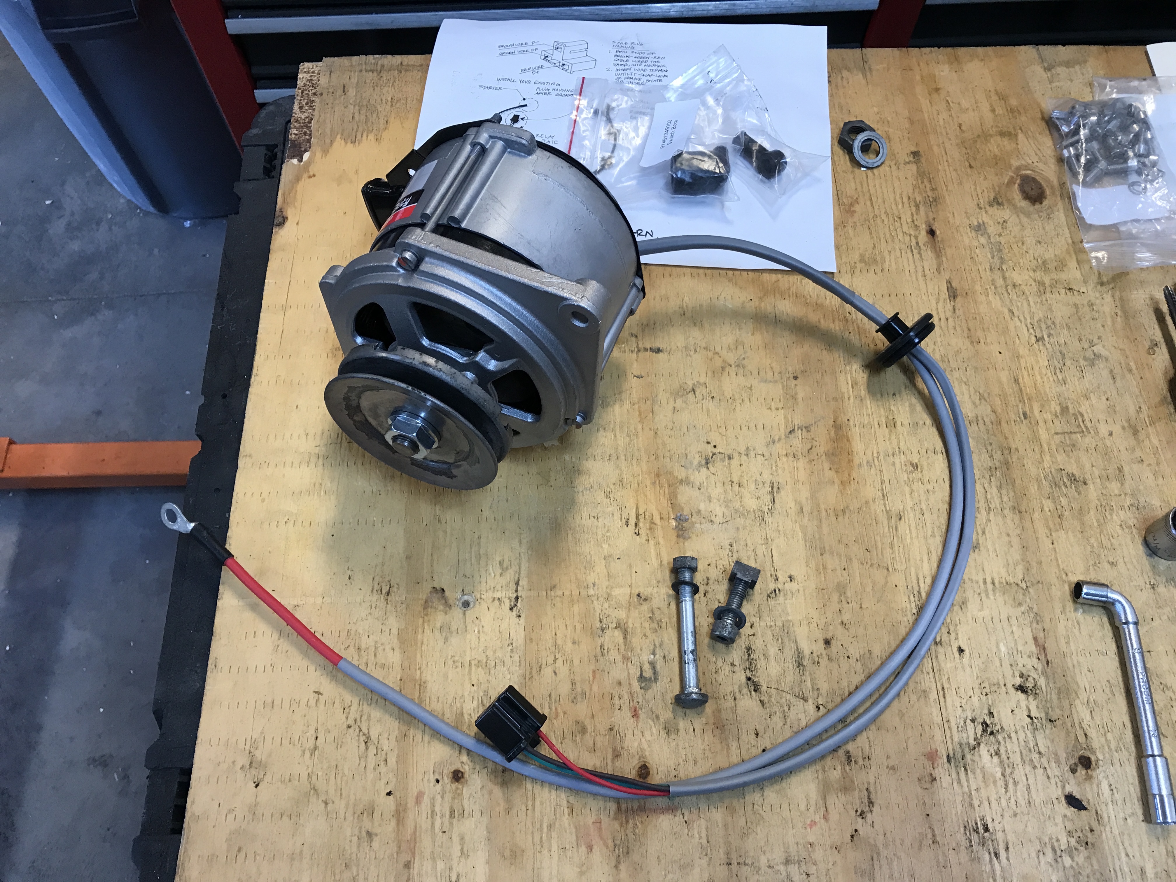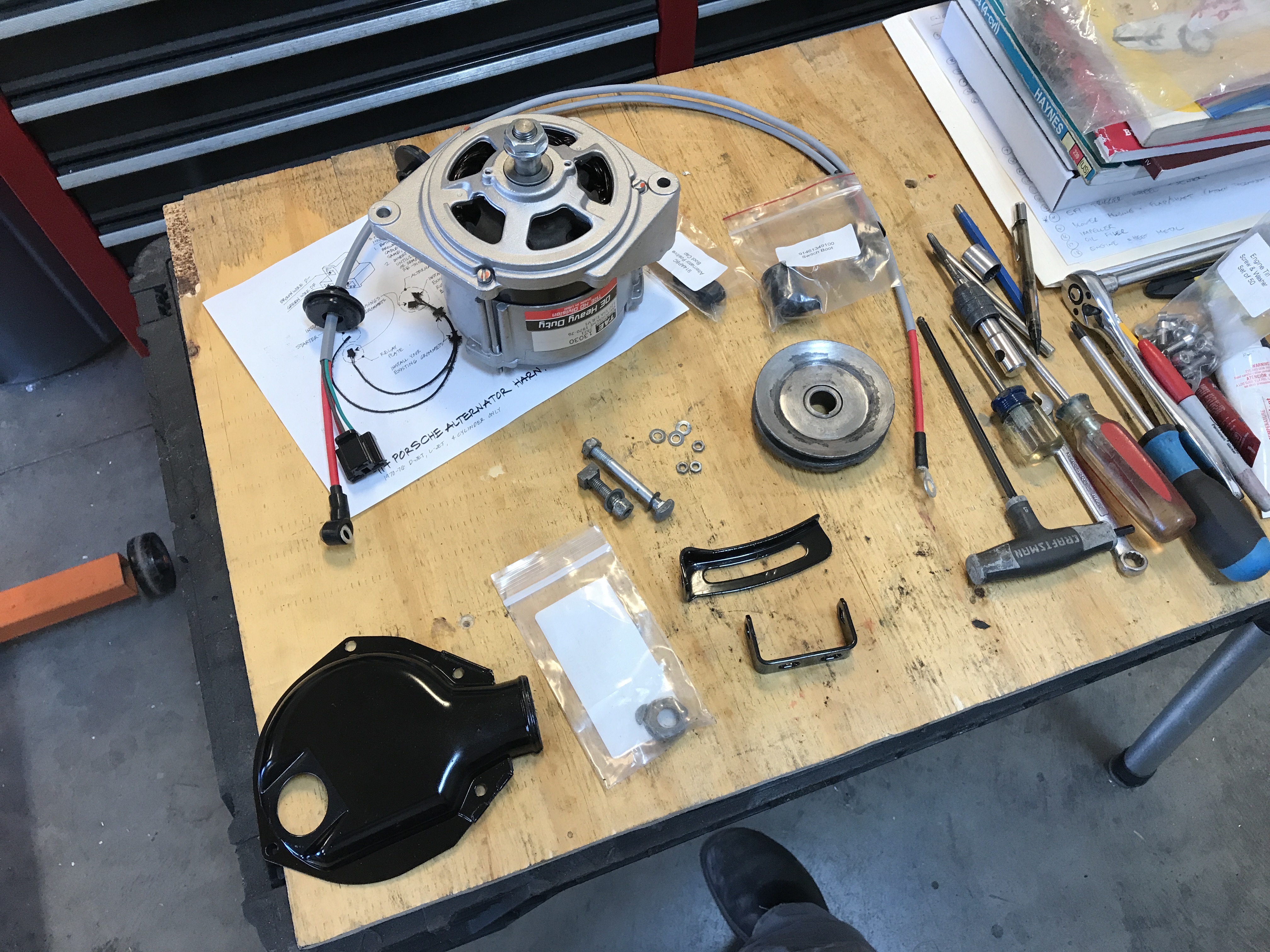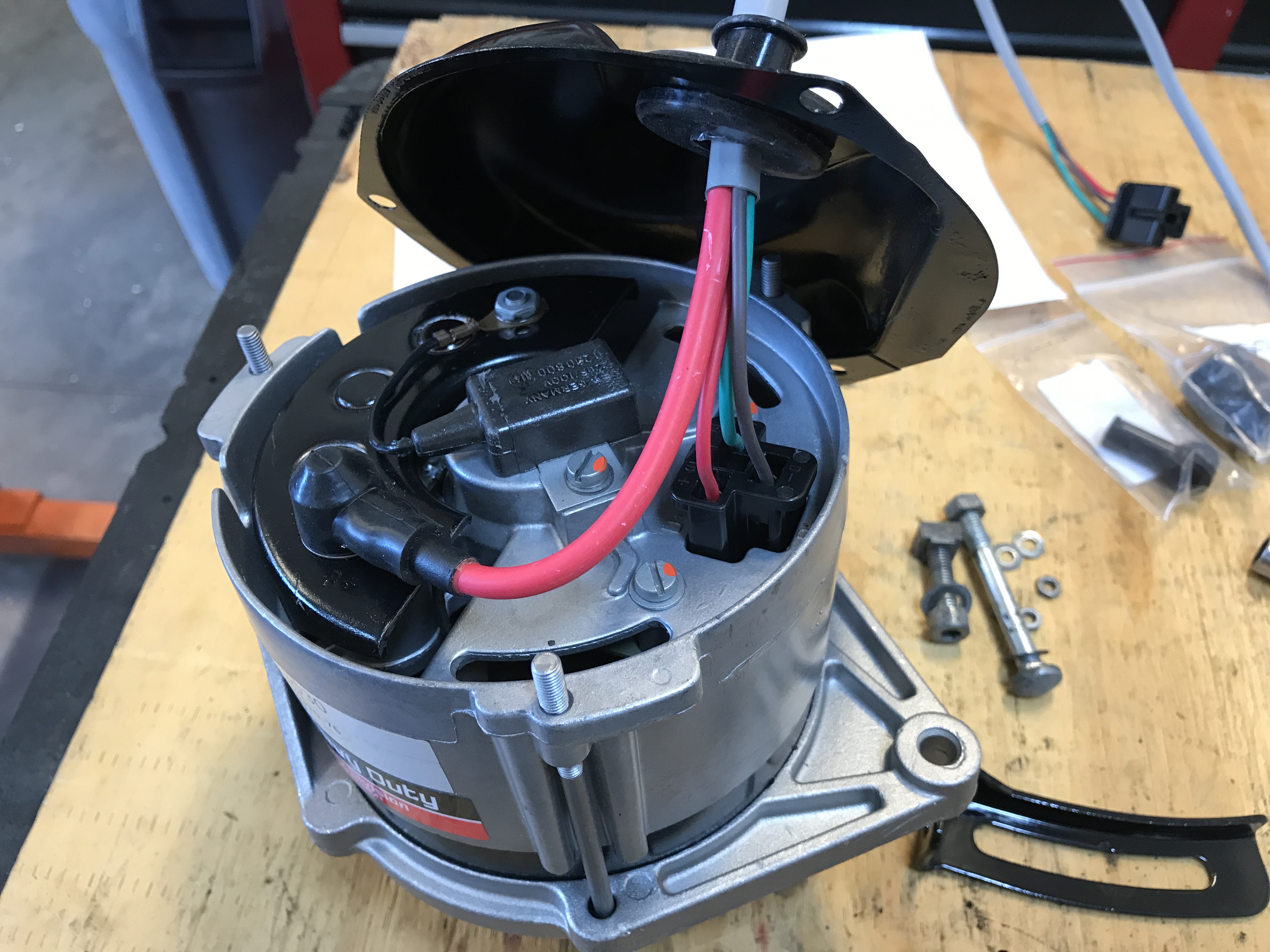 With the housing together, I can install the alternator. First to put together the rebuilt unit with all the other parts, including a new wiring harness.