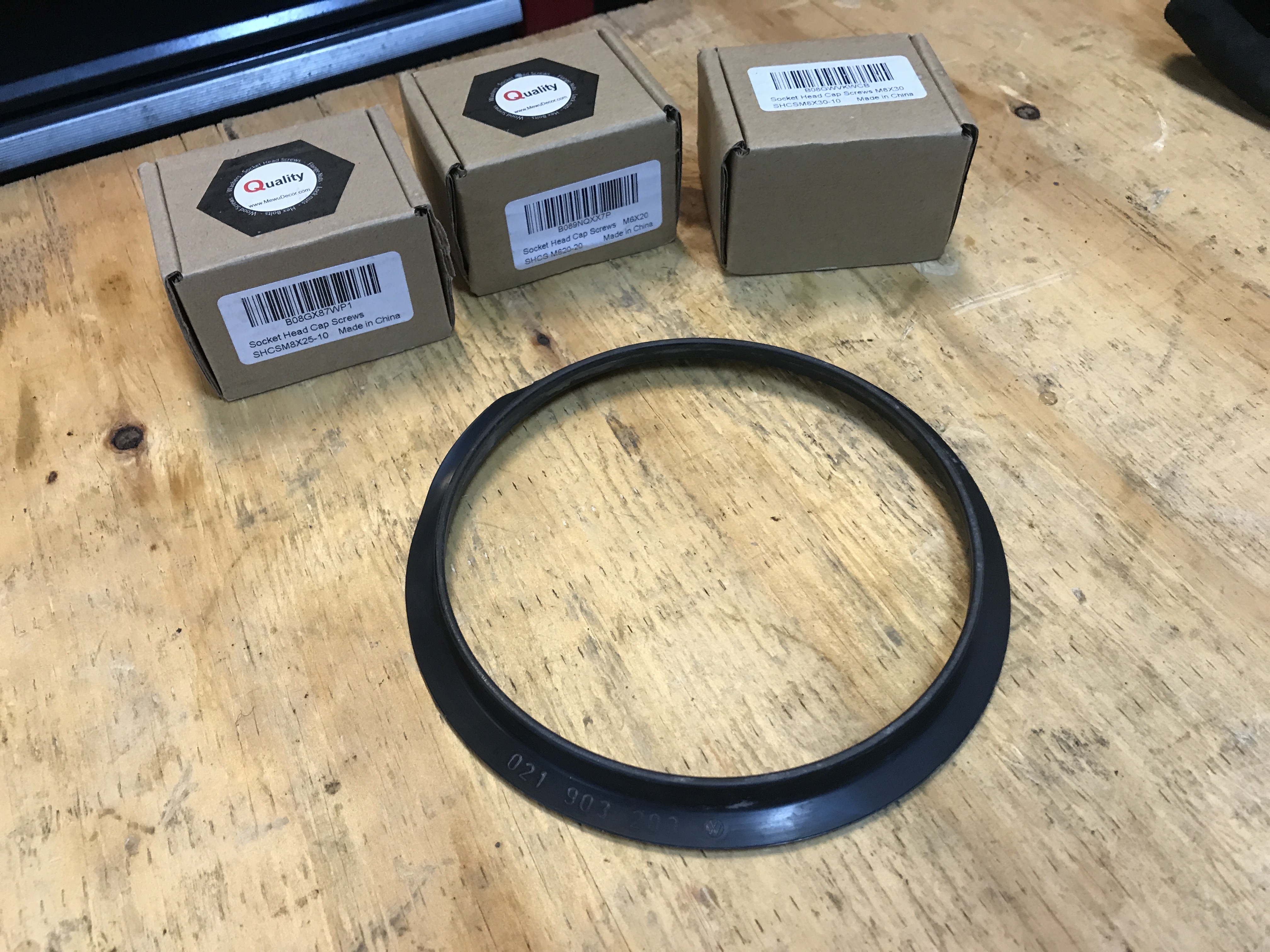 Meanwhile, back to the engine. Here is the new (used) alternator front seal, plus some more hardware.
