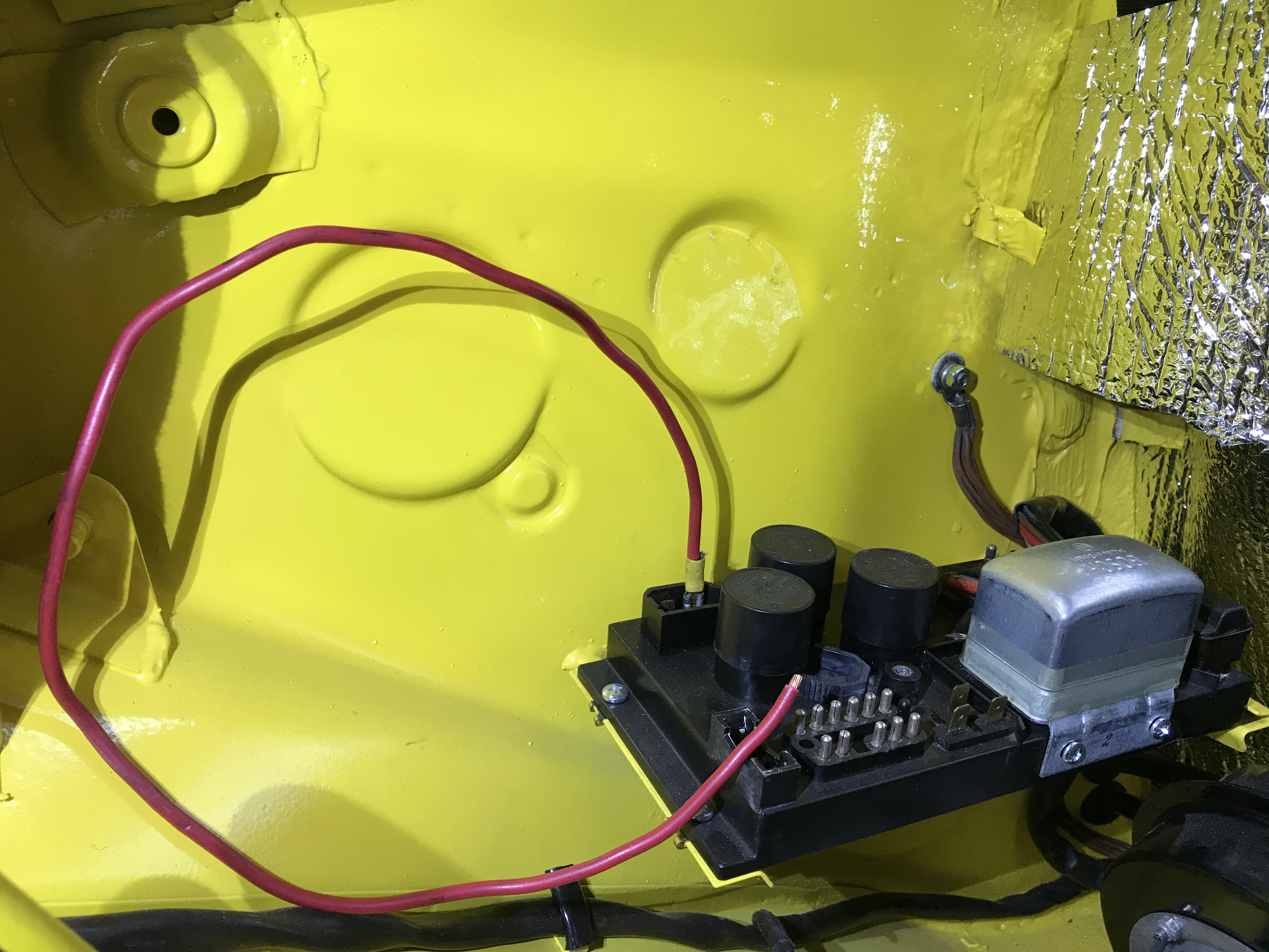 Once upon a time, I had a label on the supply line coming out of the tunnel, but that got lost. So I tried running the fuel pump, using a jumper between the number III tab on the FI system plug on the relay board and ground (ignition on).