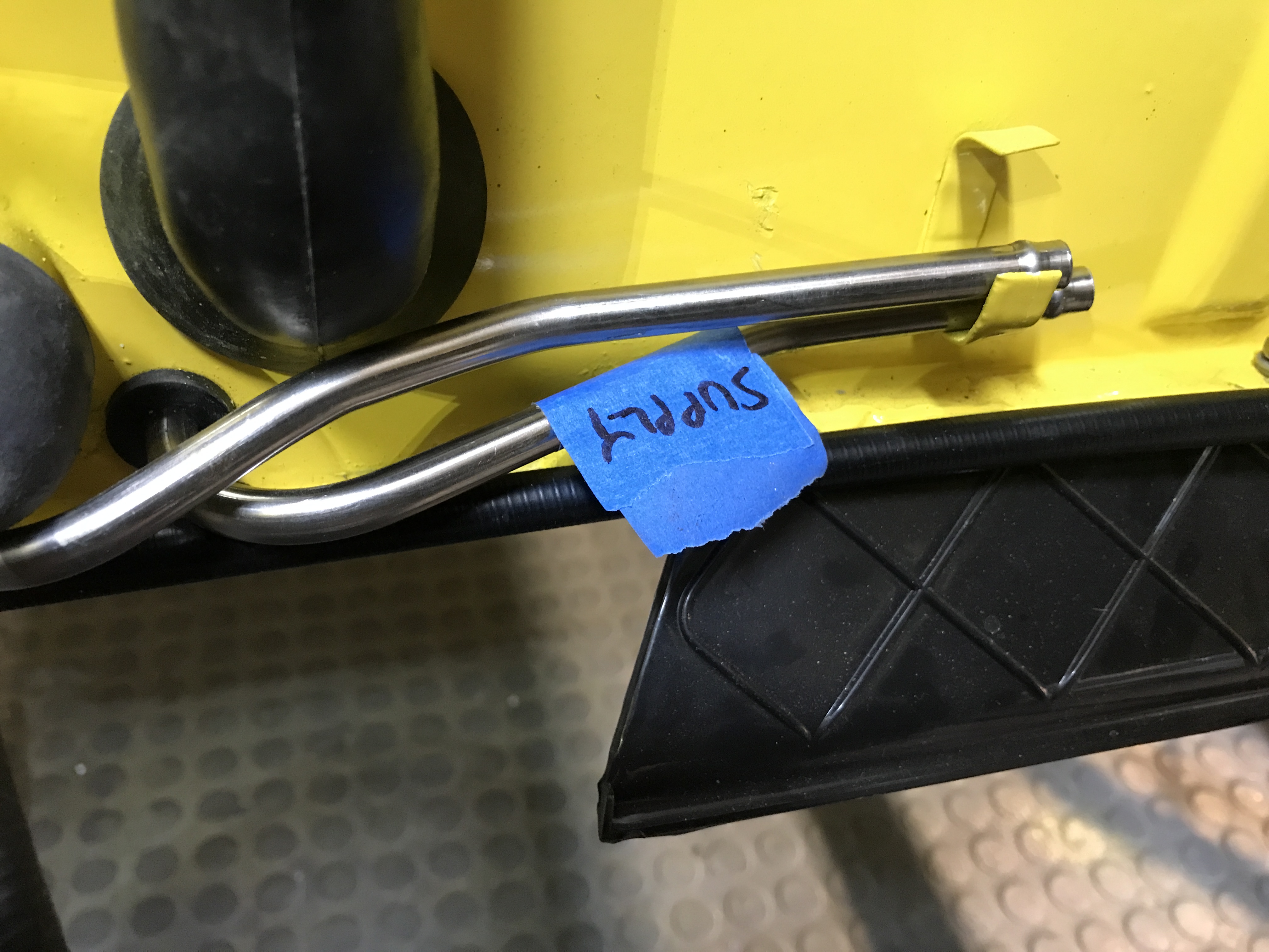 First, I tried the short hard-lines upside-down, since I moved the pump to the front. Not really a good fit.