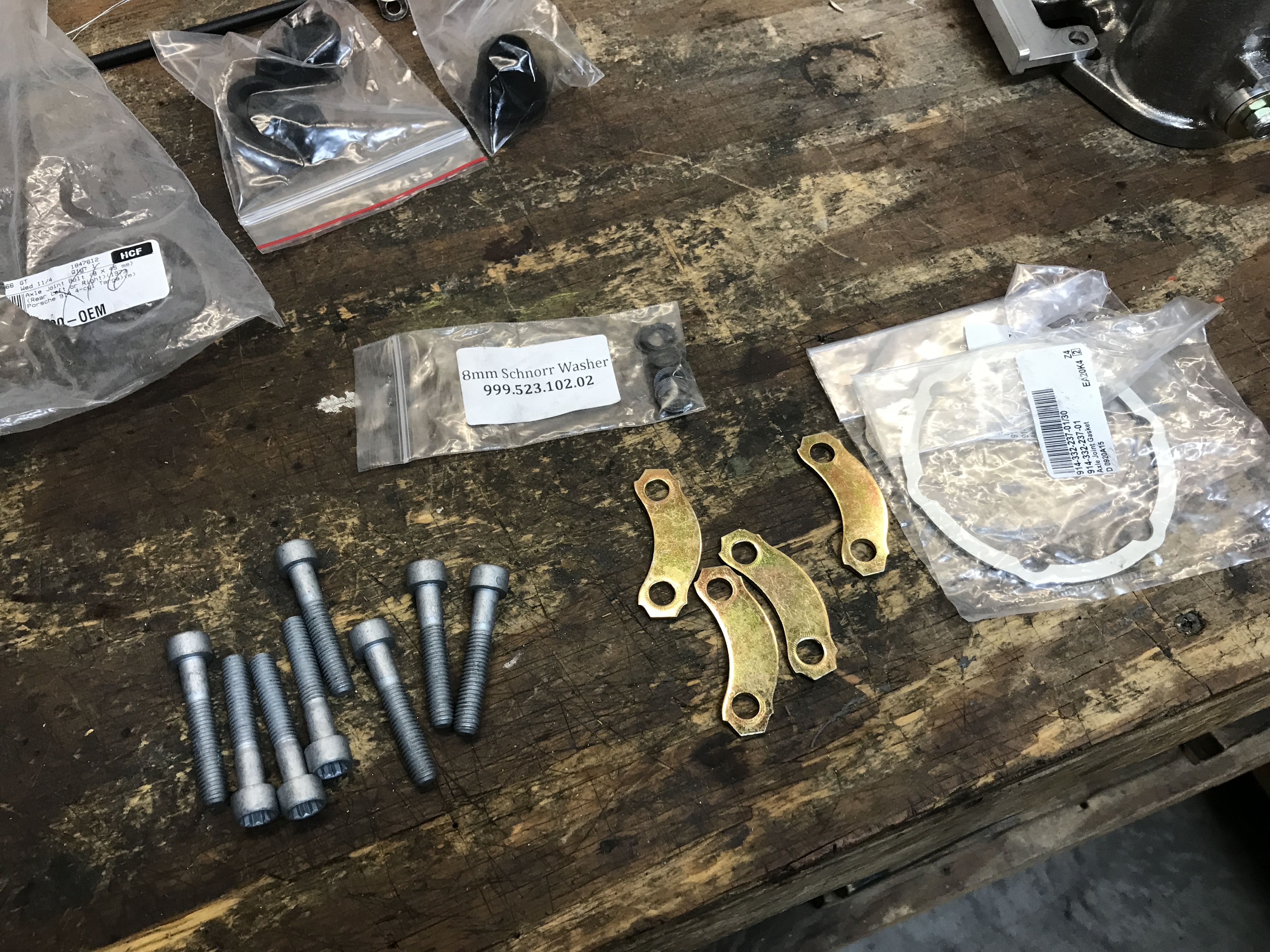 To press the CV into the output flange, I used some M8 bolts a bit longer than the stock CV bolts.