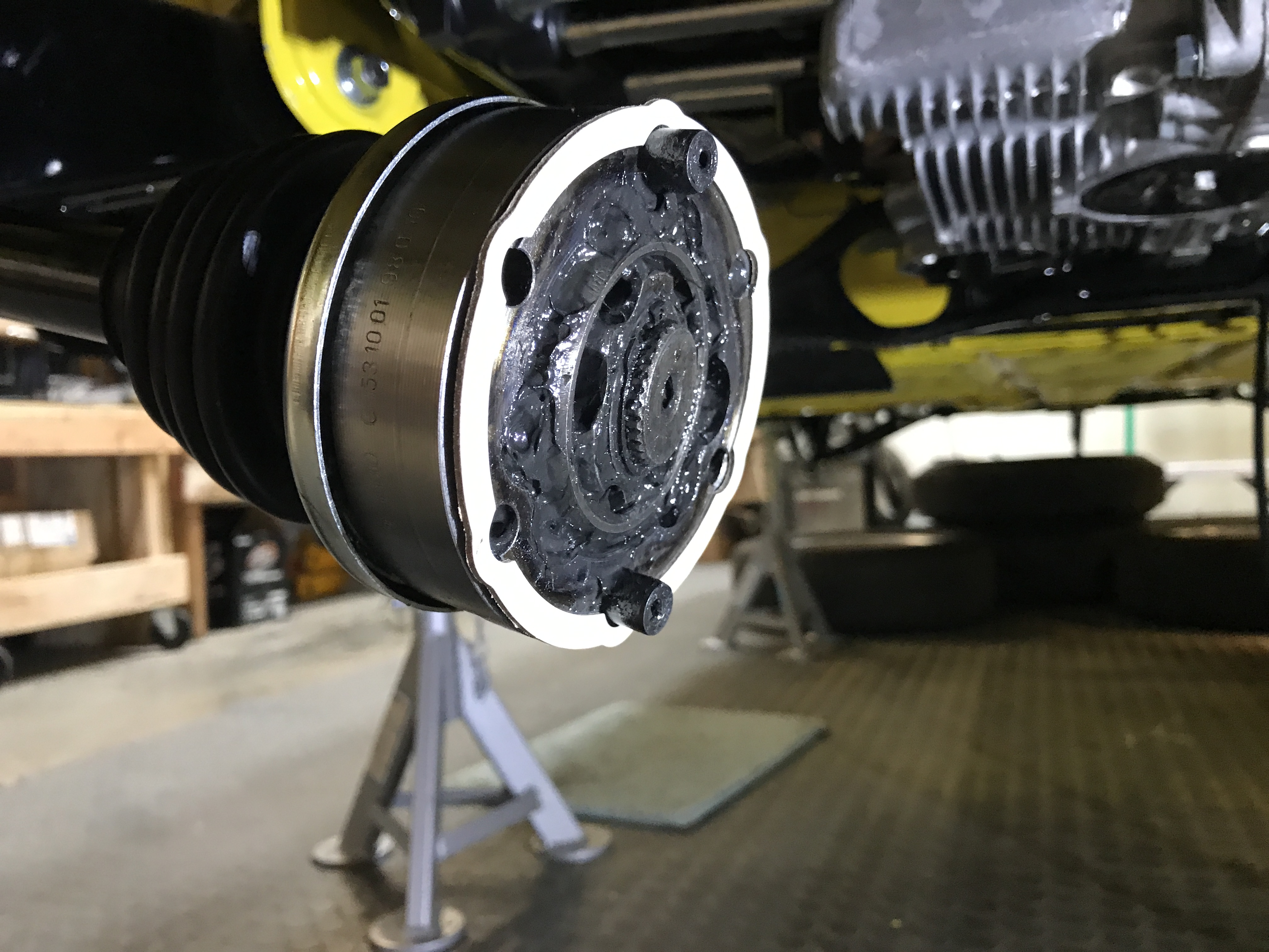 With the engine and trans in, its time to start connecting everything. I started with the half-shafts.