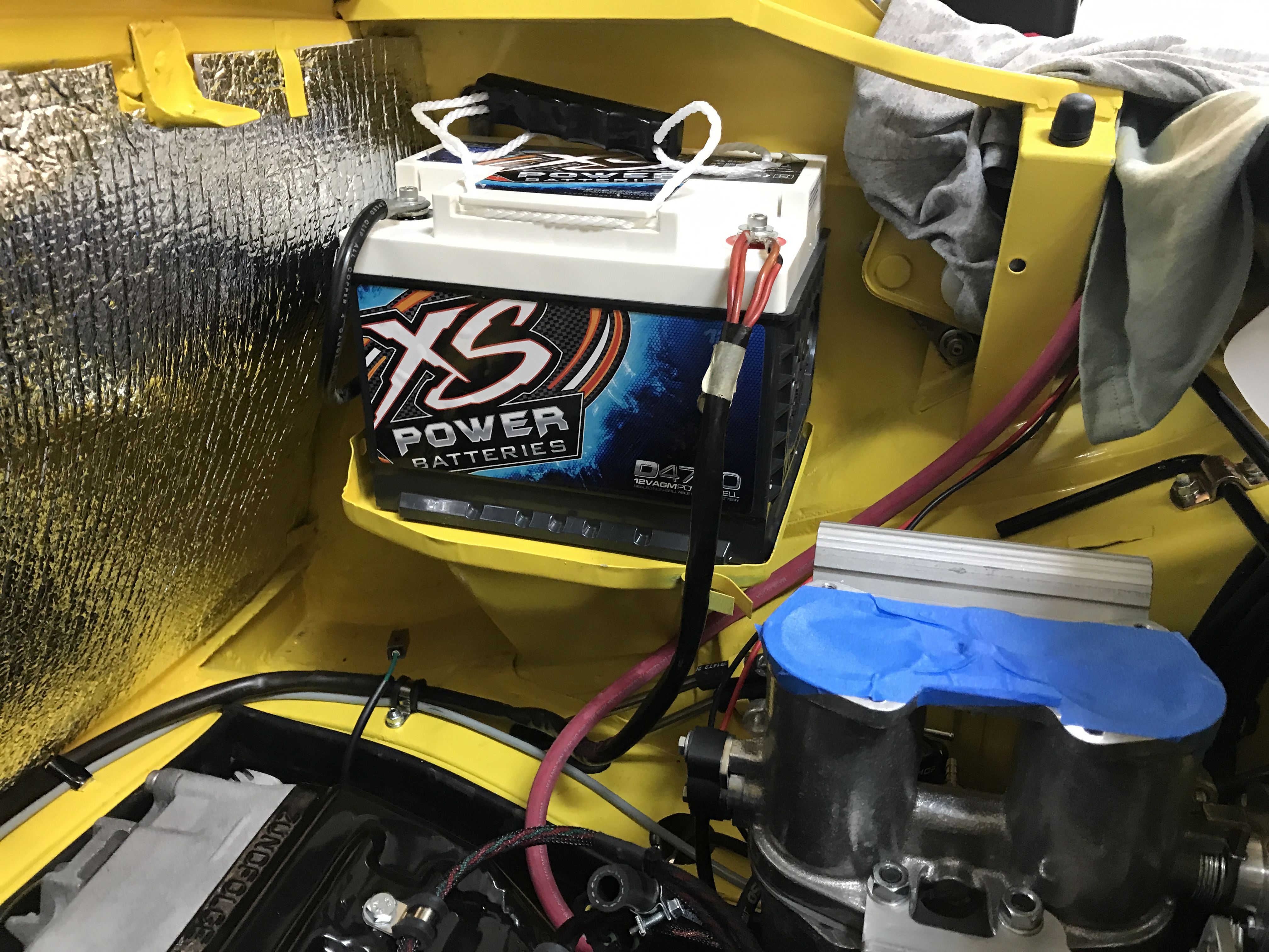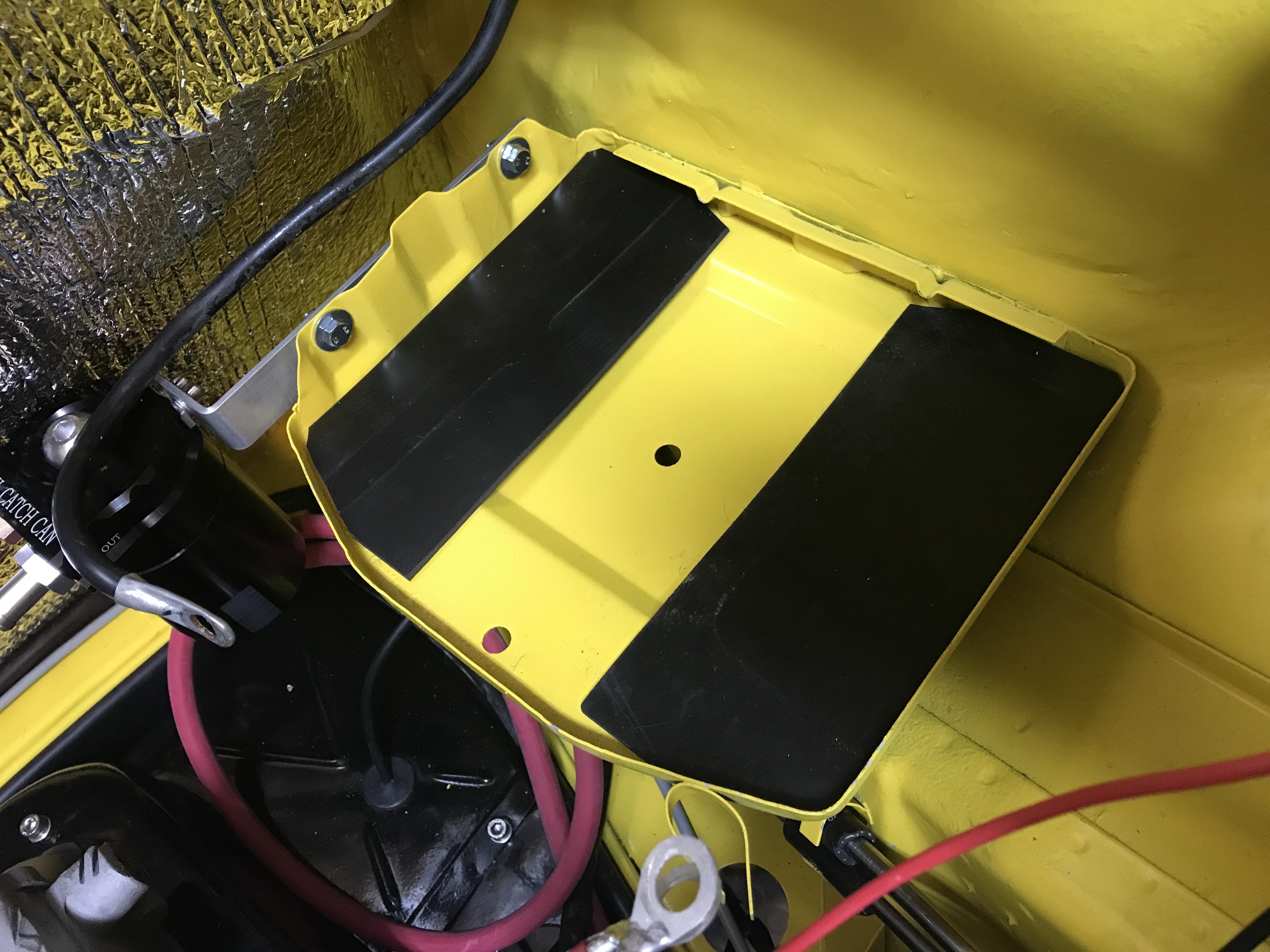 While the battery was out, I added some 3/16 inch rubber strips, since the rear edge of the battery was a bit low relative to the retaining edge.