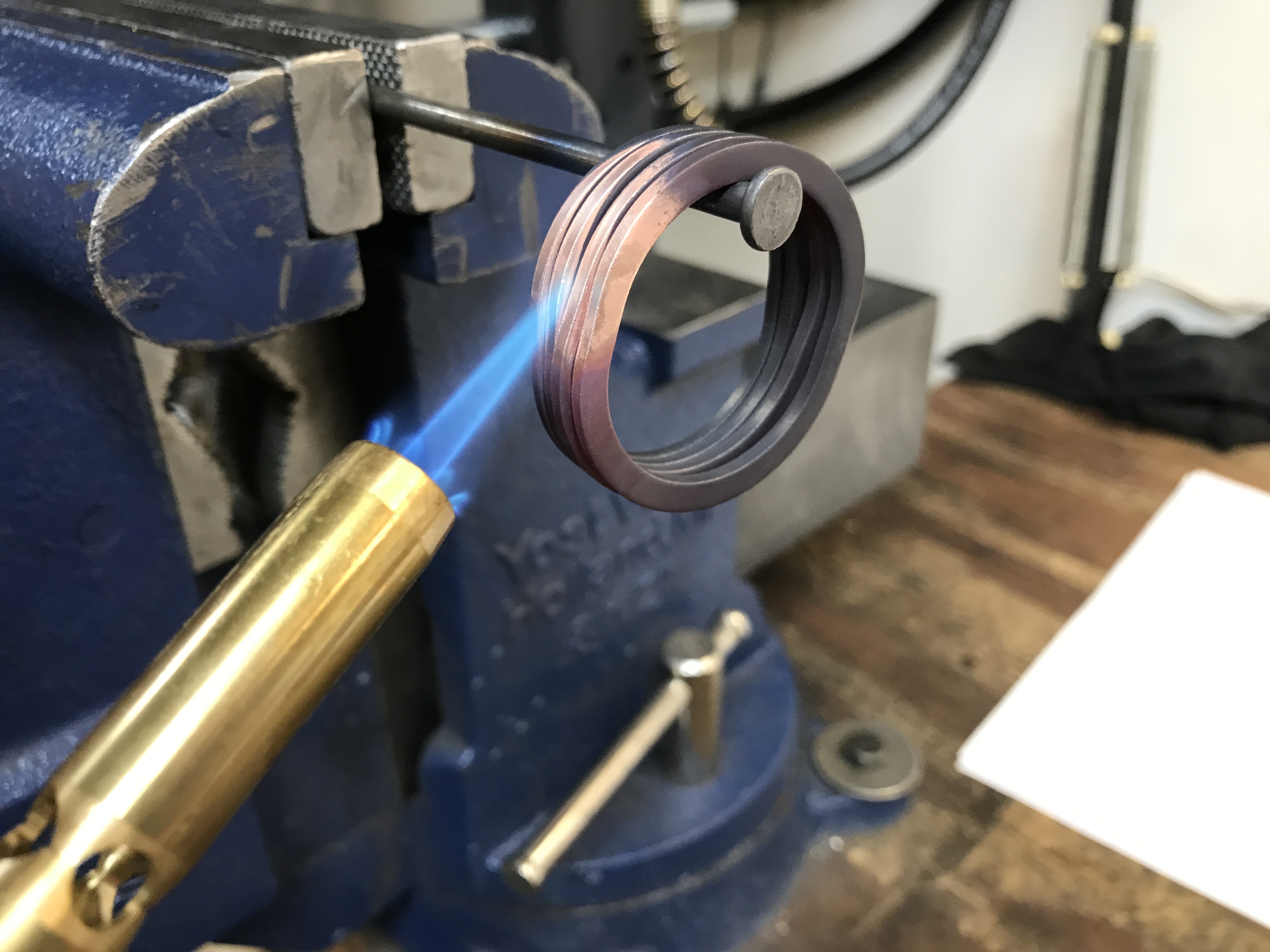 Last thing before xmas break: I grabbed 4 copper exhaust gaskets and did the annealing thing, heating them up to dull red and letting them cool in air.
