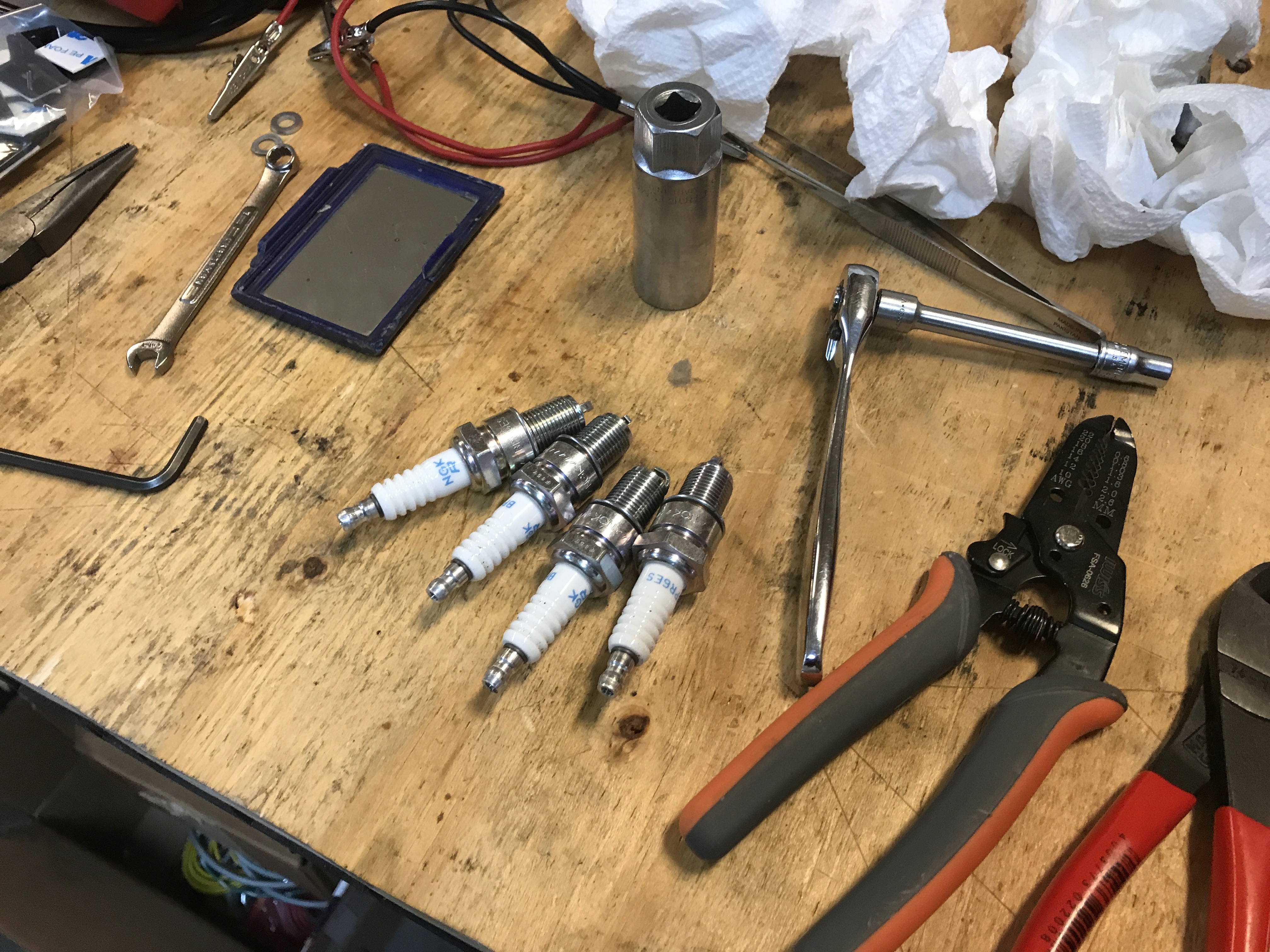 I pulled the plugs I had installed while the engine was out. My first reminder of some of the fun things about wrenching on a 914 engine.