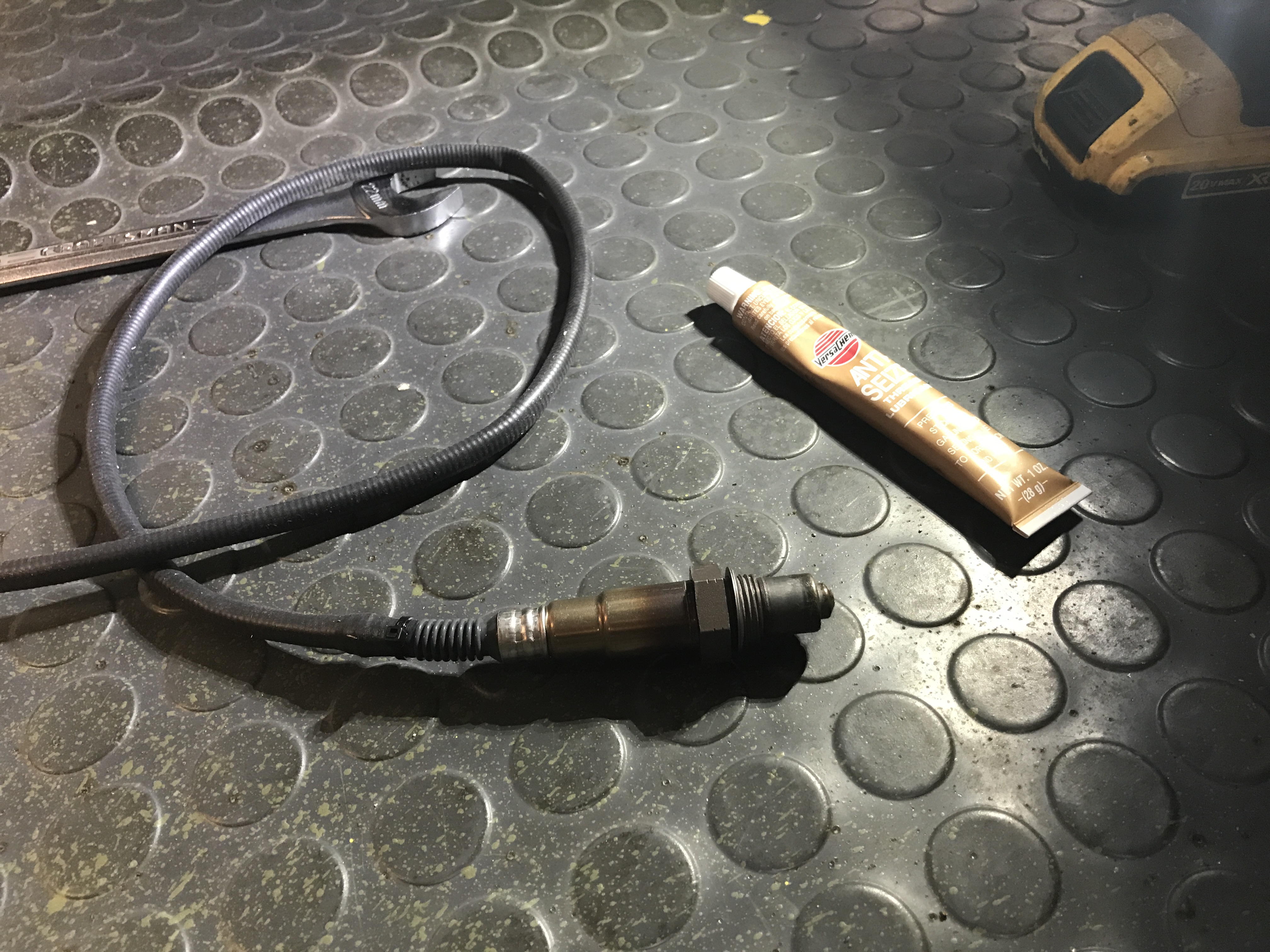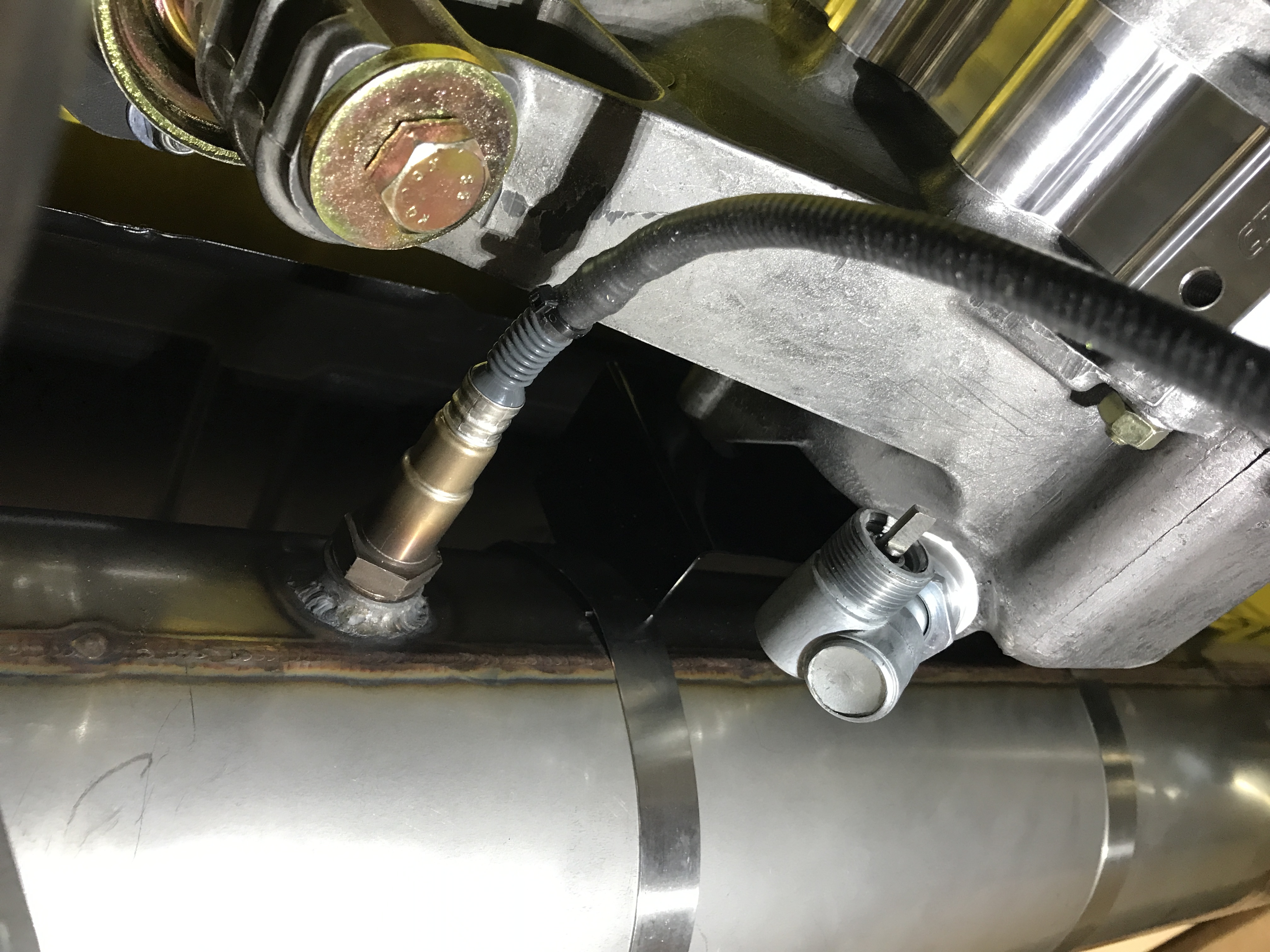 Sensor installed in the muffler. The position and clearance look good. But that is just as much luck as skill.