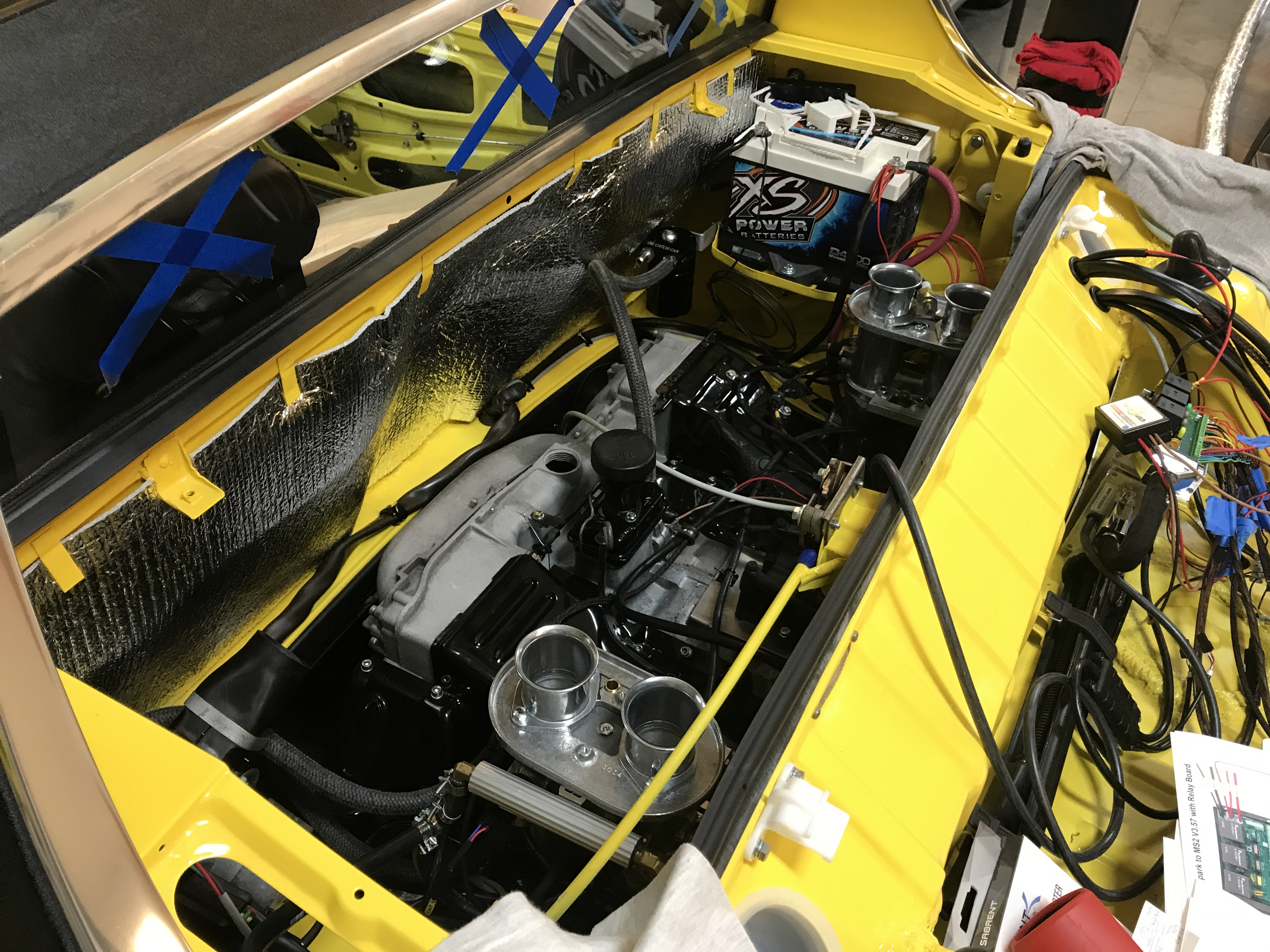 So, time to re-install the spark plugs, connect the wires, including the lead for the fuel pump. I turned the ignition on, so the pump could pressurize the system--and no obvious leaks. I then cranked the starter a bit, and got some oil pressure (at least the dash light went out). And then, I cranked it for real...