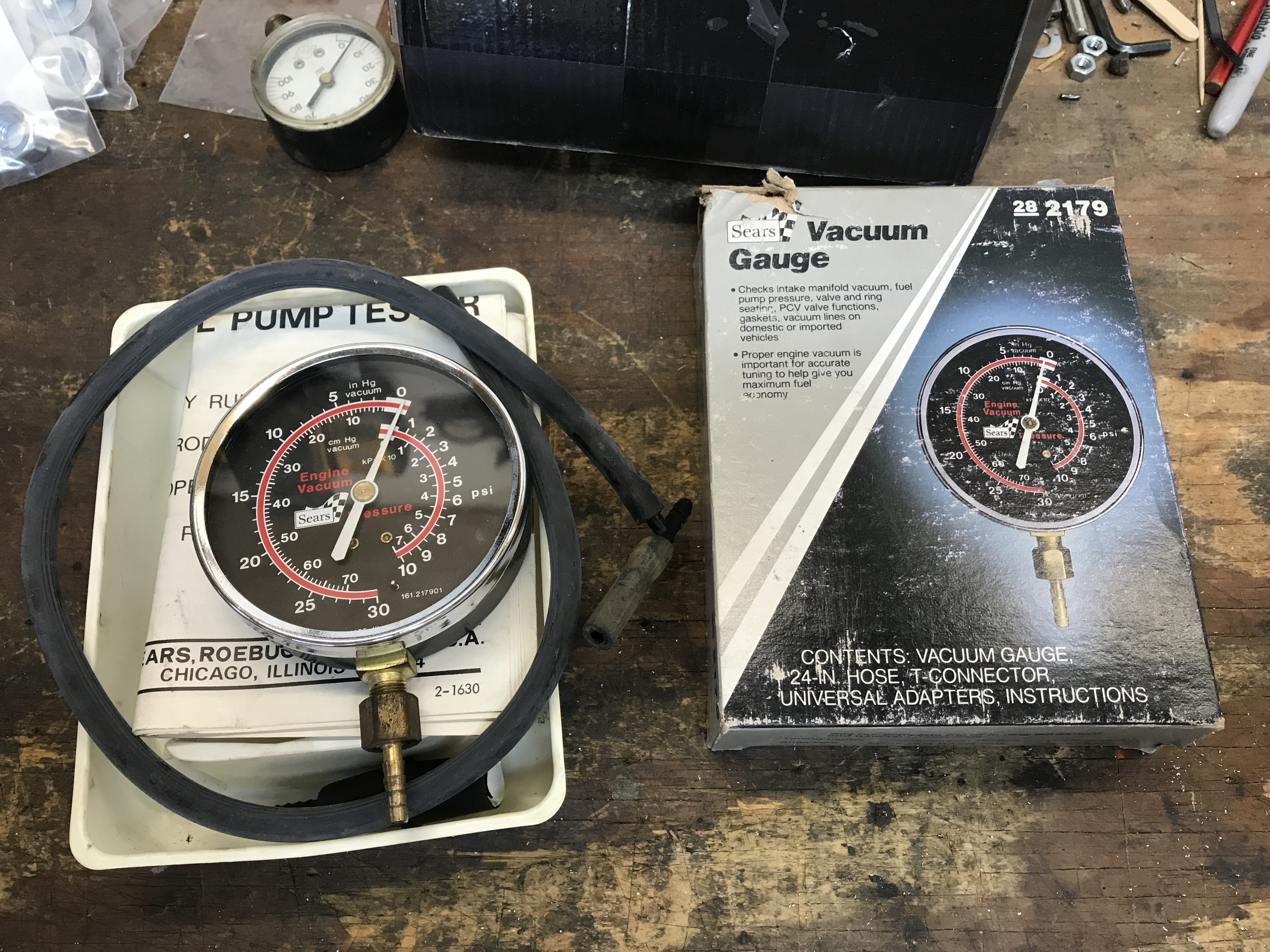Just to tease you a bit, before I tried starting I got out my old vacuum gauge. This is another Sears/Craftsman auto tool. Most of these date from my early days of playing mechanic, in the 70s, 80s, and 90s. Attached thumbnail(s) |