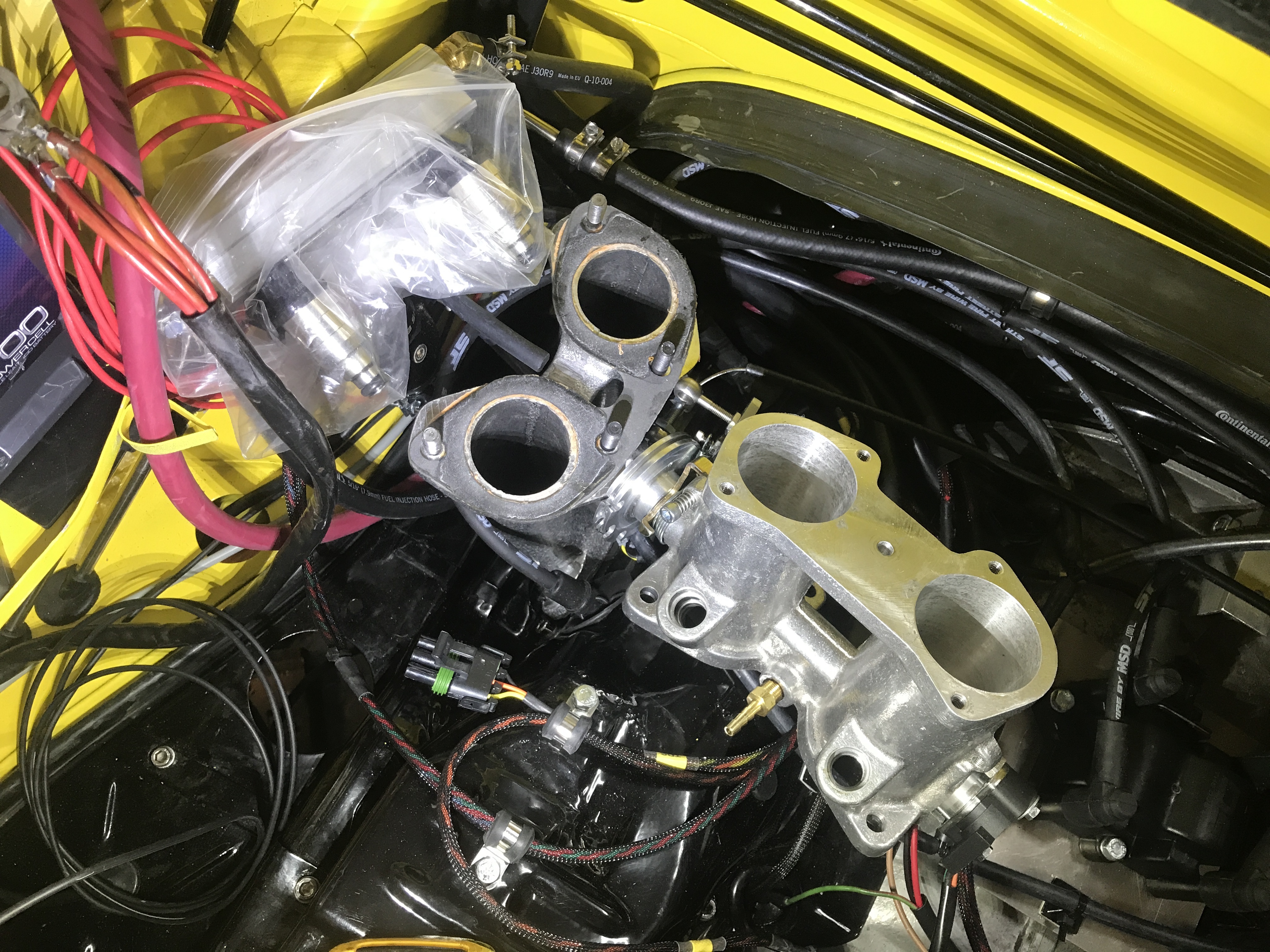 So I don't have to undo the fuel lines, and swap the angle fittings in the injector rails, I decided to swap the throttle bodies but leave the rails in place. This turned out to be a bit fiddly.