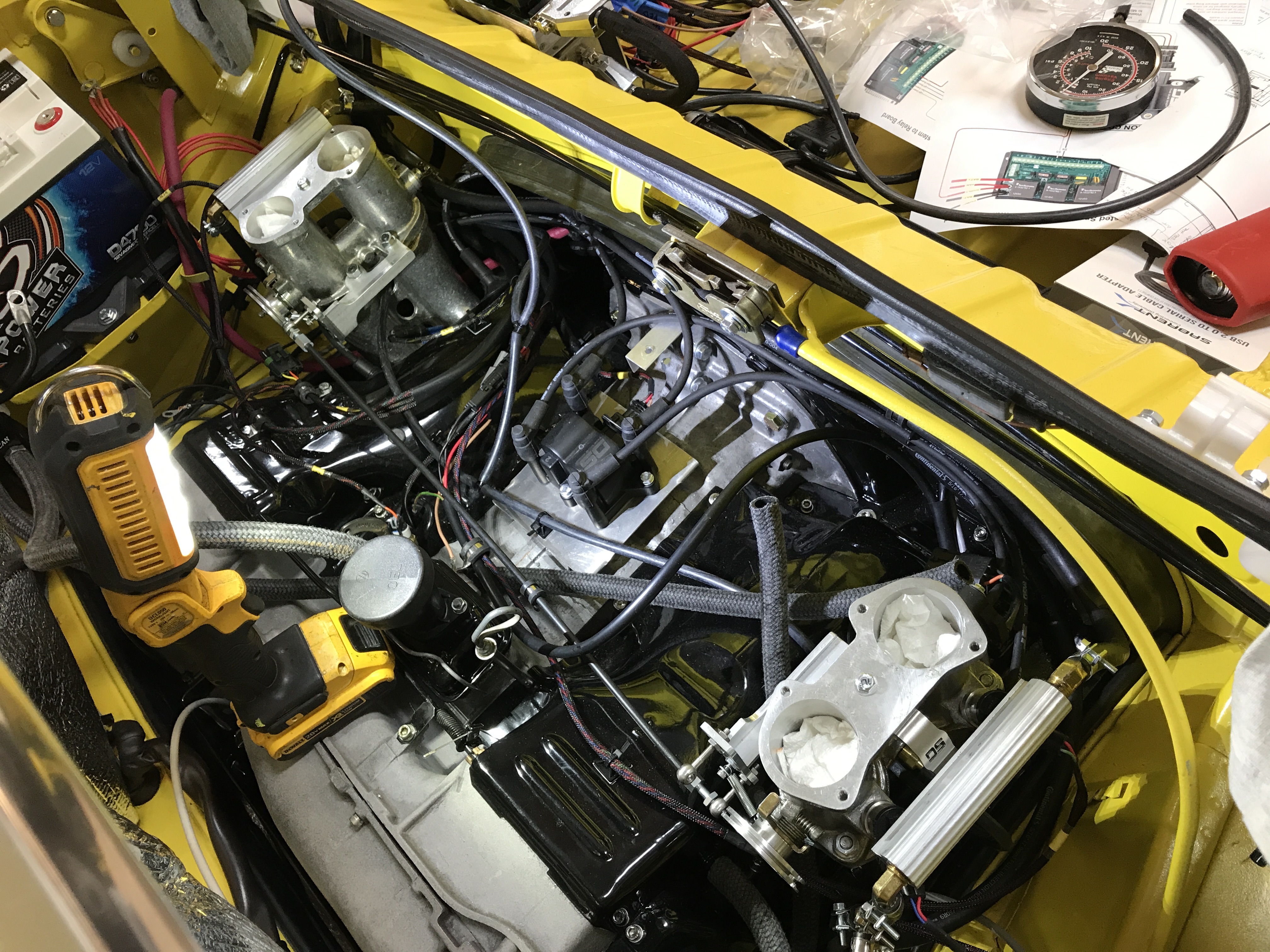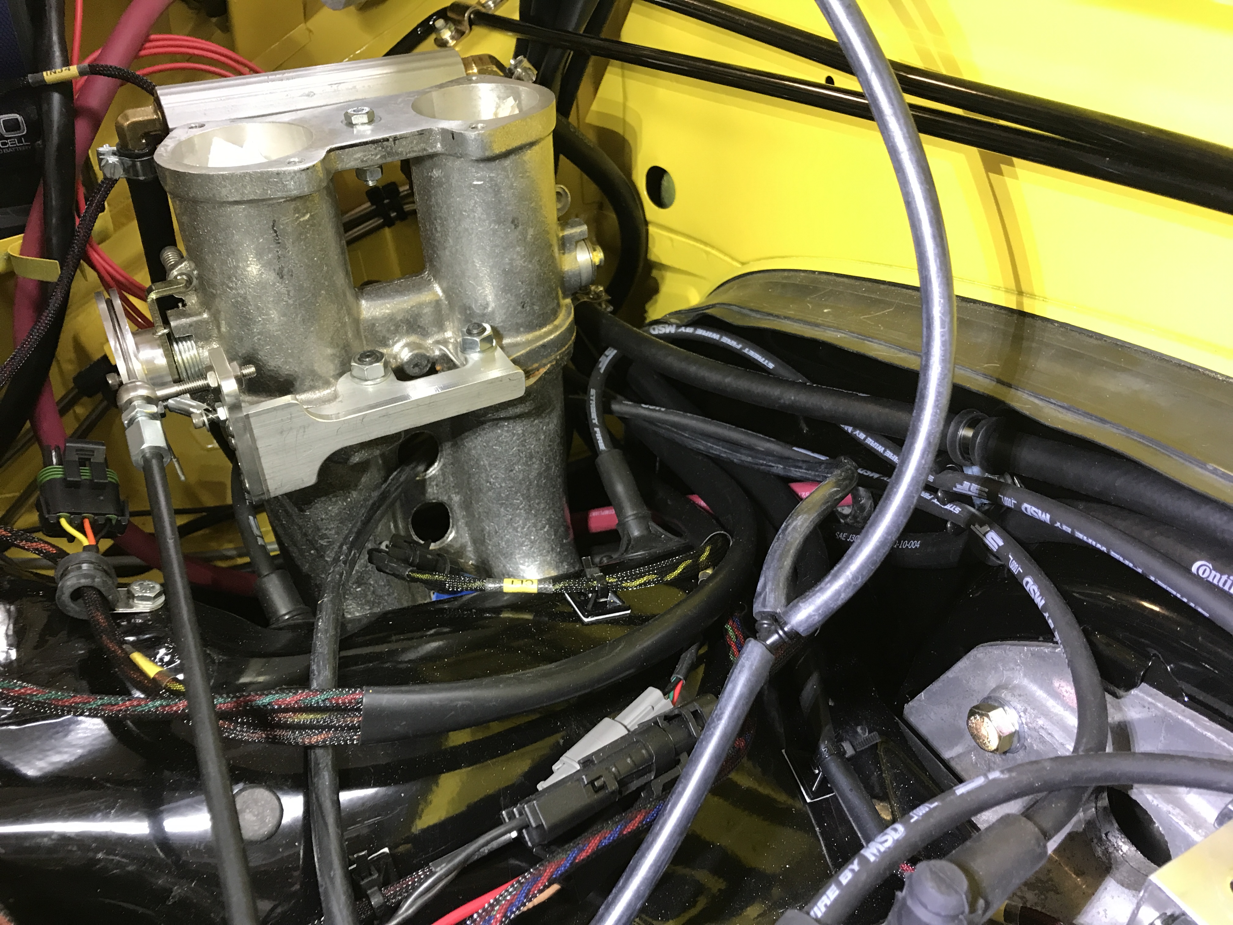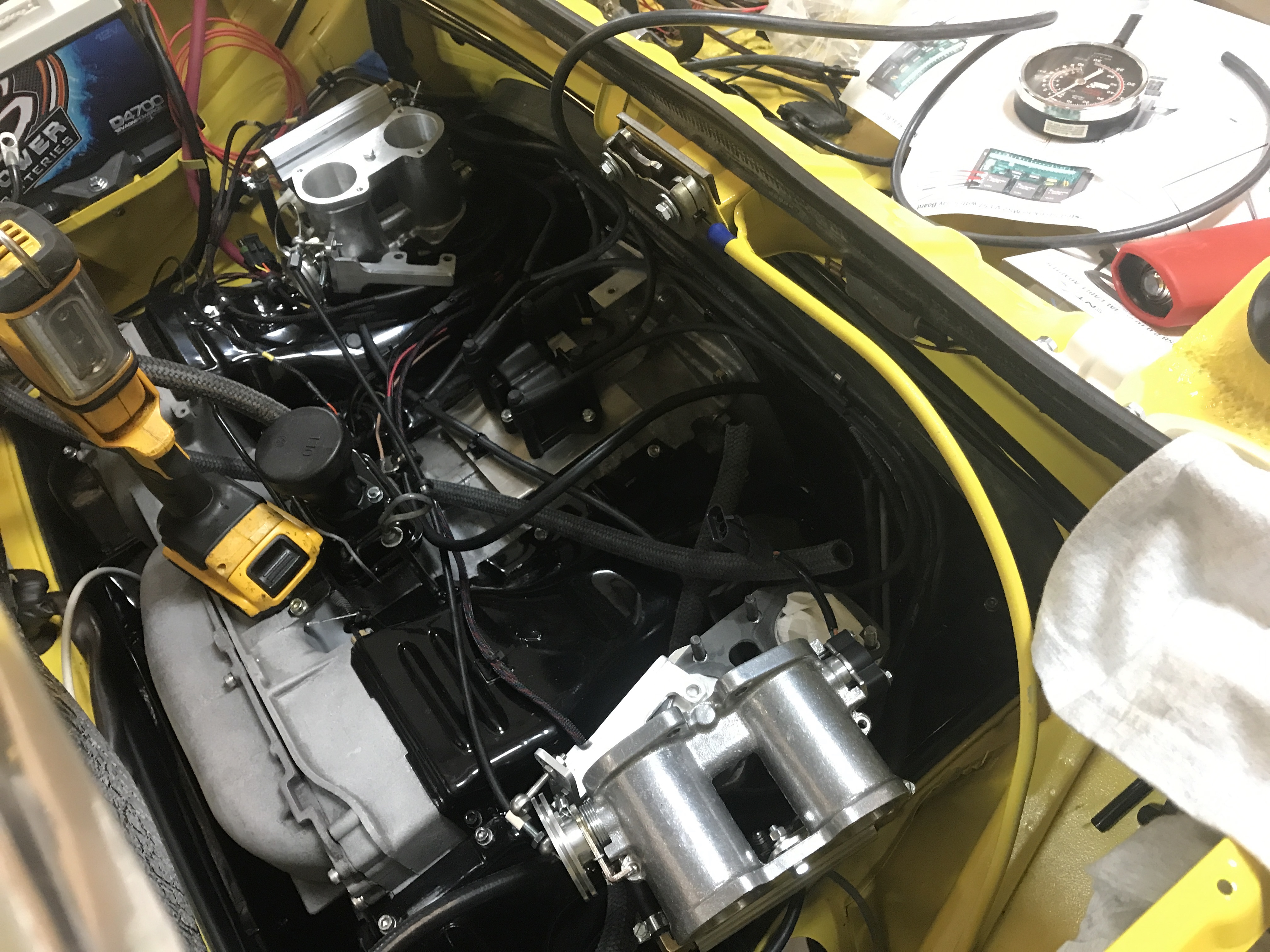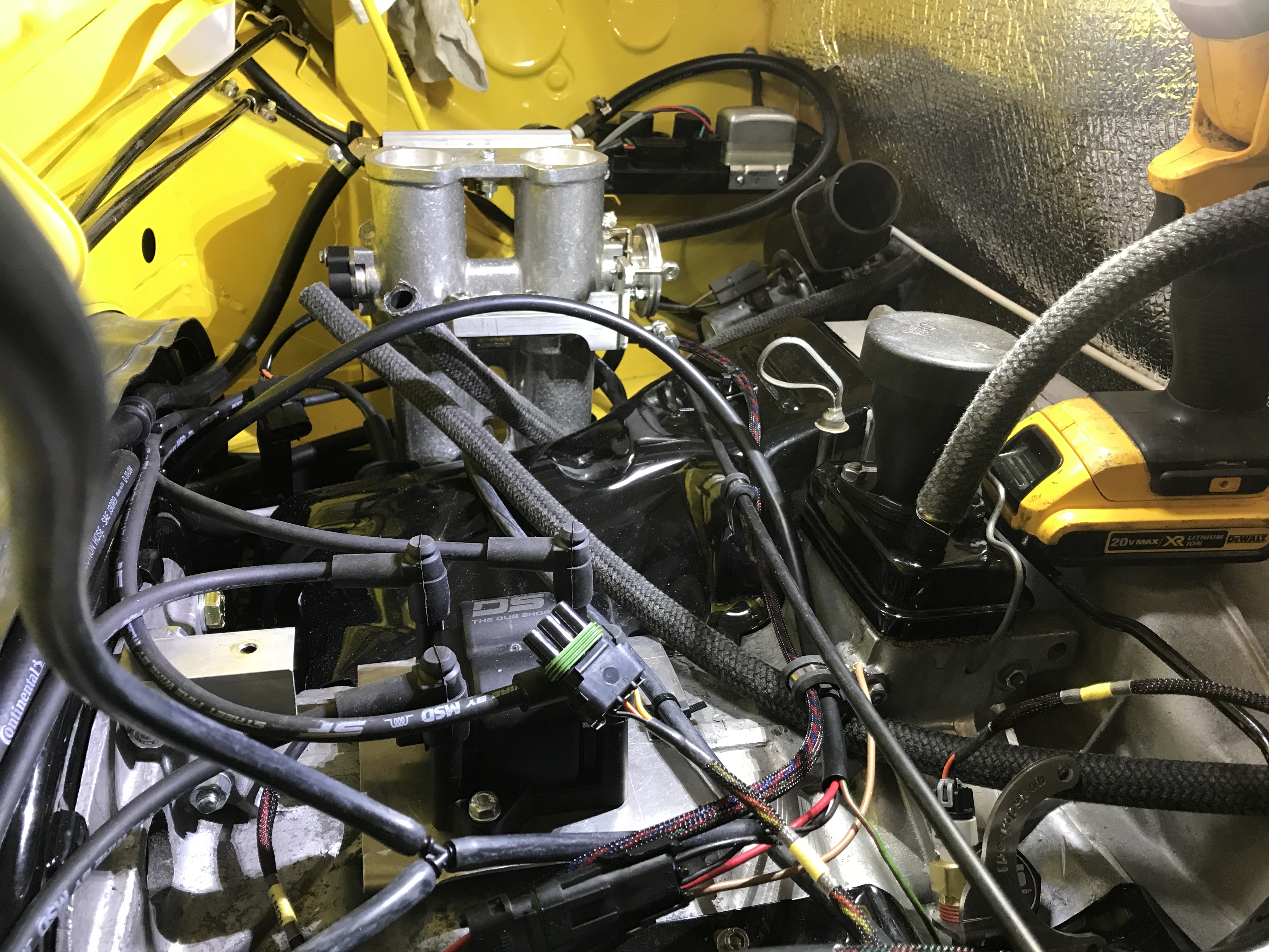 And that means I have to commit to the layout of components in the engine compartment. I have been less than happy with the access to the rear of the right throttle body. The space there is tight enough, and that's where I have all the fuel lines and EFI cables.