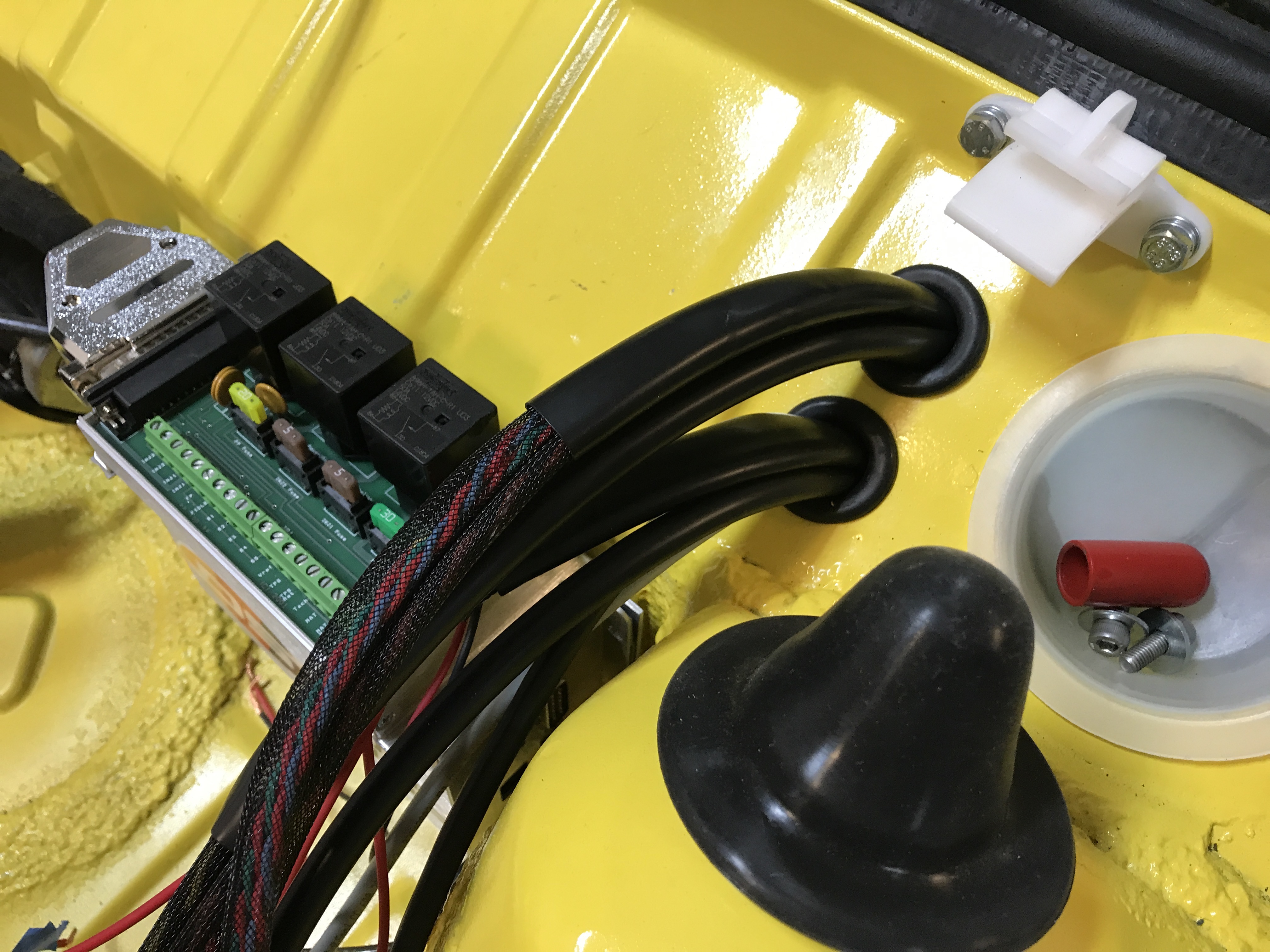 Once all the lengths were adjusted I snaked the bundle back through the hole and grommet. I will trim back the cable covers and route all the individual wires later.