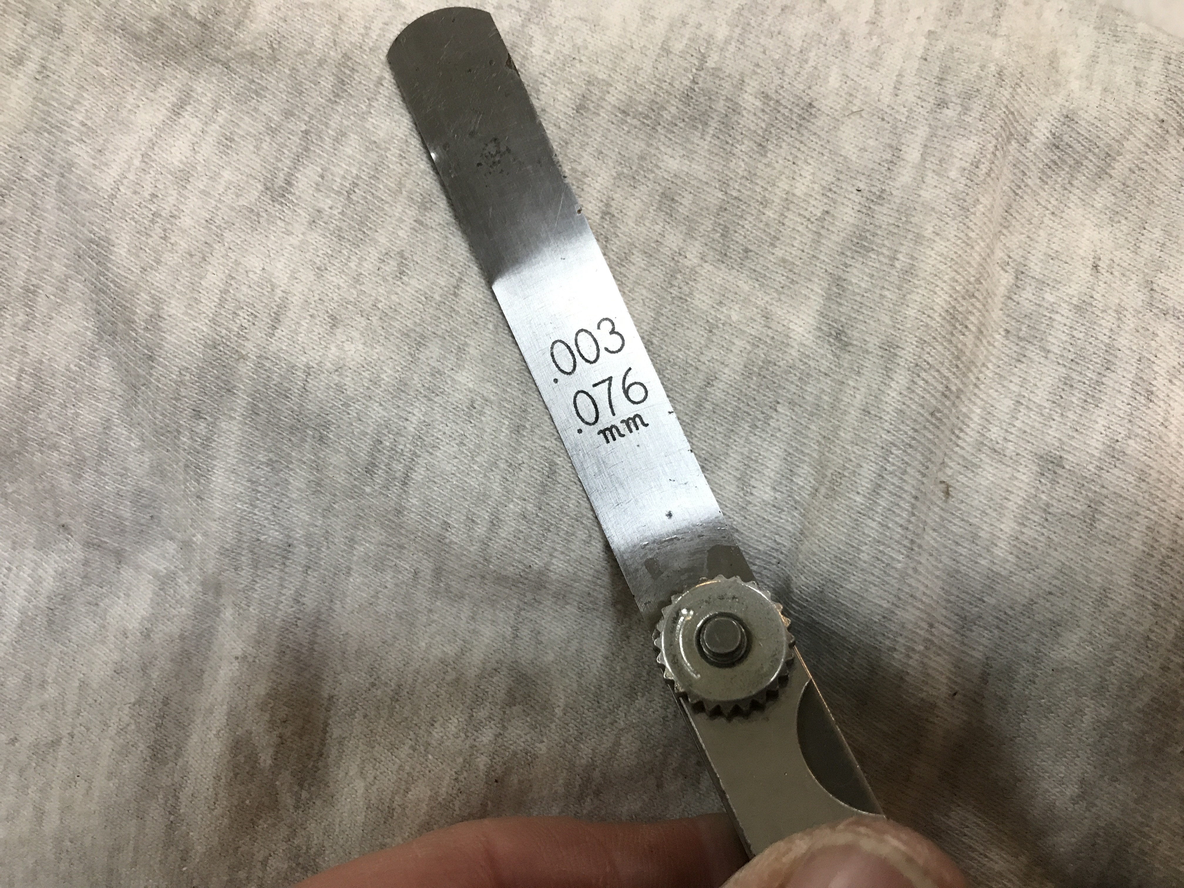 While I had the chance, I did the rough adjustment to set and sync the left and right throttles. I used a .003" feeler gauge.