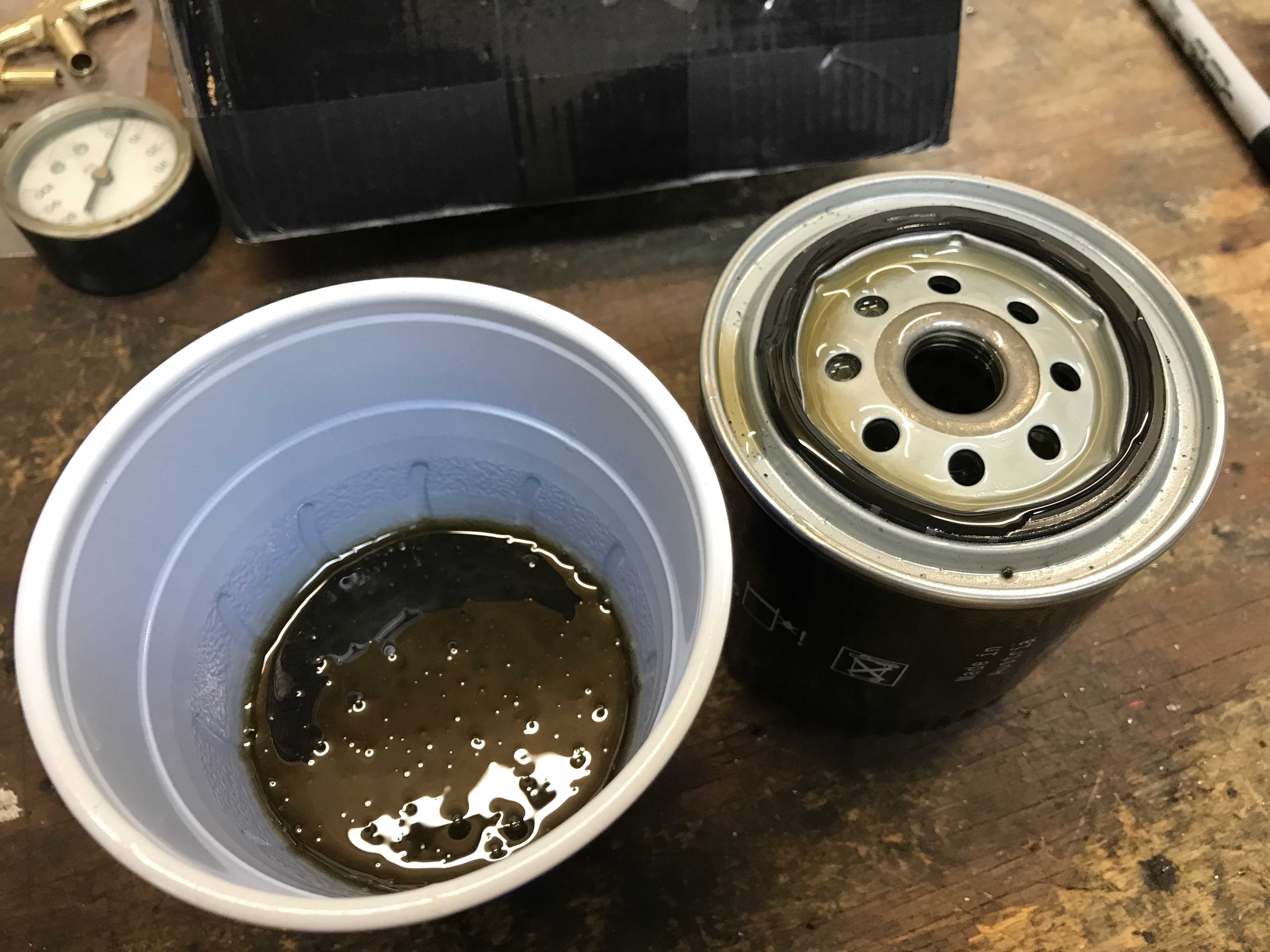 Here's the filter and some oil from the initial startup. I might cut open the filter and check for crud.
