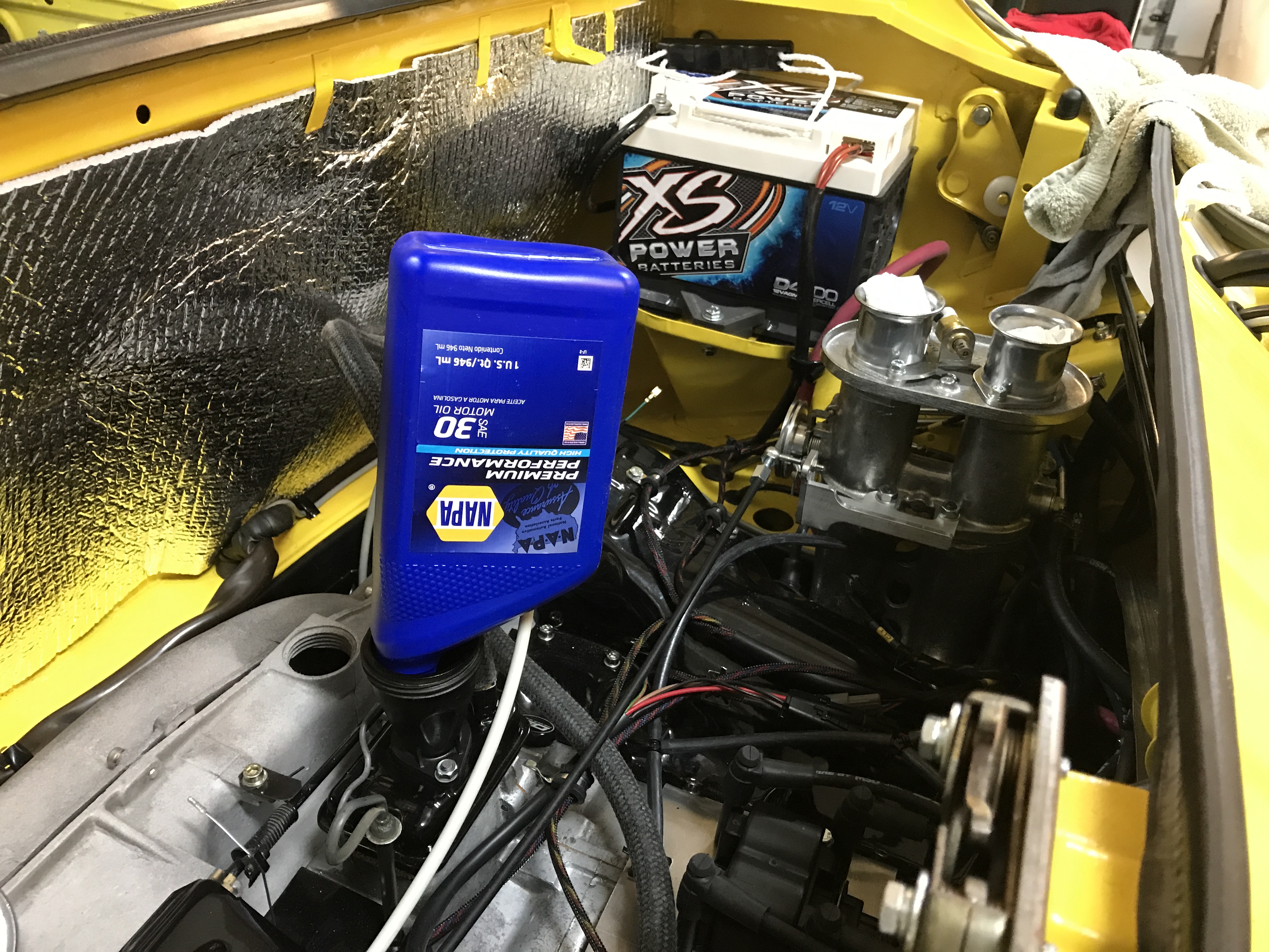 Before I forget, I refilled the crankcase. More break-in oil, SAE 30.