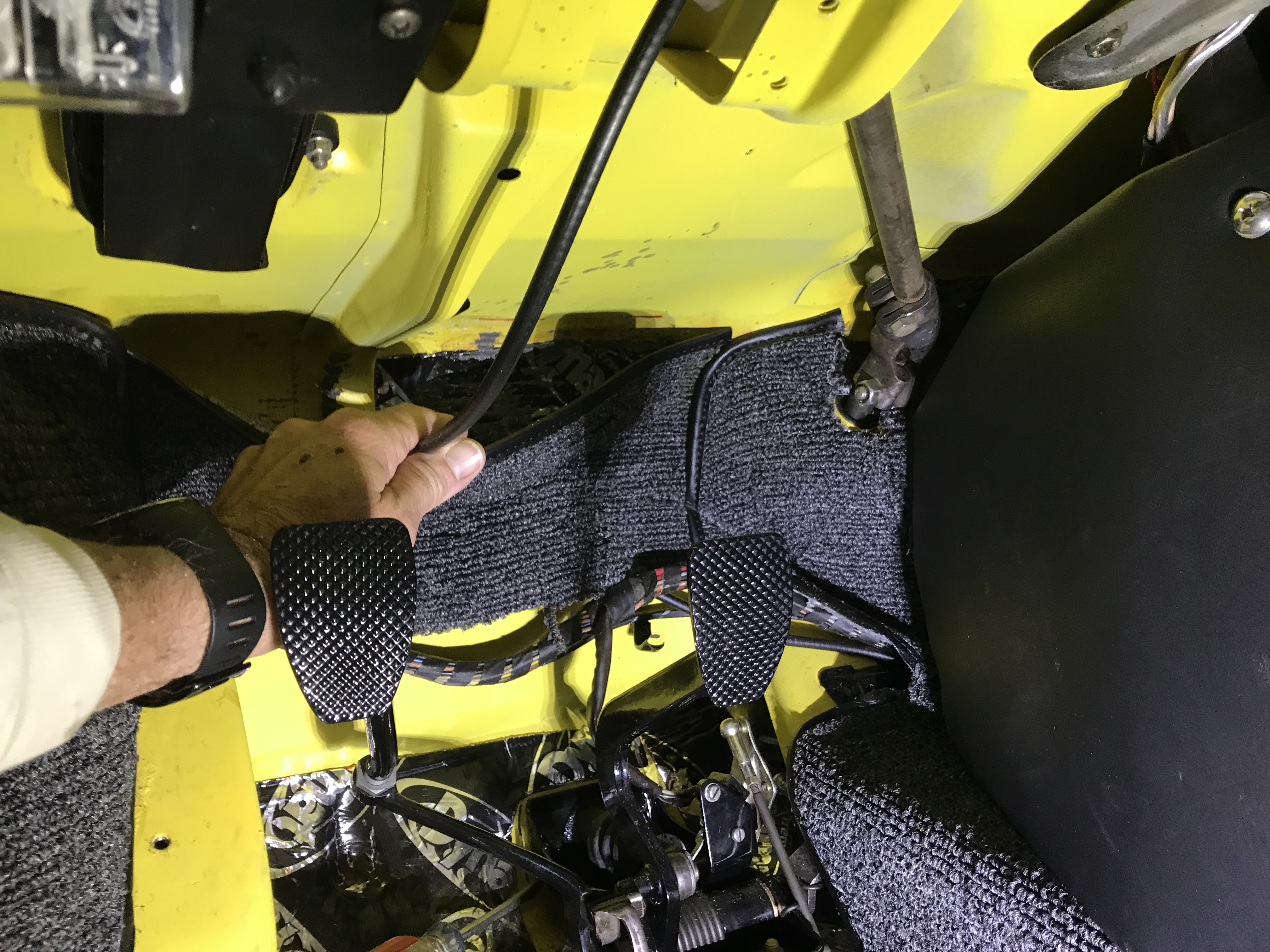 Once I removed the pedal board and pulled the carpet partly off the front firewall, I changed the route of the cable and fed excess into the tunnel.