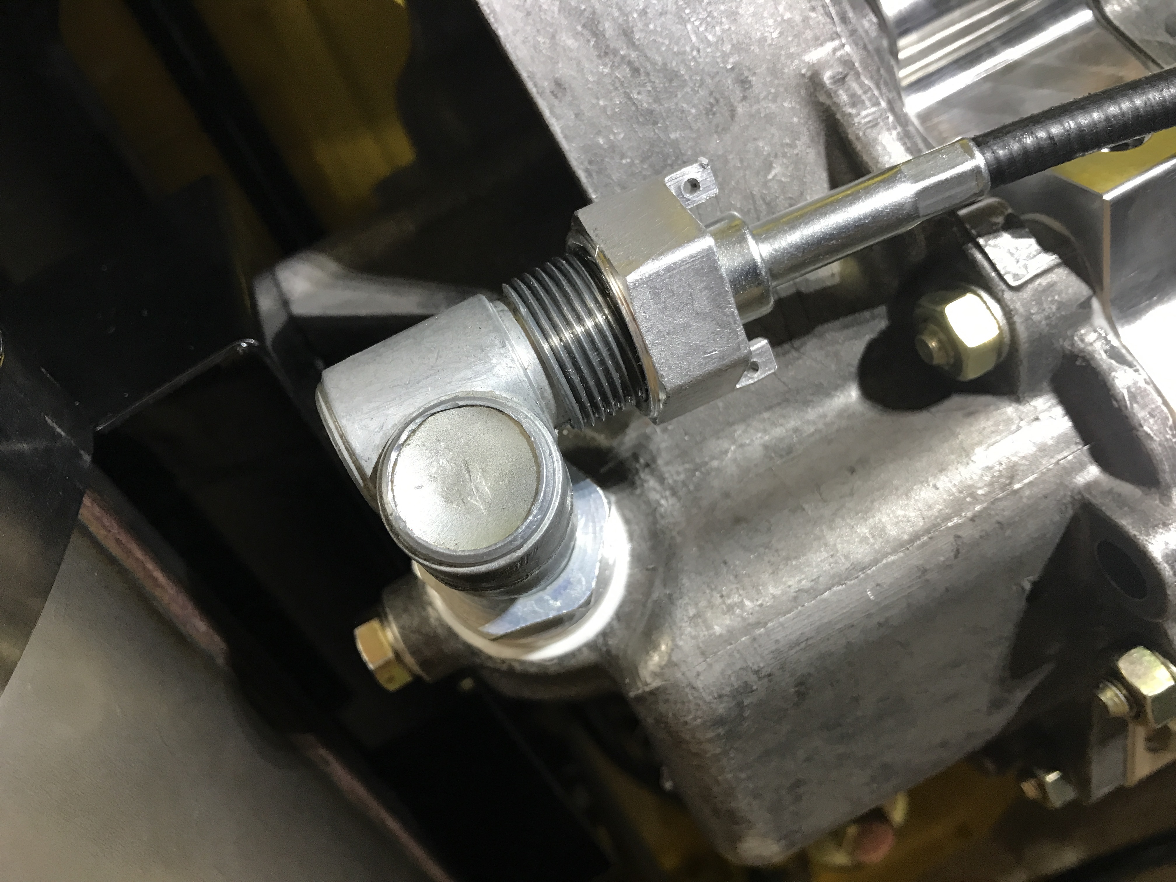 Next task: the speedometer cable. When I installed the cable in the interior, I did not leave enough projecting from the fire wall to reach the angle drive on the transaxle. Looking under the dash, I ran the cable straight forward from the gauge.