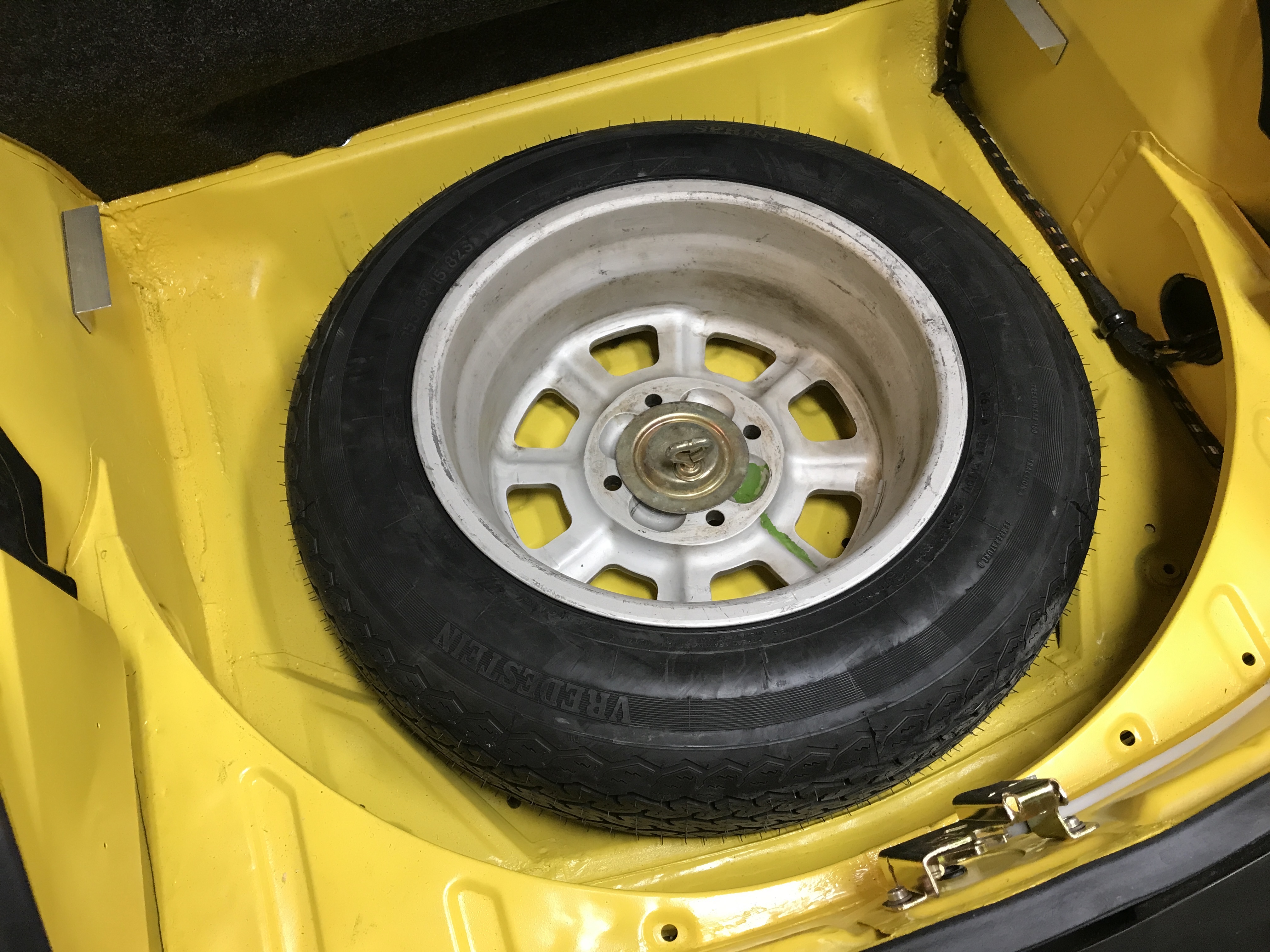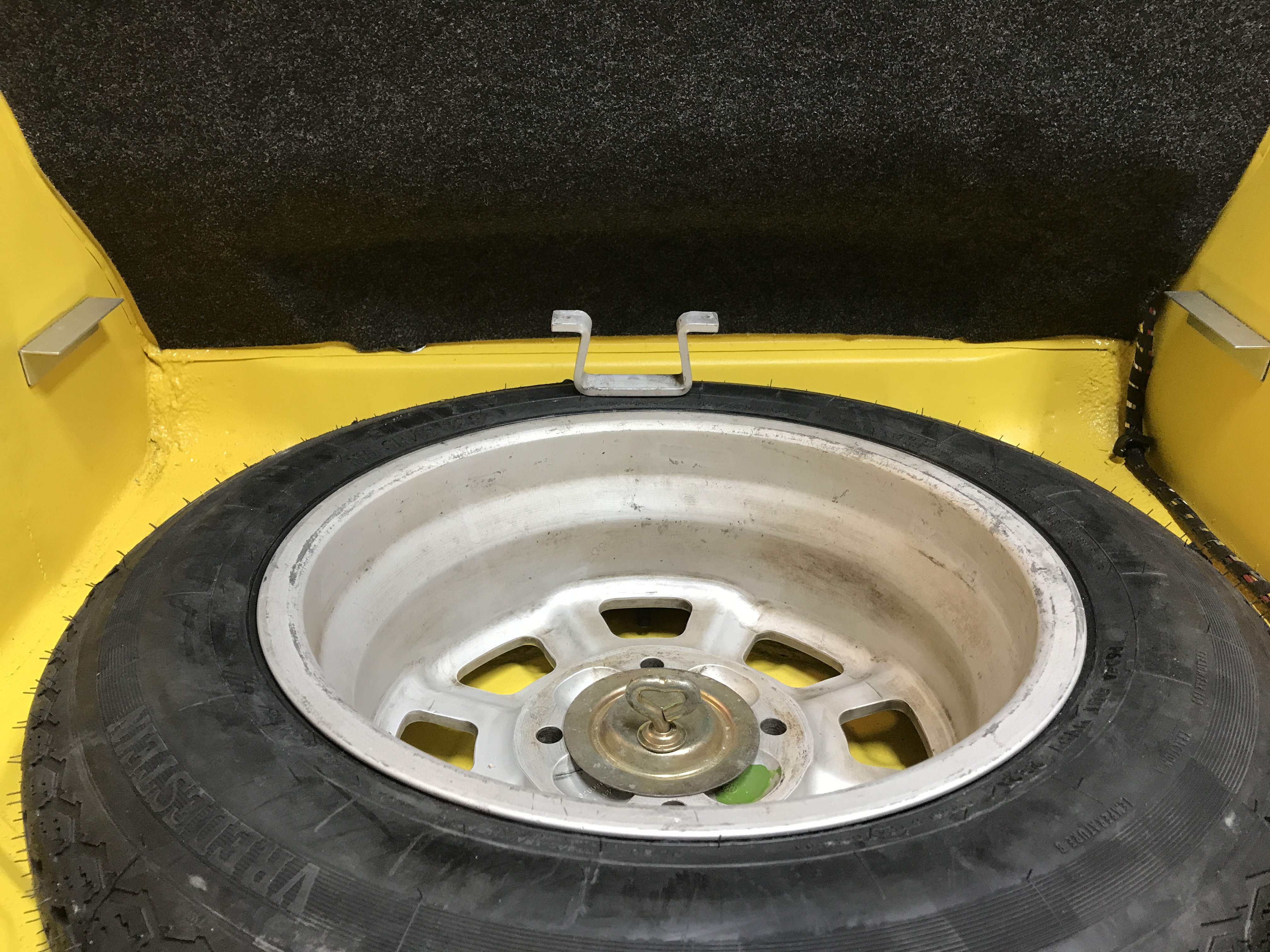 Here's the spare in place and tied down. But the gap towards the rear is about 2 inches, and leaves the floor unsupported.