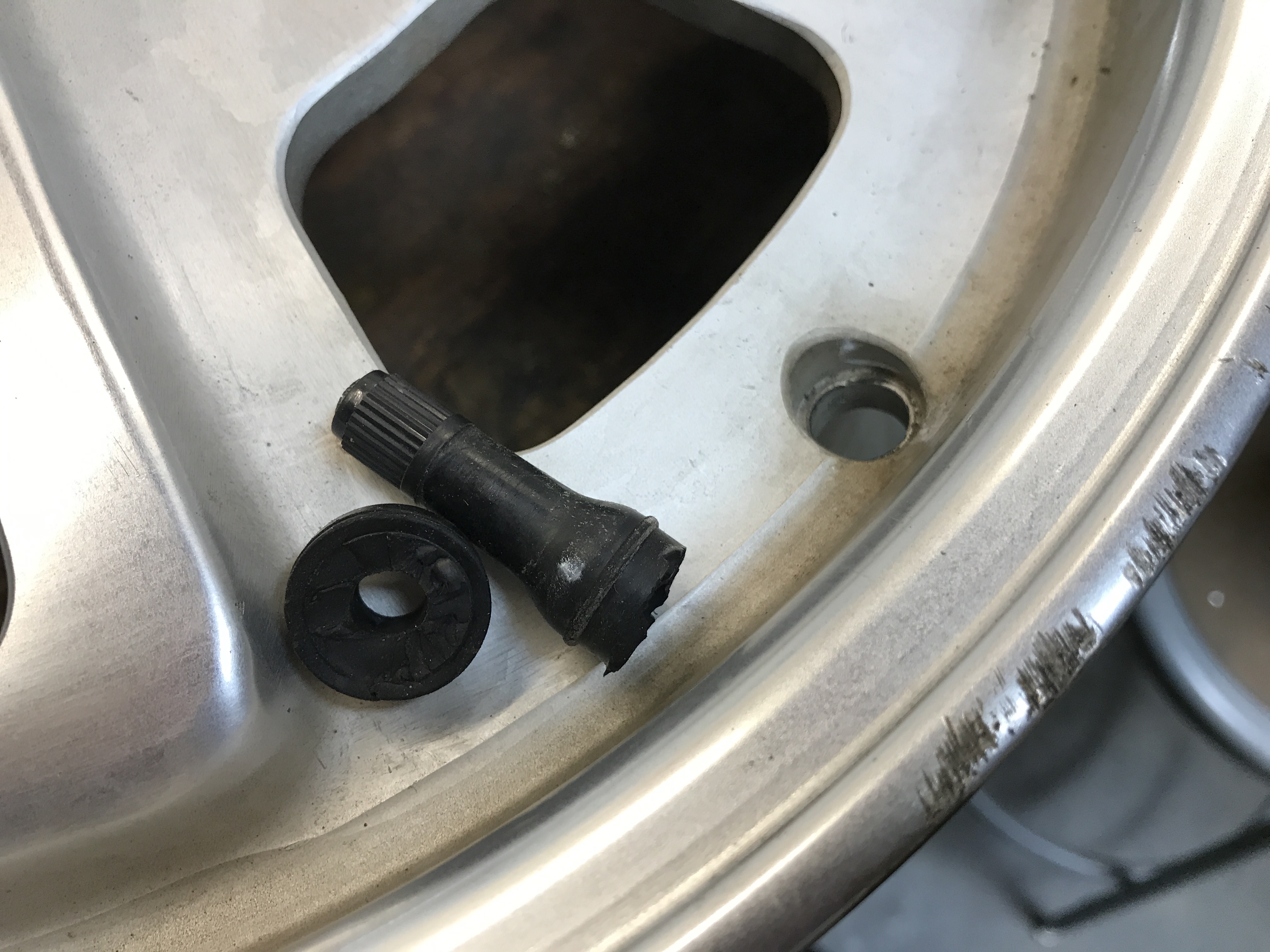 I got the rest of the old tires removed today, and just in time. These all have some scratches, and even a bit of curb rash, but seem to be straight and true. Just dirty.