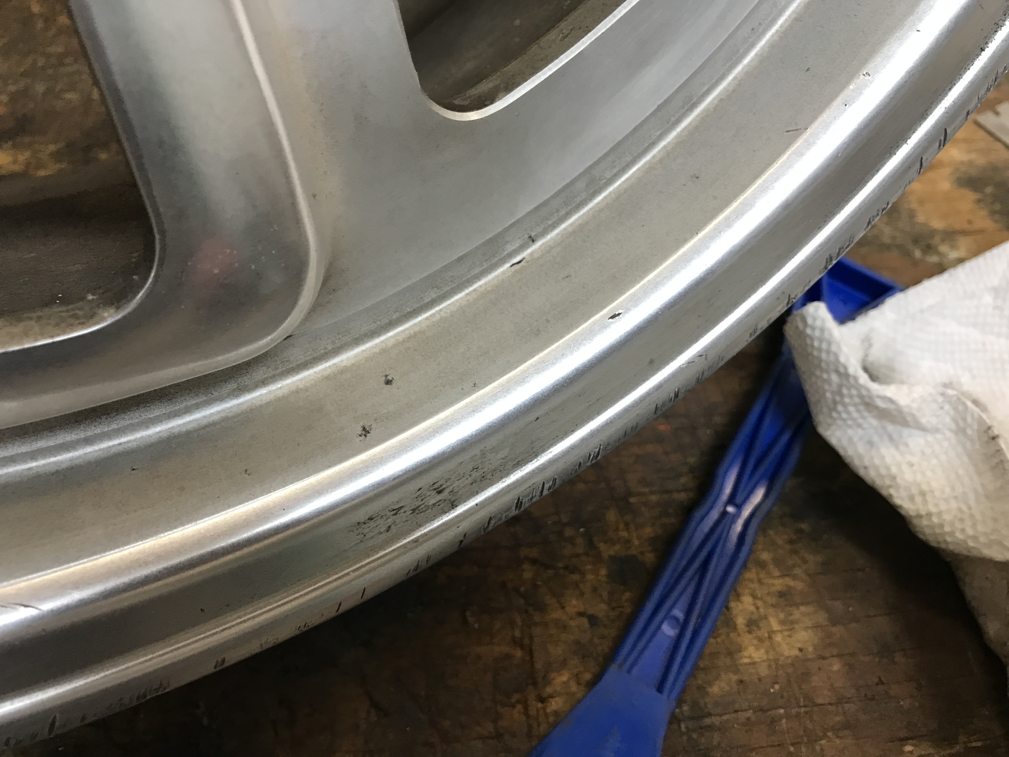 Step 2: A bit of sanding on the curb rash--at least enough to take down any edges and reduce the visibility. I know this removes the anodizing, but I think the trade-off is worthwhile.