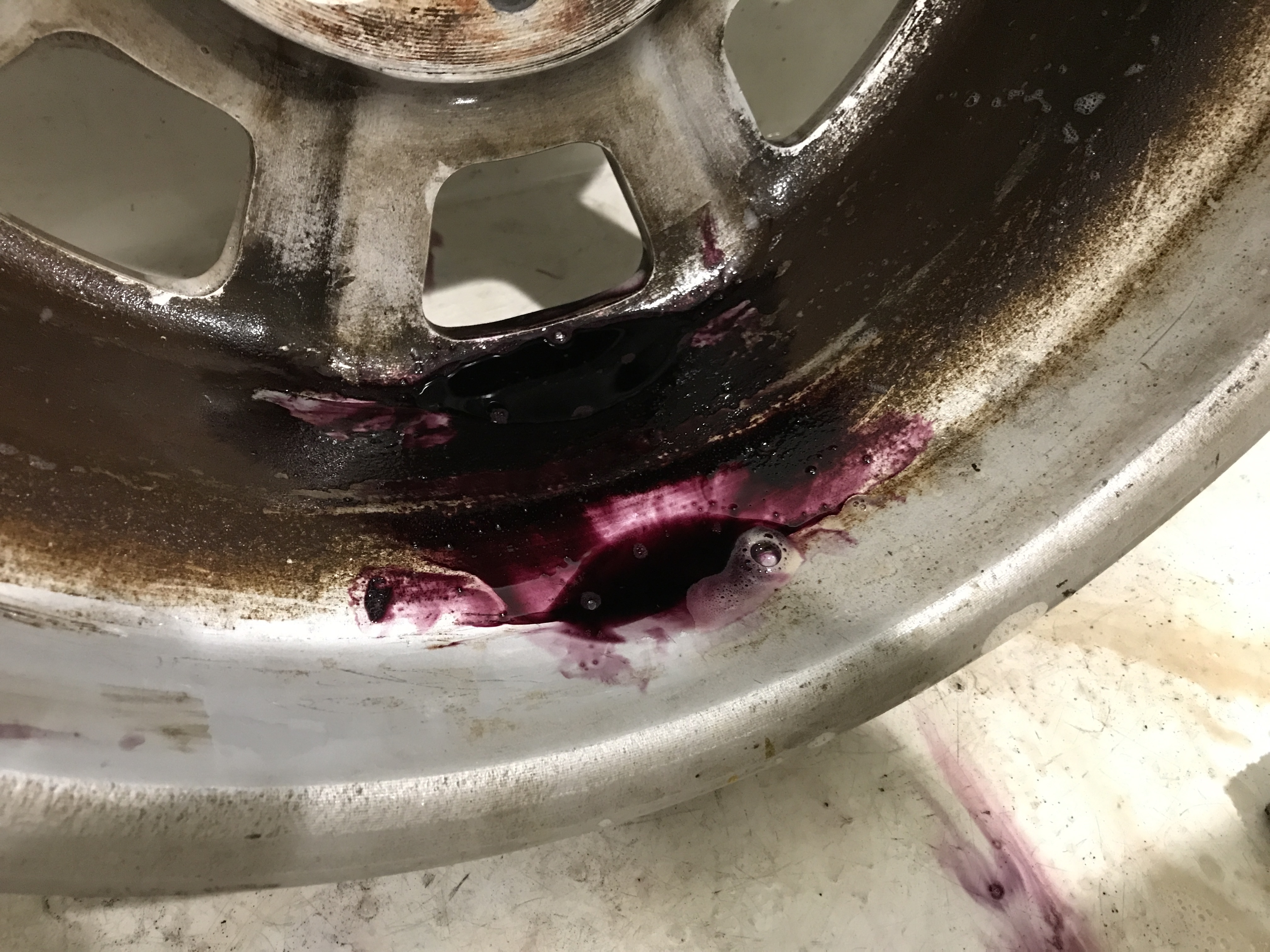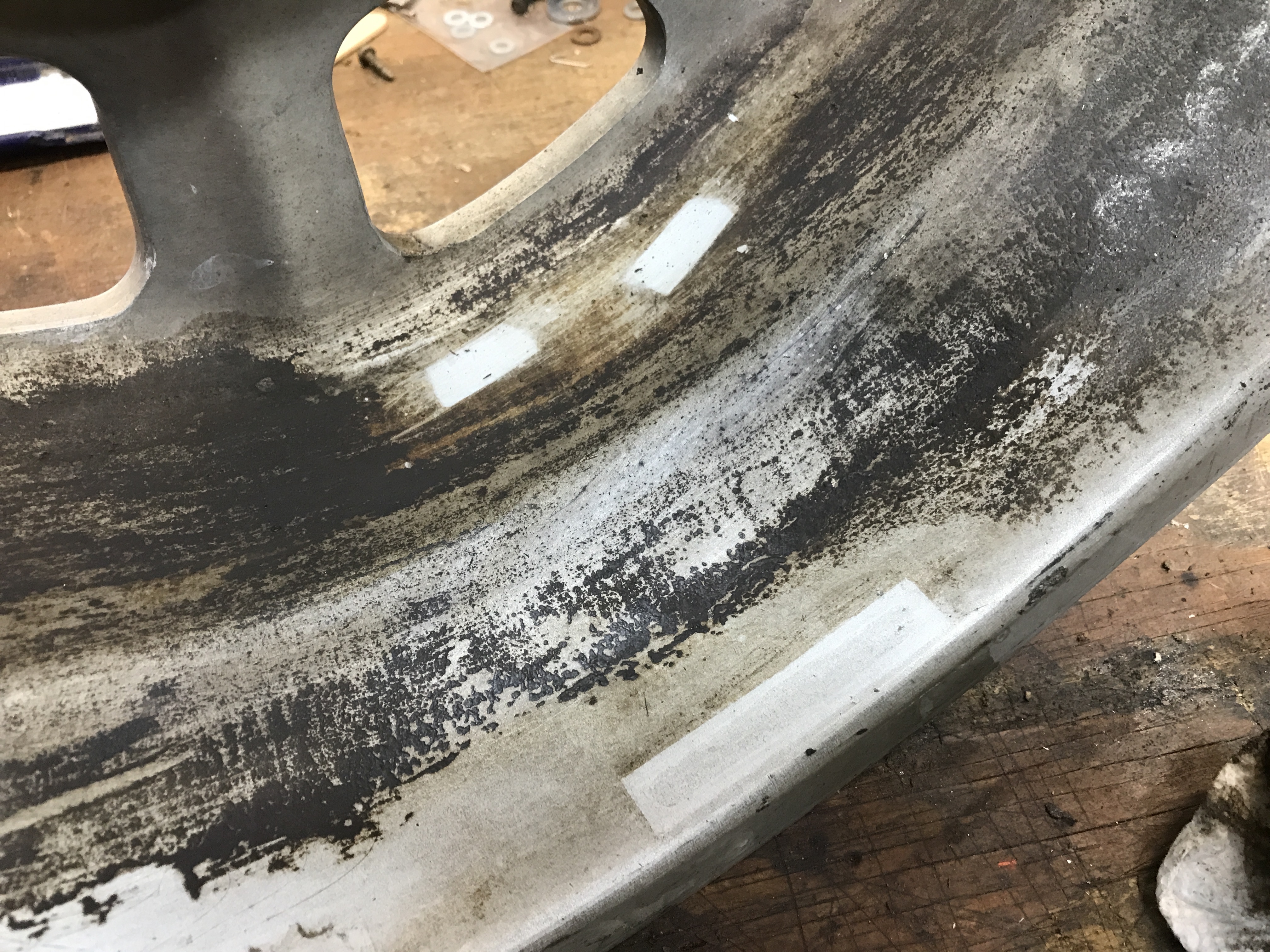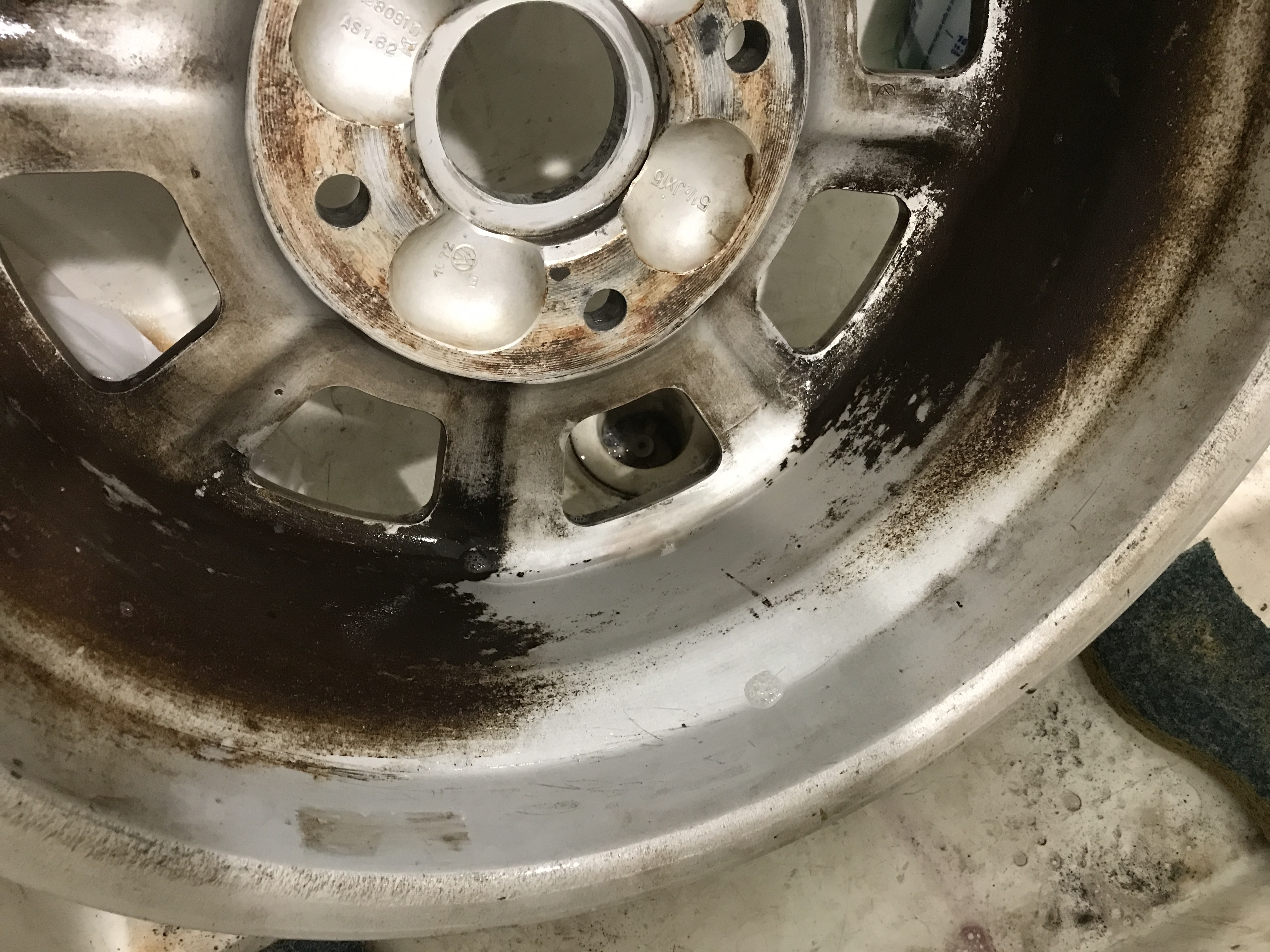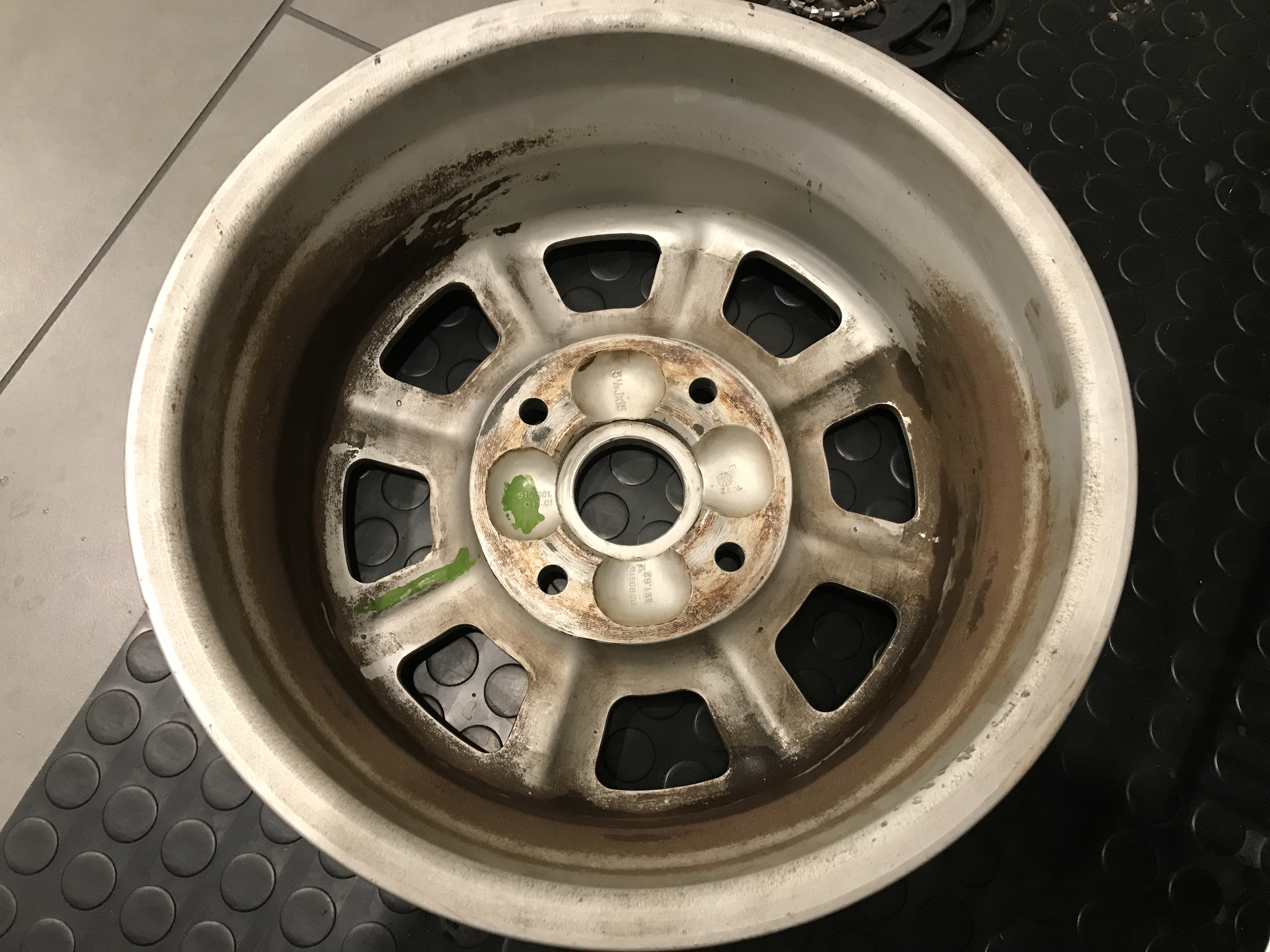 Unfortunately, my bottle of Iron-X was almost empty, so I only got about one-fourth the way around. More stuff ordered. Viel besser! Slow wins the race. One thing I found useful in cleaning the anodized Fuchs on 911's was a mixture of white vinegar and hot water. Not sure if that would be helpful for you on the front sides? |