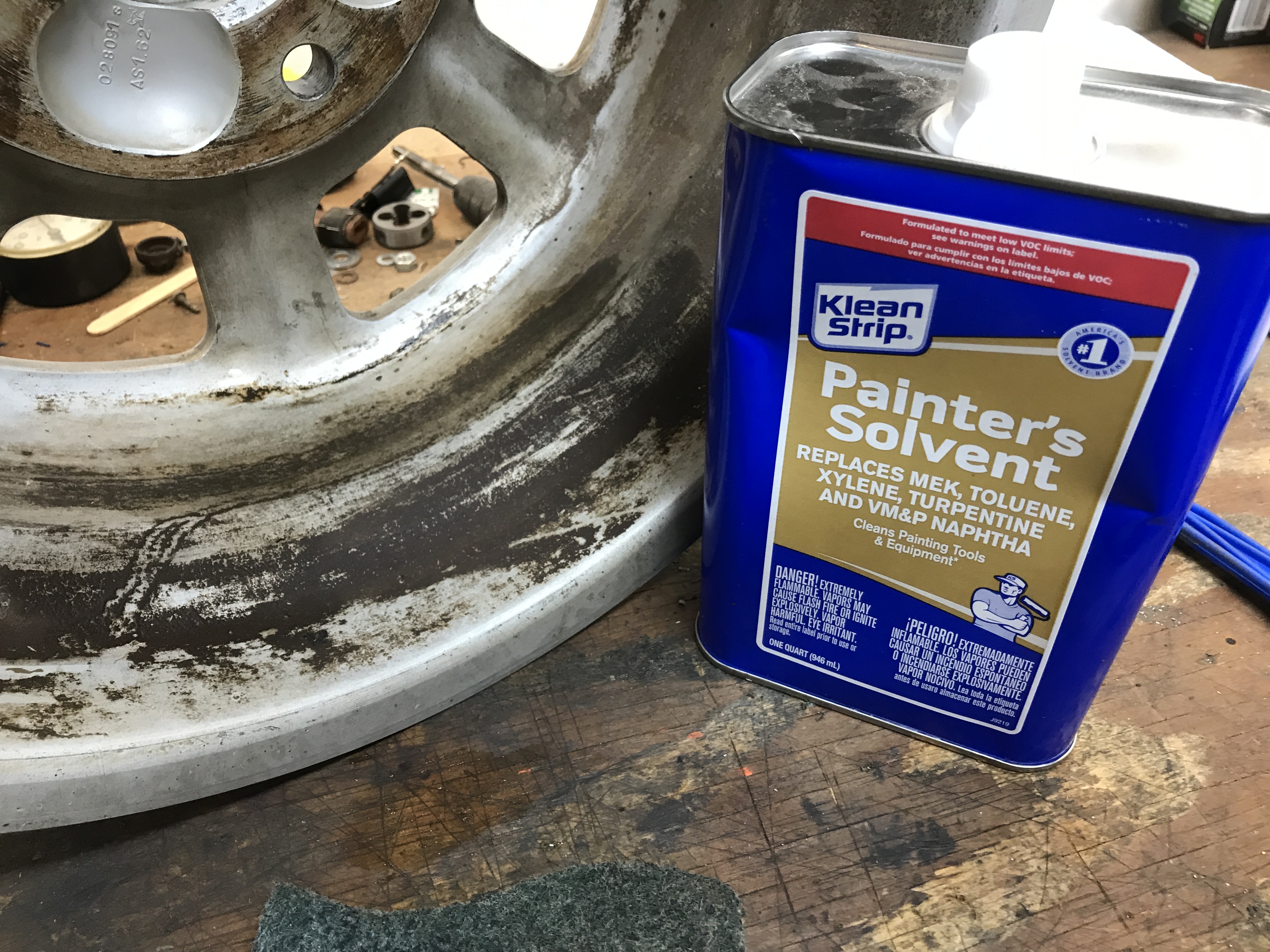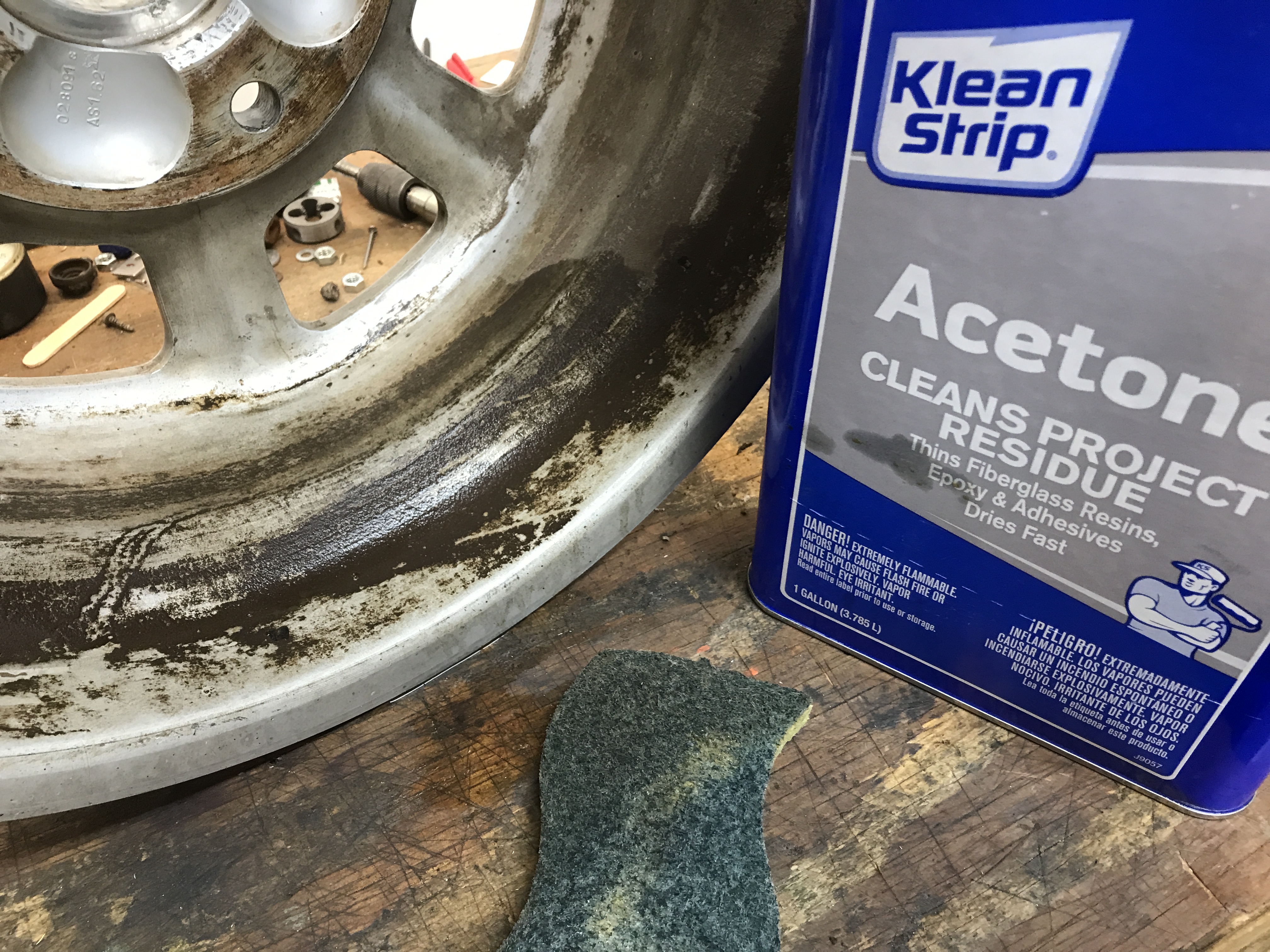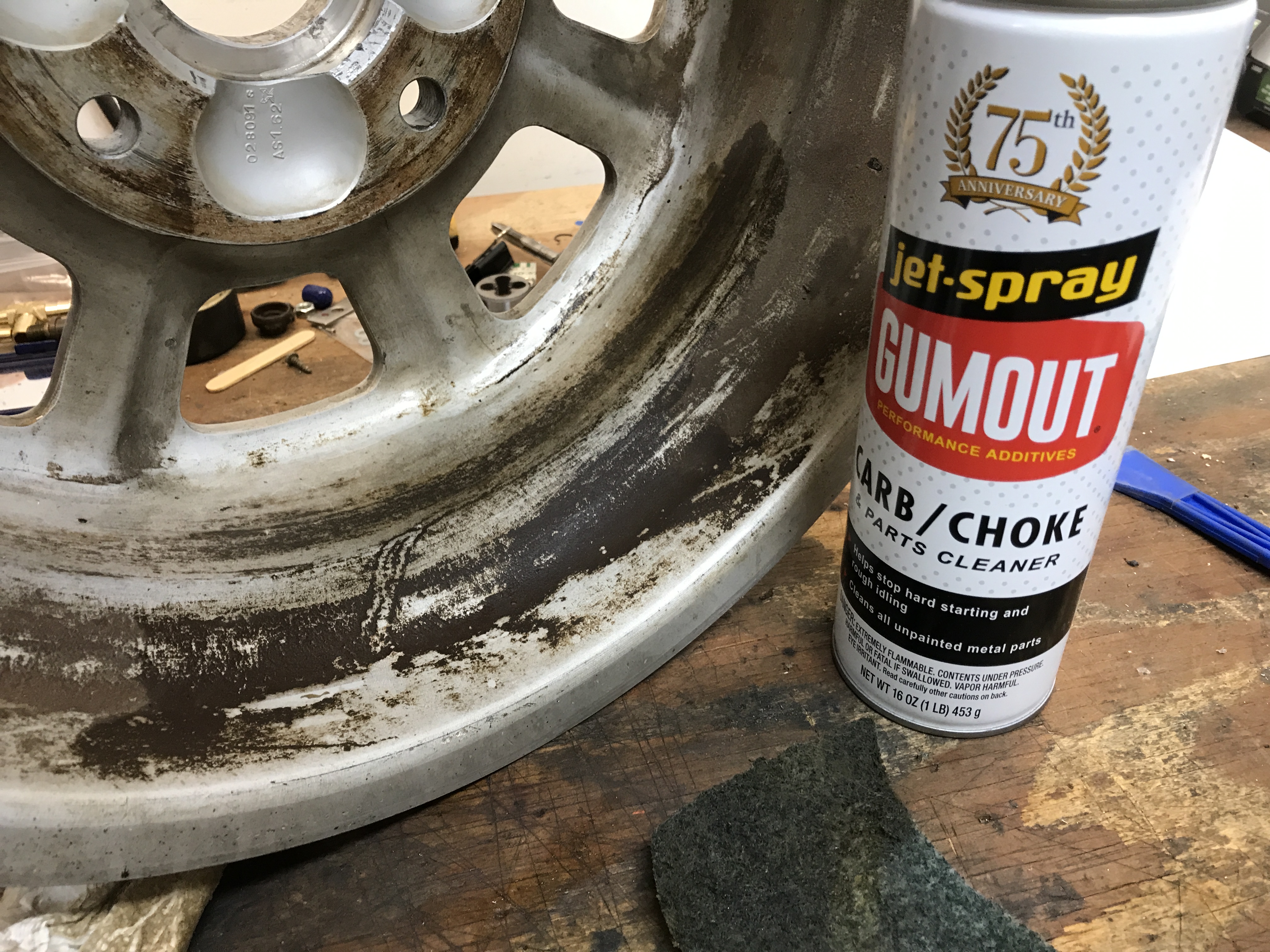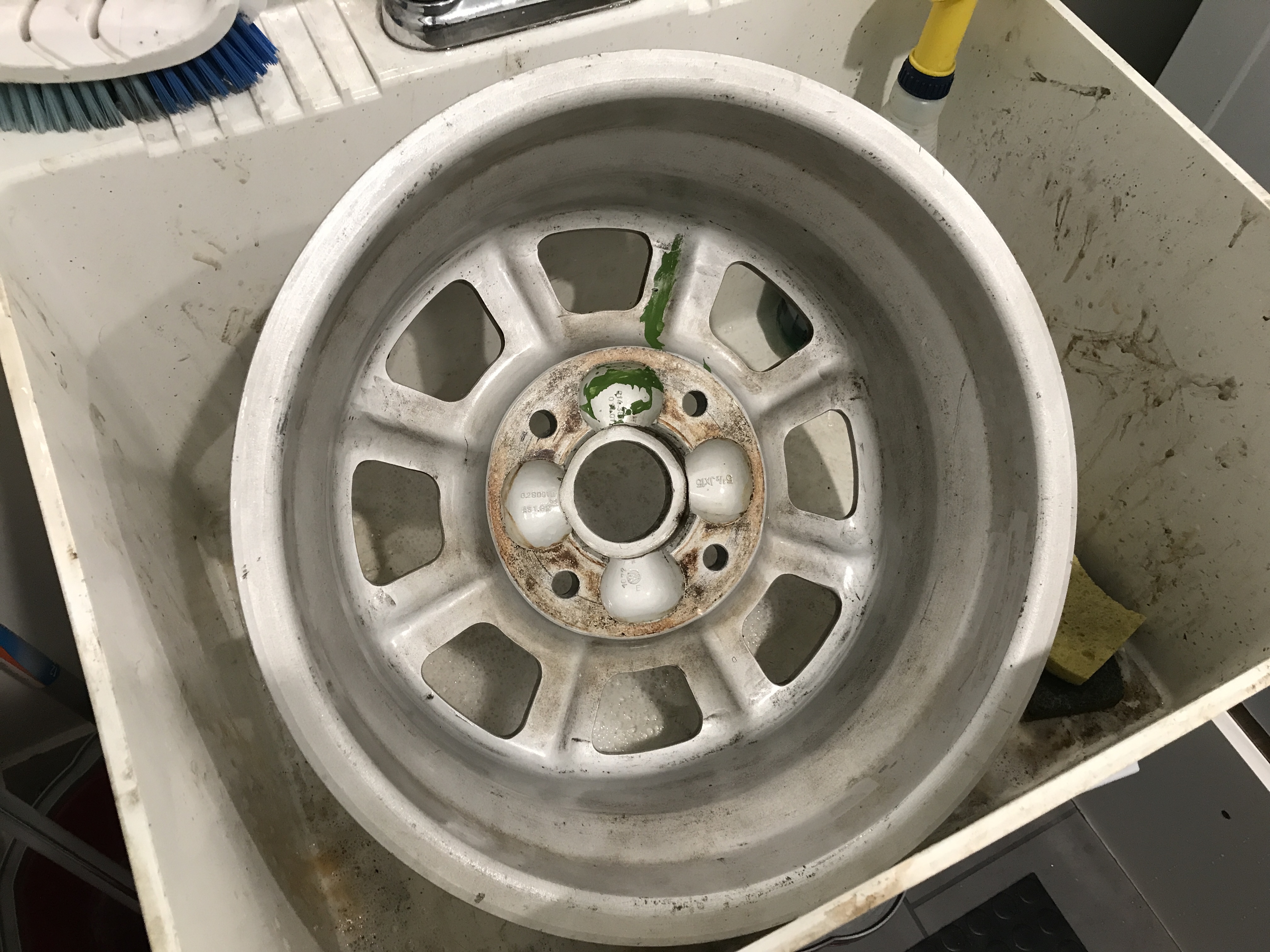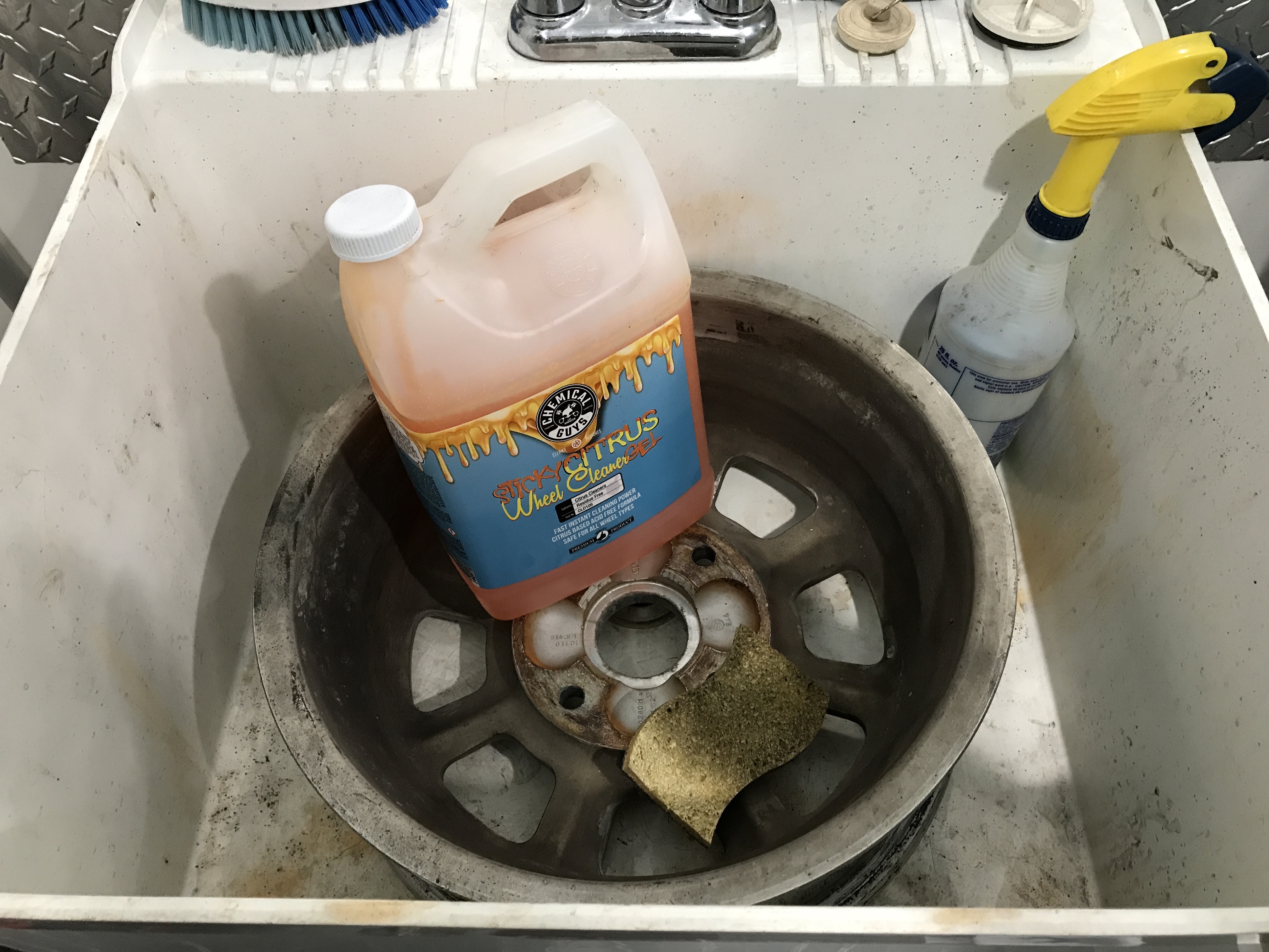 Step 6: Attack the crud inside the wheel with cleaner. Note, this wheel and one other have a pretty solid coat of hardened brown crud.
