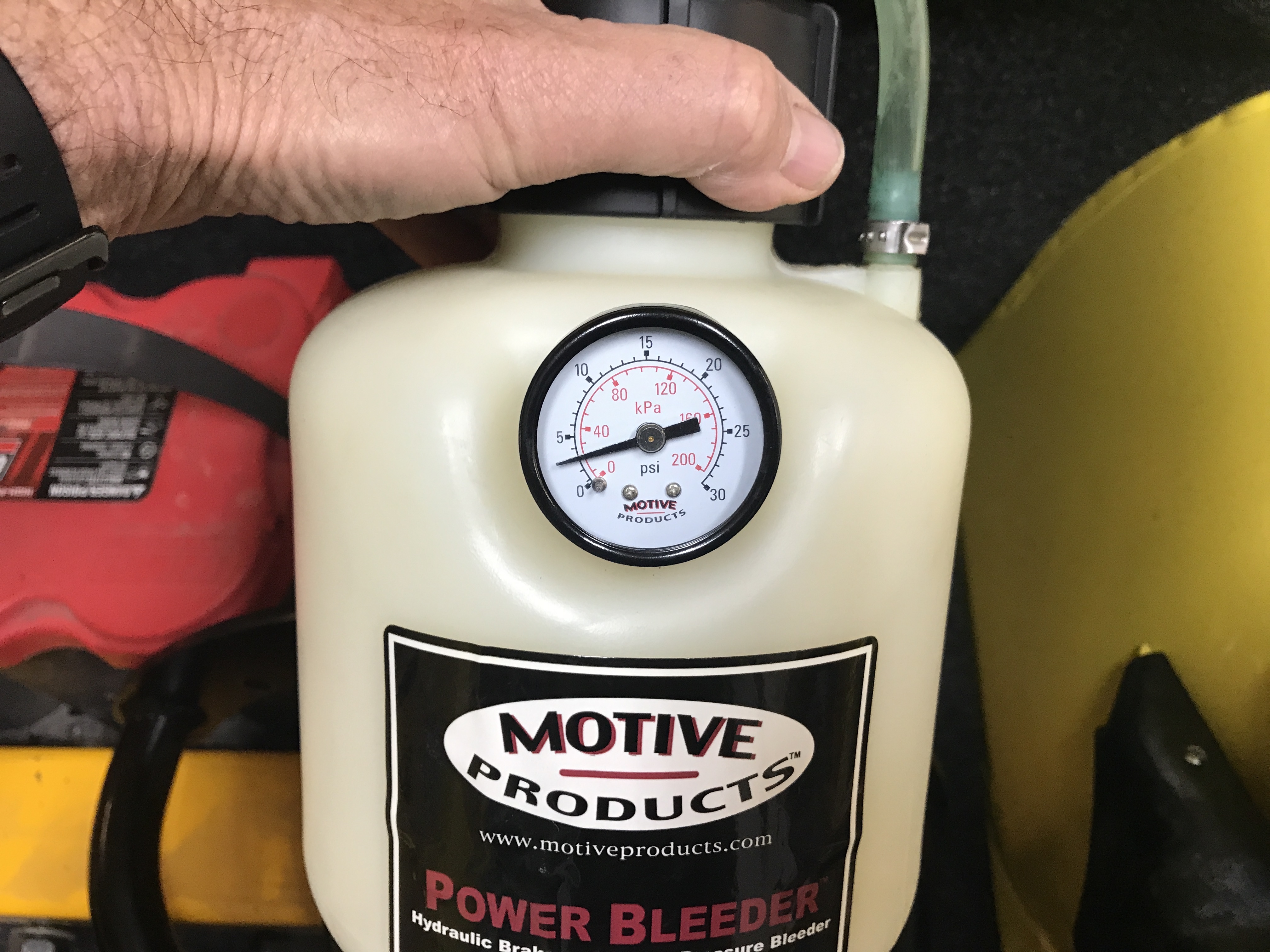 Then I finally got back to starting to bleed the system. I used the pressure bottle to bleed all four corners twice, with lots of tapping of components and a few pumps of the brake pedal. I could hear some action in rear.
