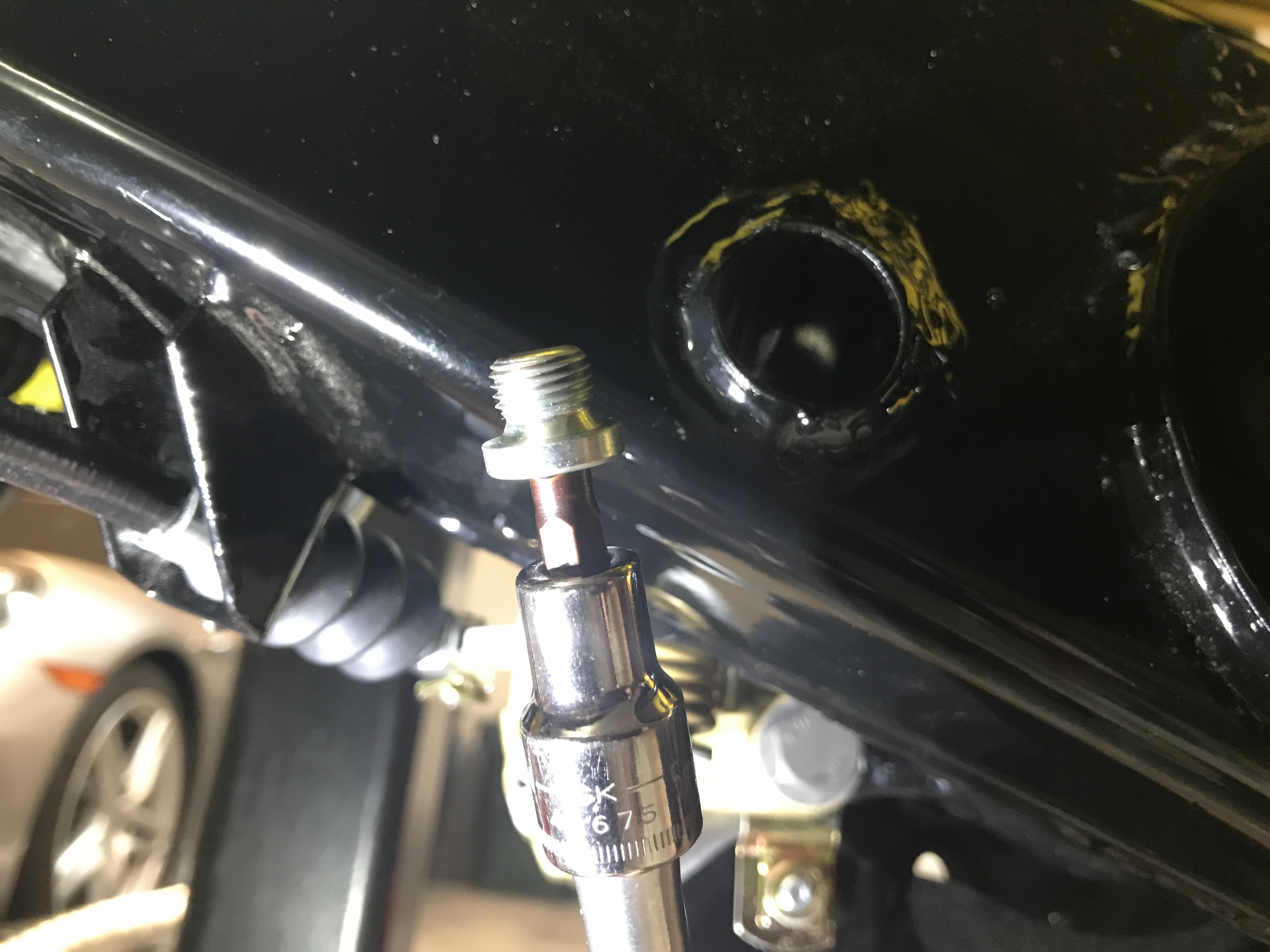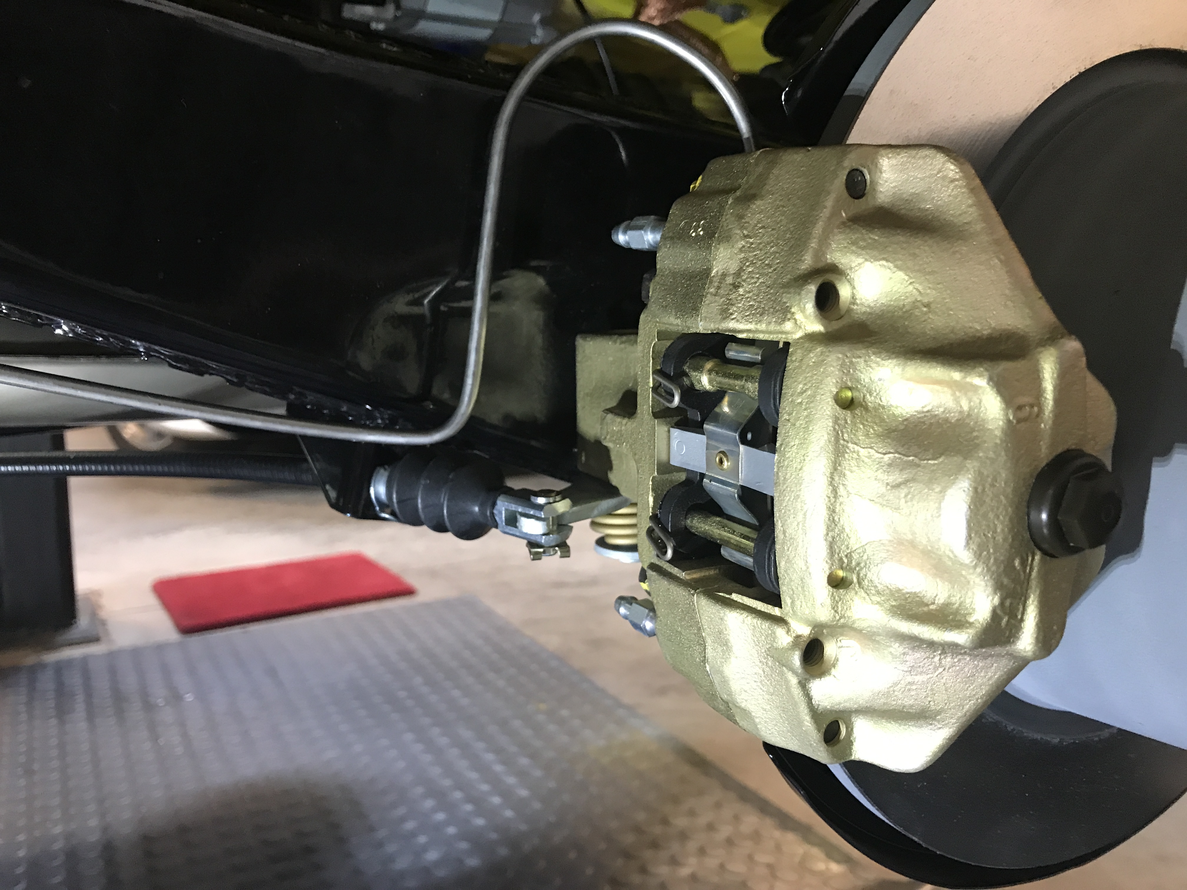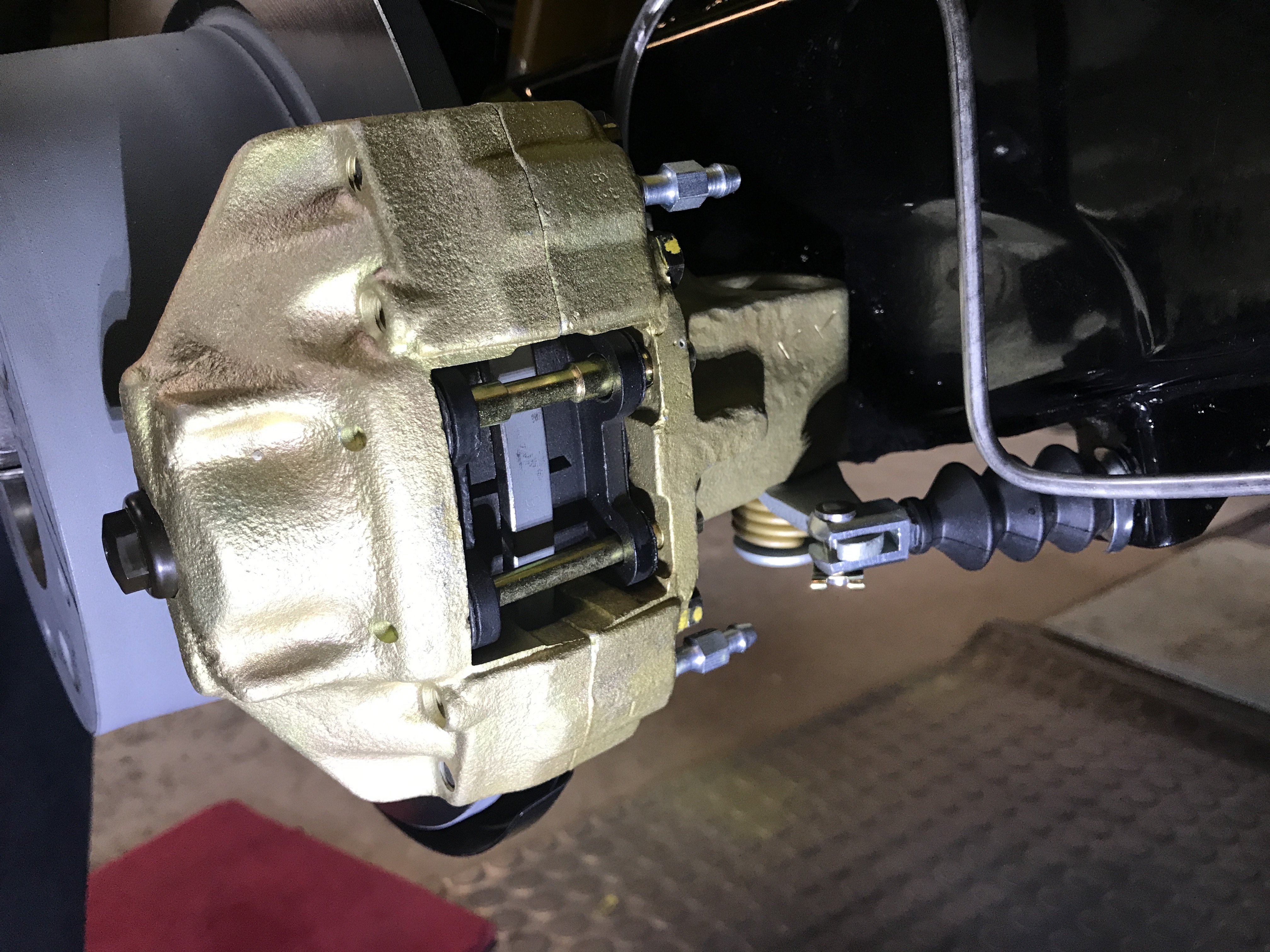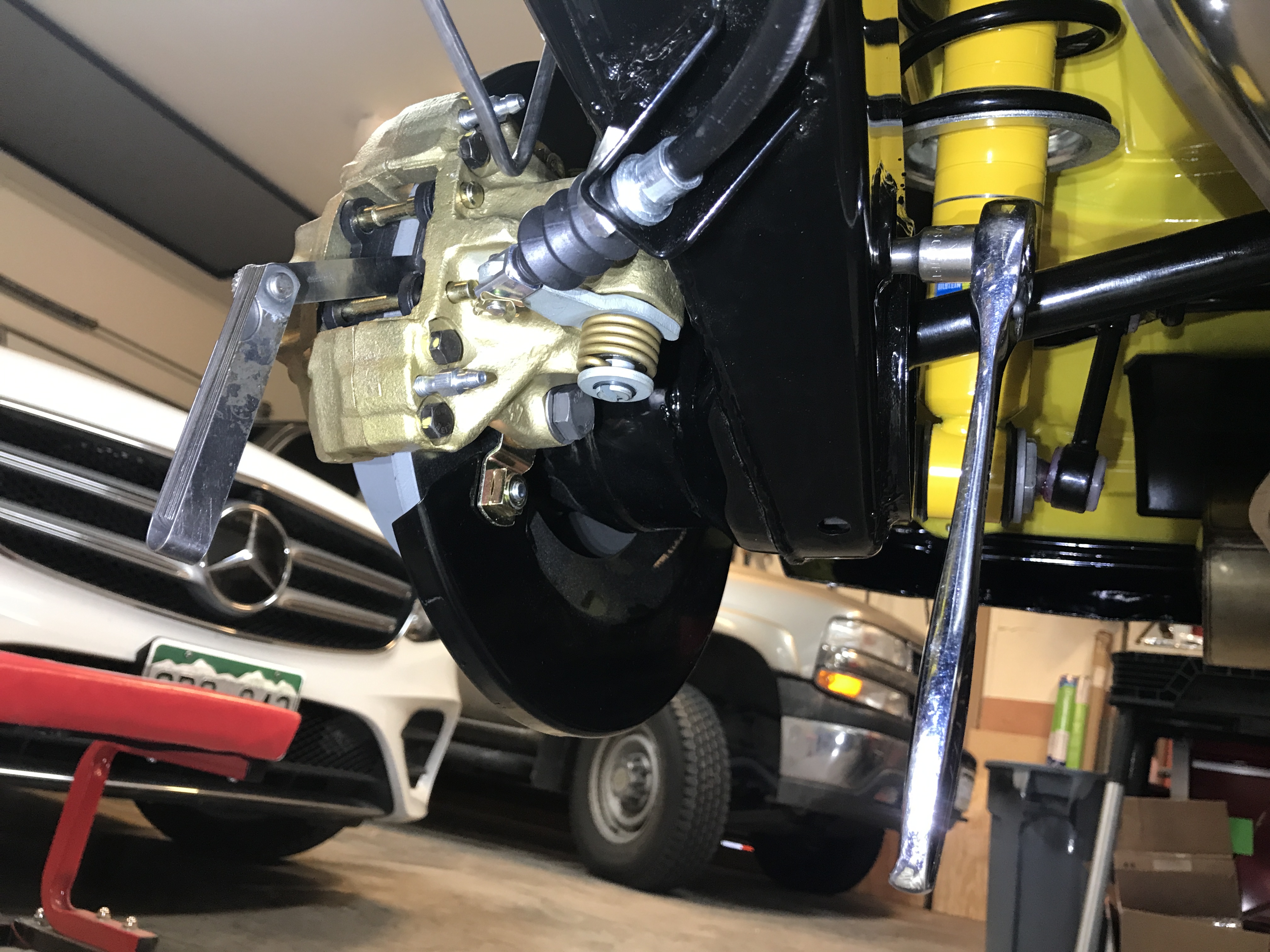 So feeling confident, I re-attached the parking brake cables and tightened the rear caliper mounting bolts.