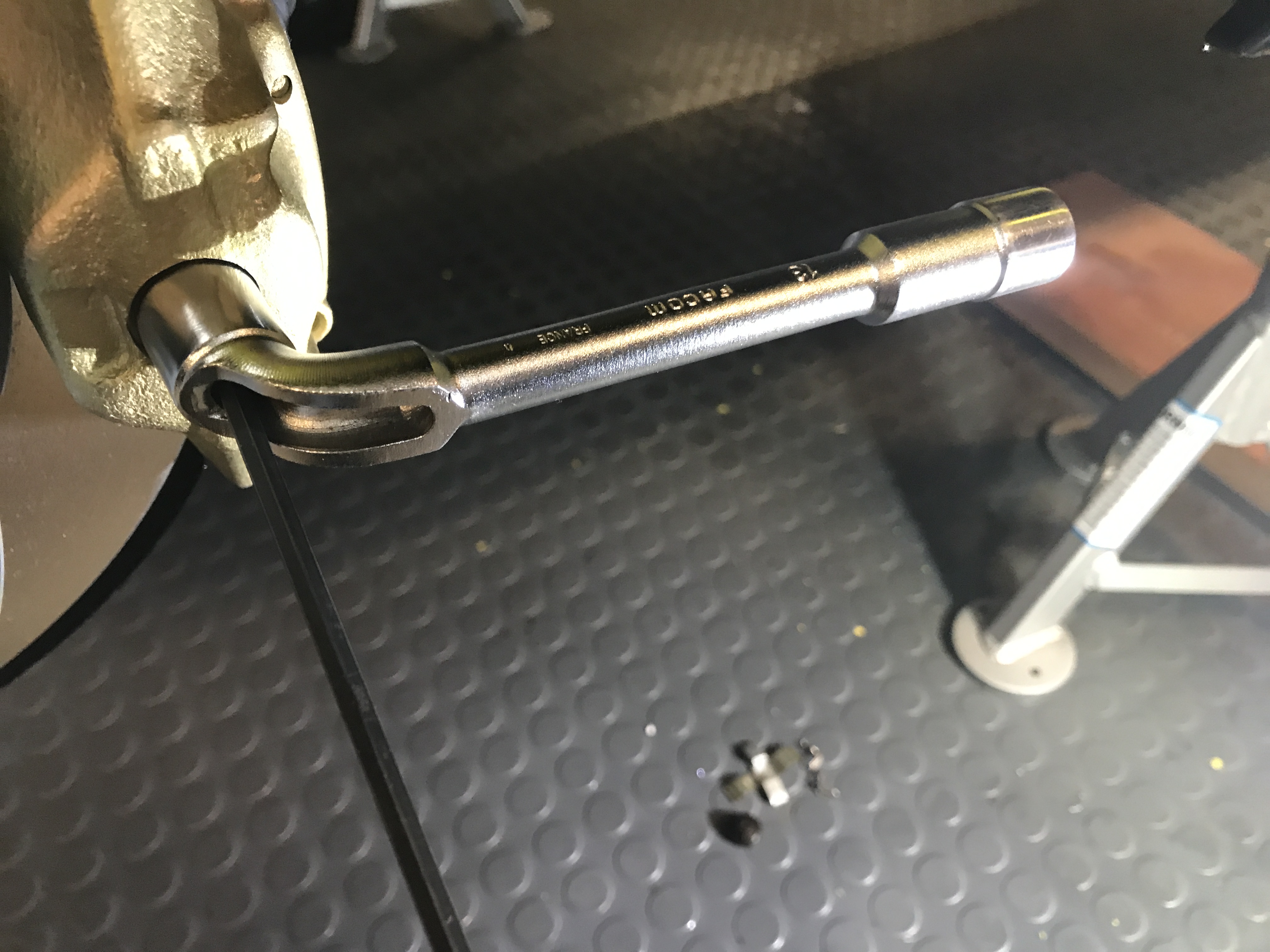 For the outer adjuster, I have the perfect wrench: a Facom socket wrench. This has an open end to allow the Allen wrench through.