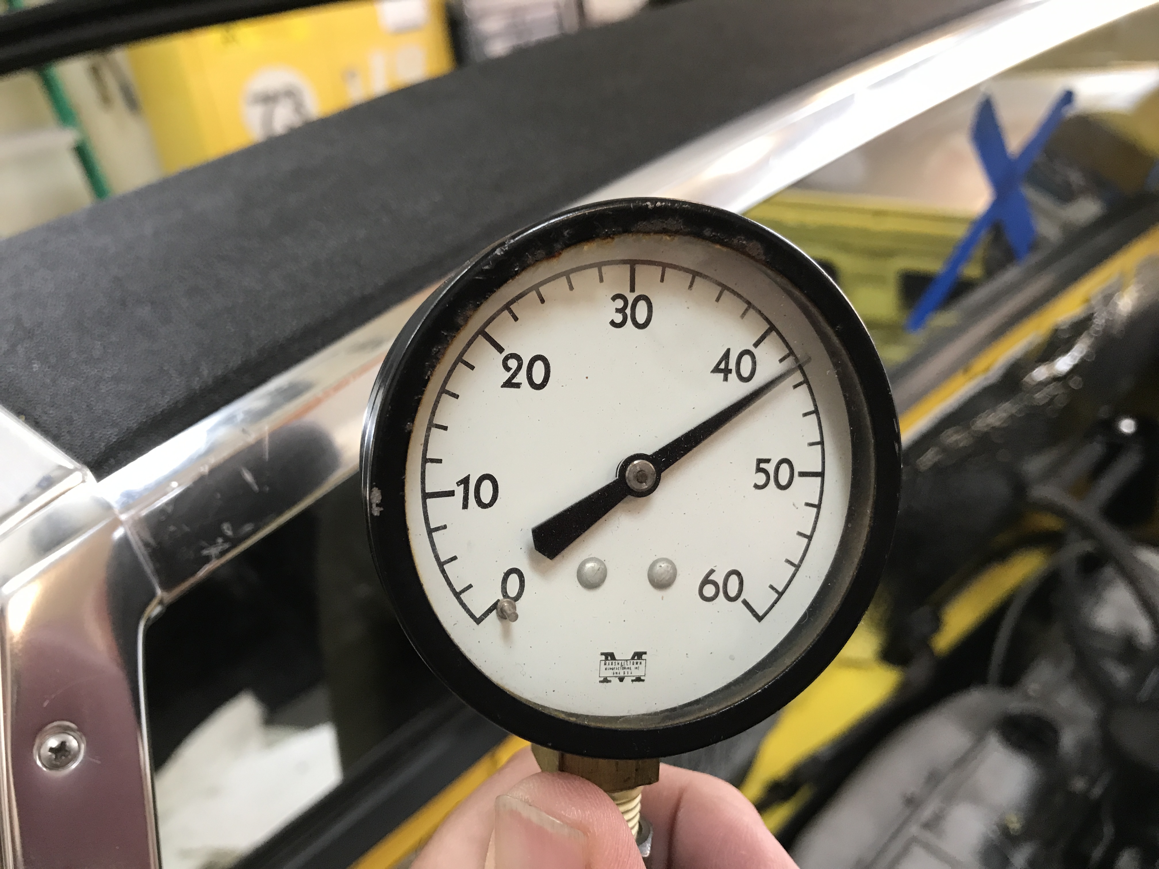 Still performing basic checks. The fuel pressure should be 43.5 psi--looks good on the gauge.