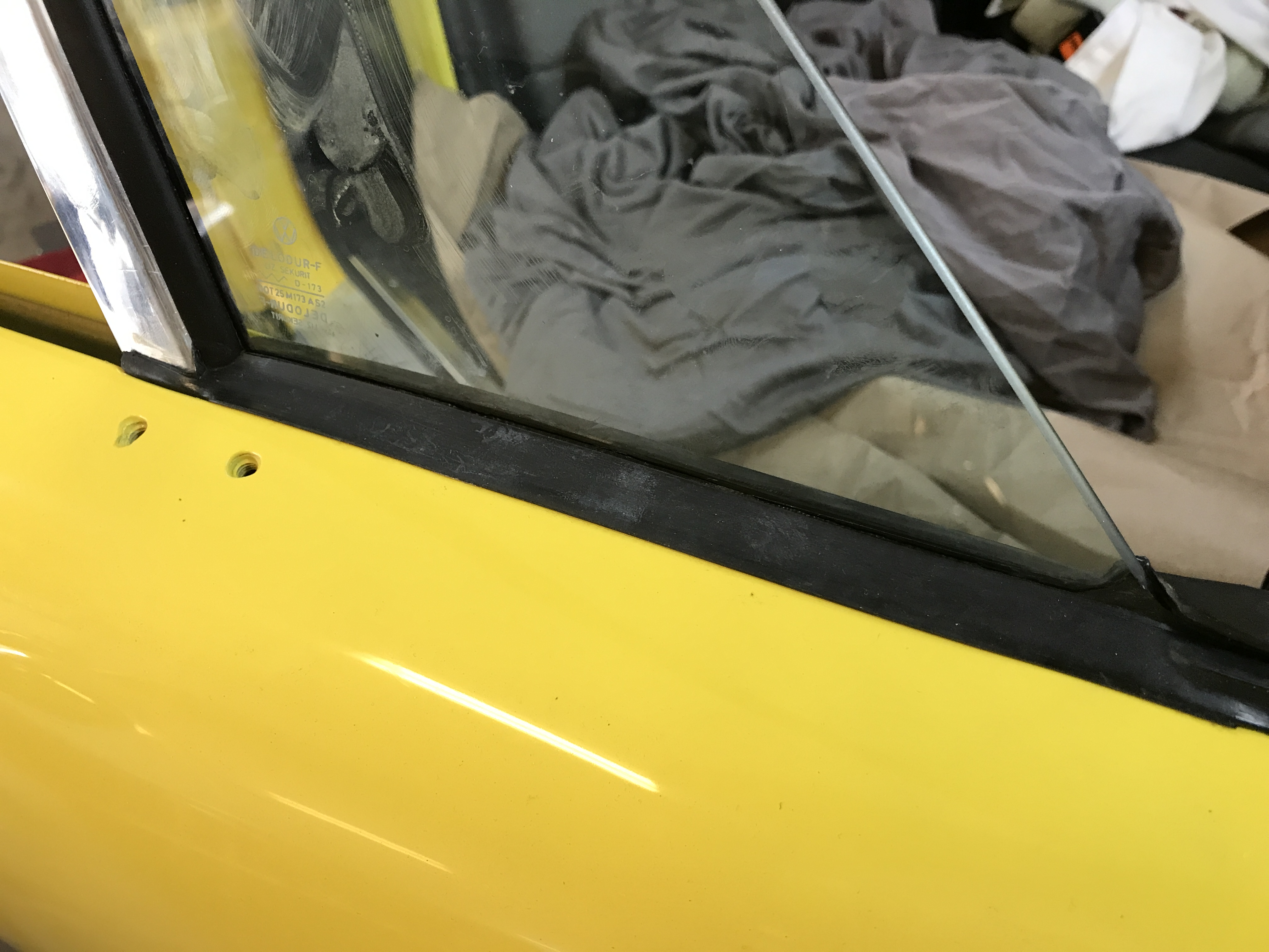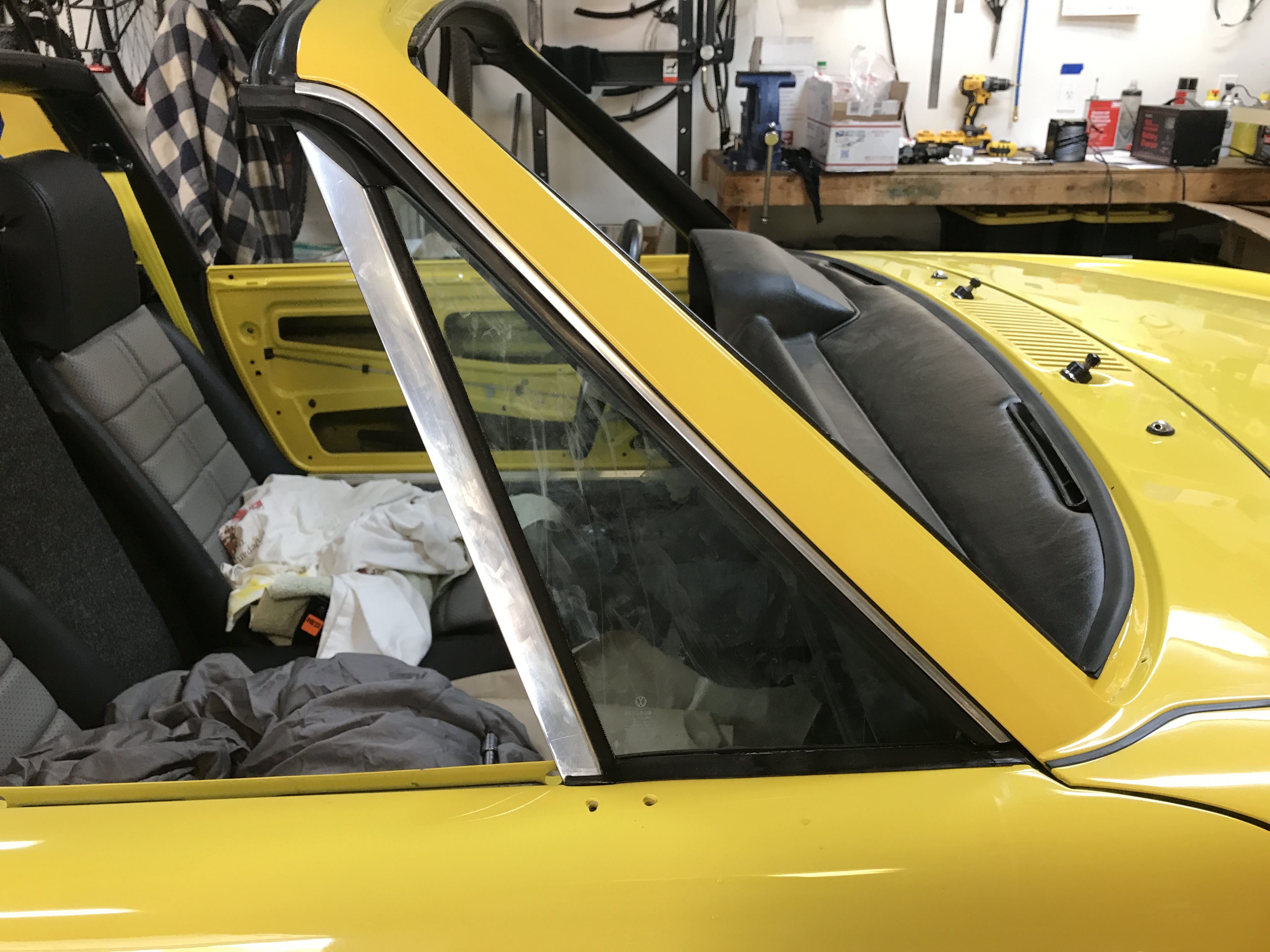 But now, I have interference between the vent window rubber, and the A-pillar weatherstrip that I had rough-cut last year. A bit more precise trimming took care of that.
