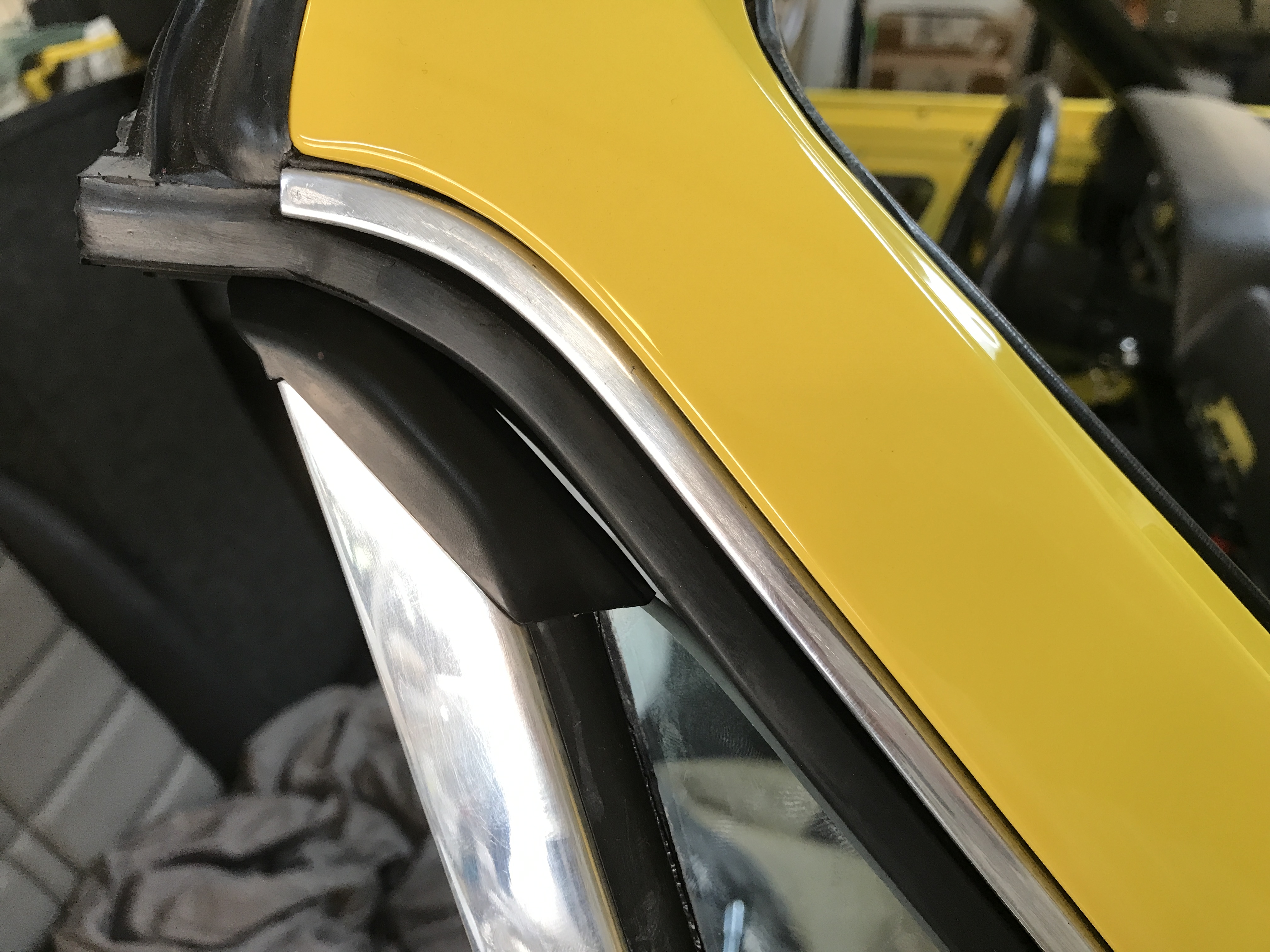 Vent window installed into the new rubber, along with a new channel cap on top.
