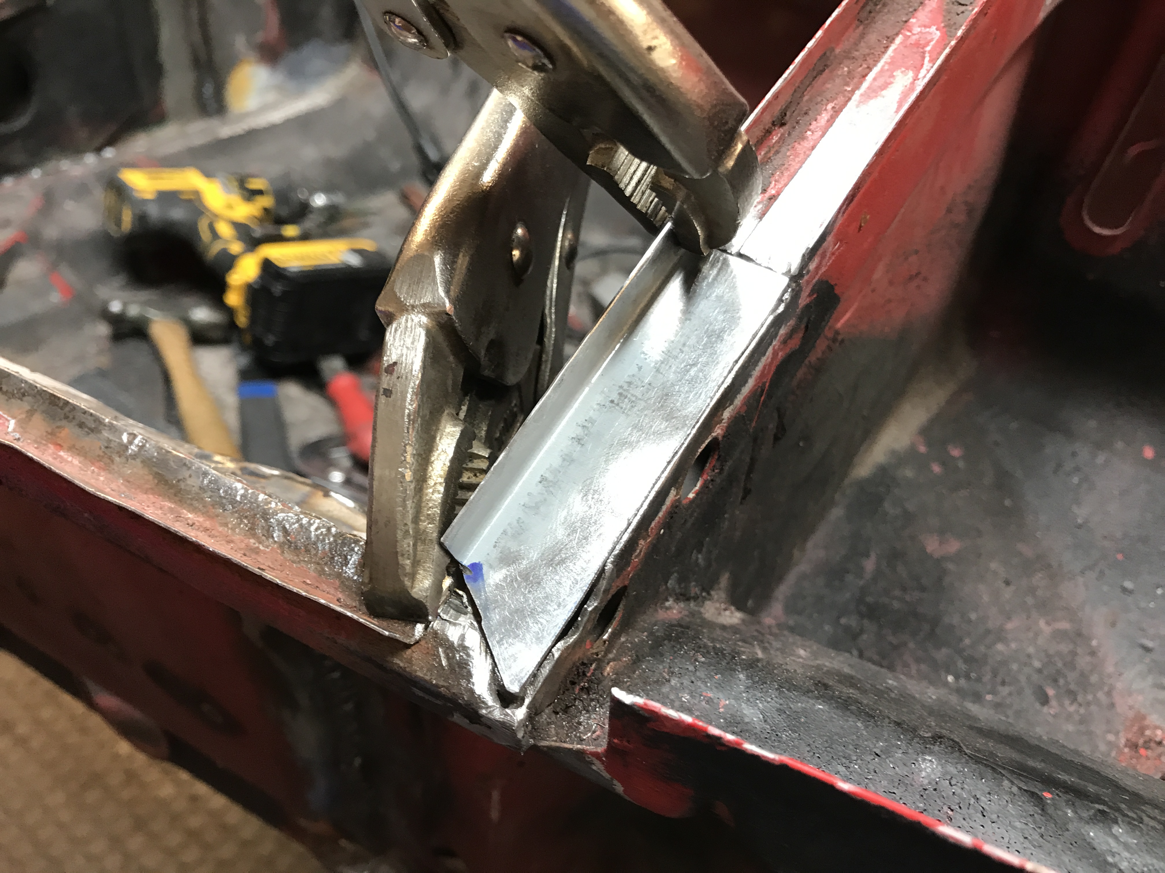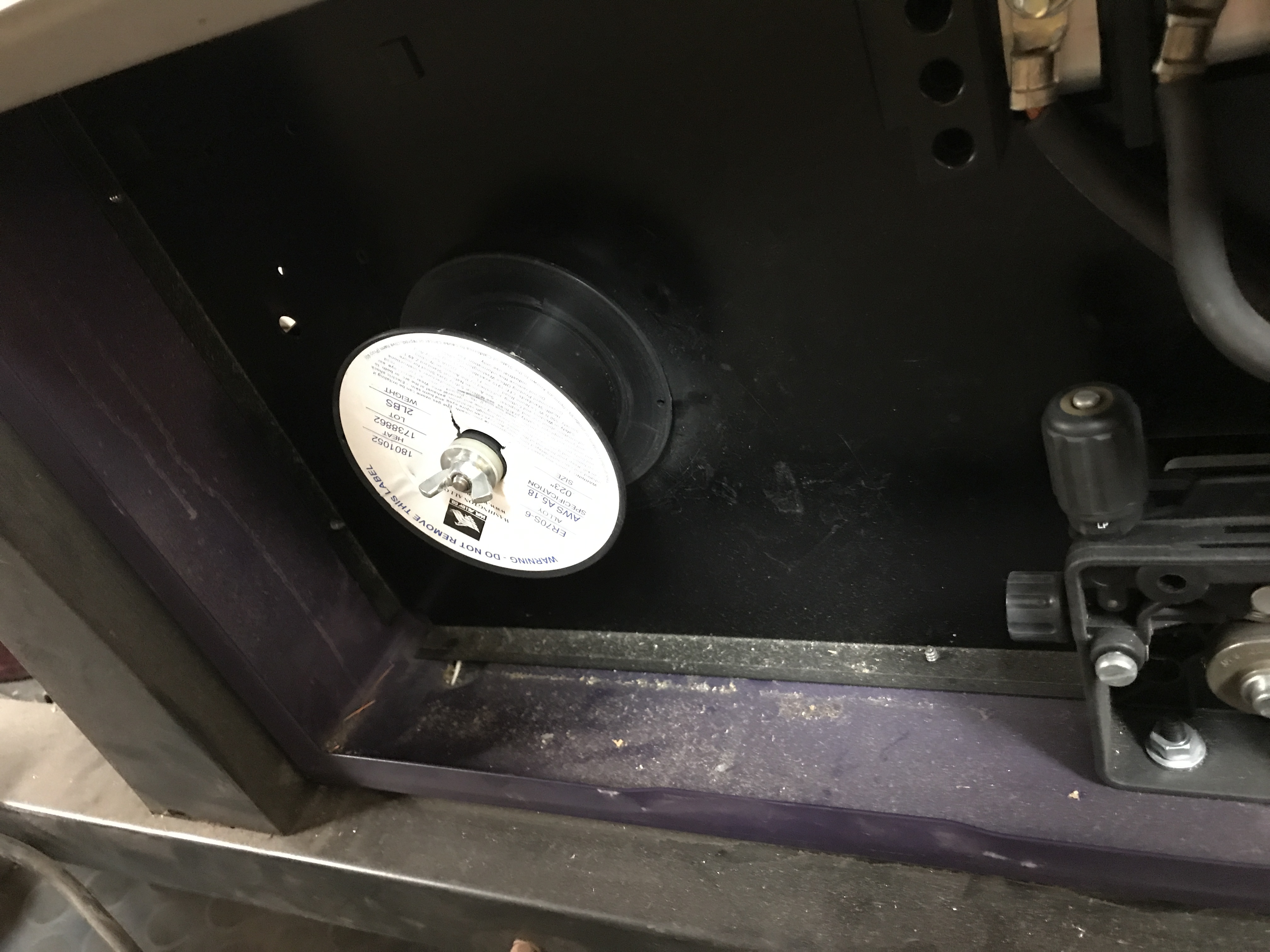 I started to tack weld this, and...the wire ran out. Always at an inconvenient moment, right? I had one more spool in my stock.