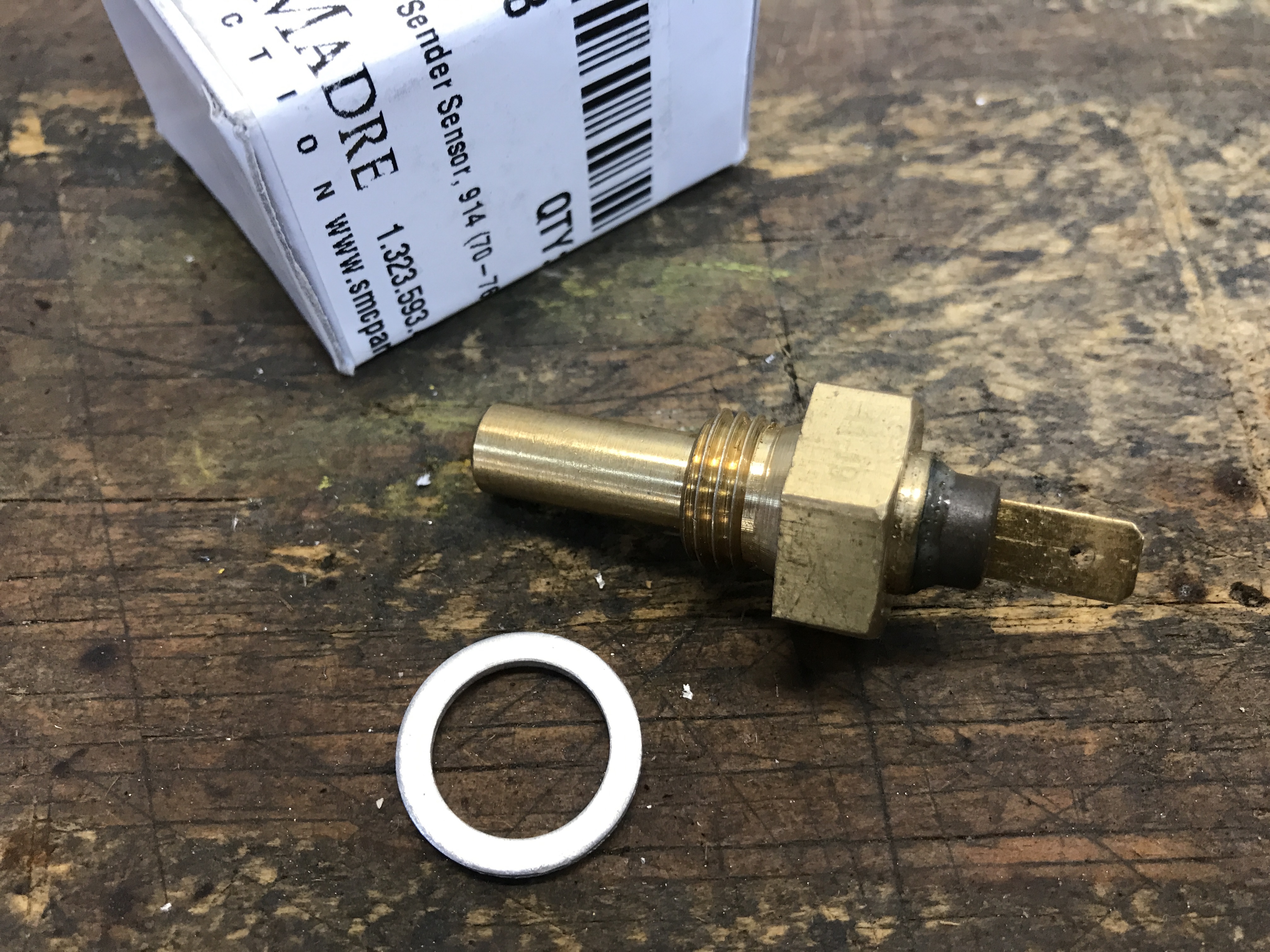 I got my repro oil temp sender from Pelican (in a box tagged Sierra Madre). Now time for more detective work.