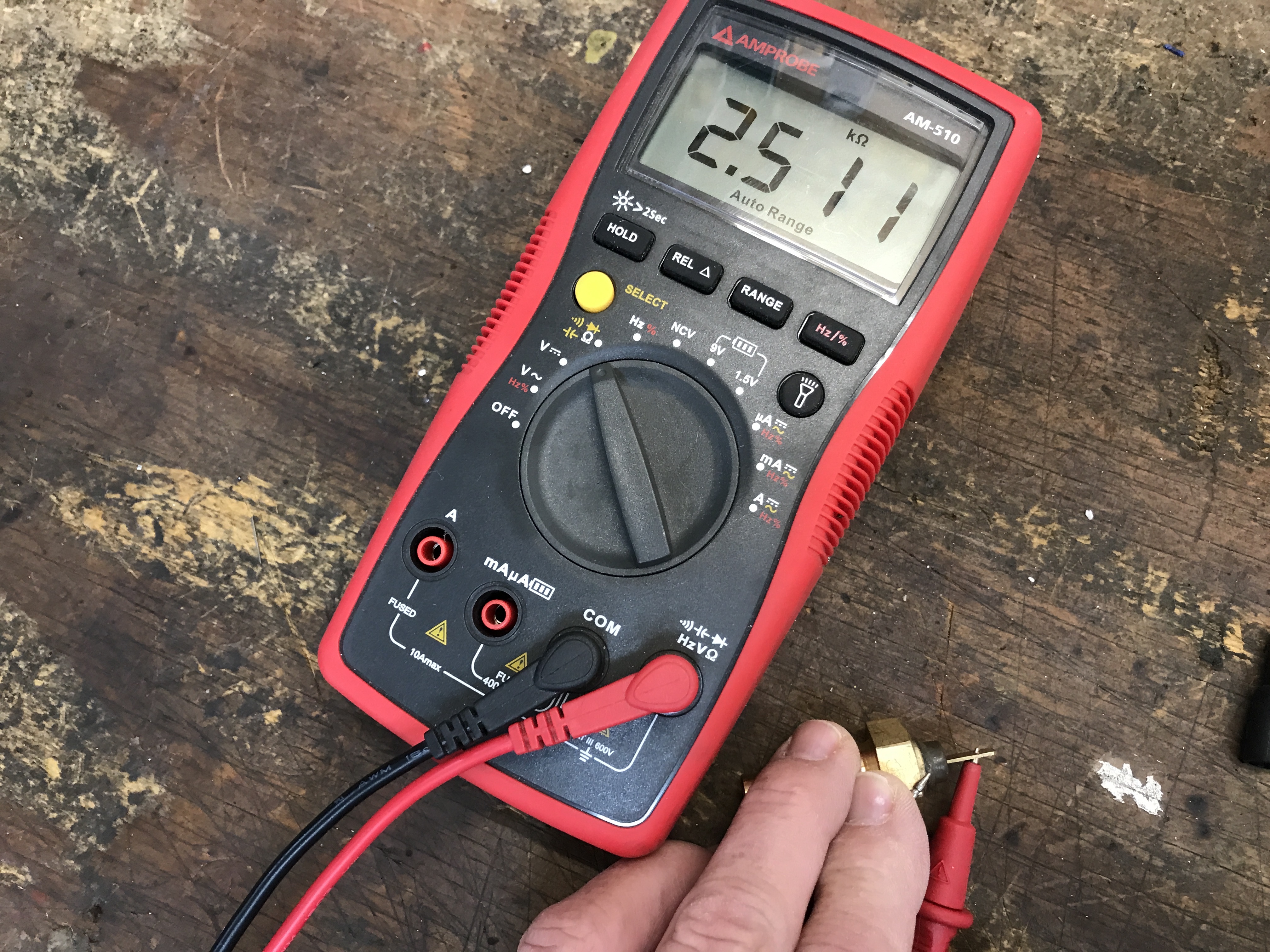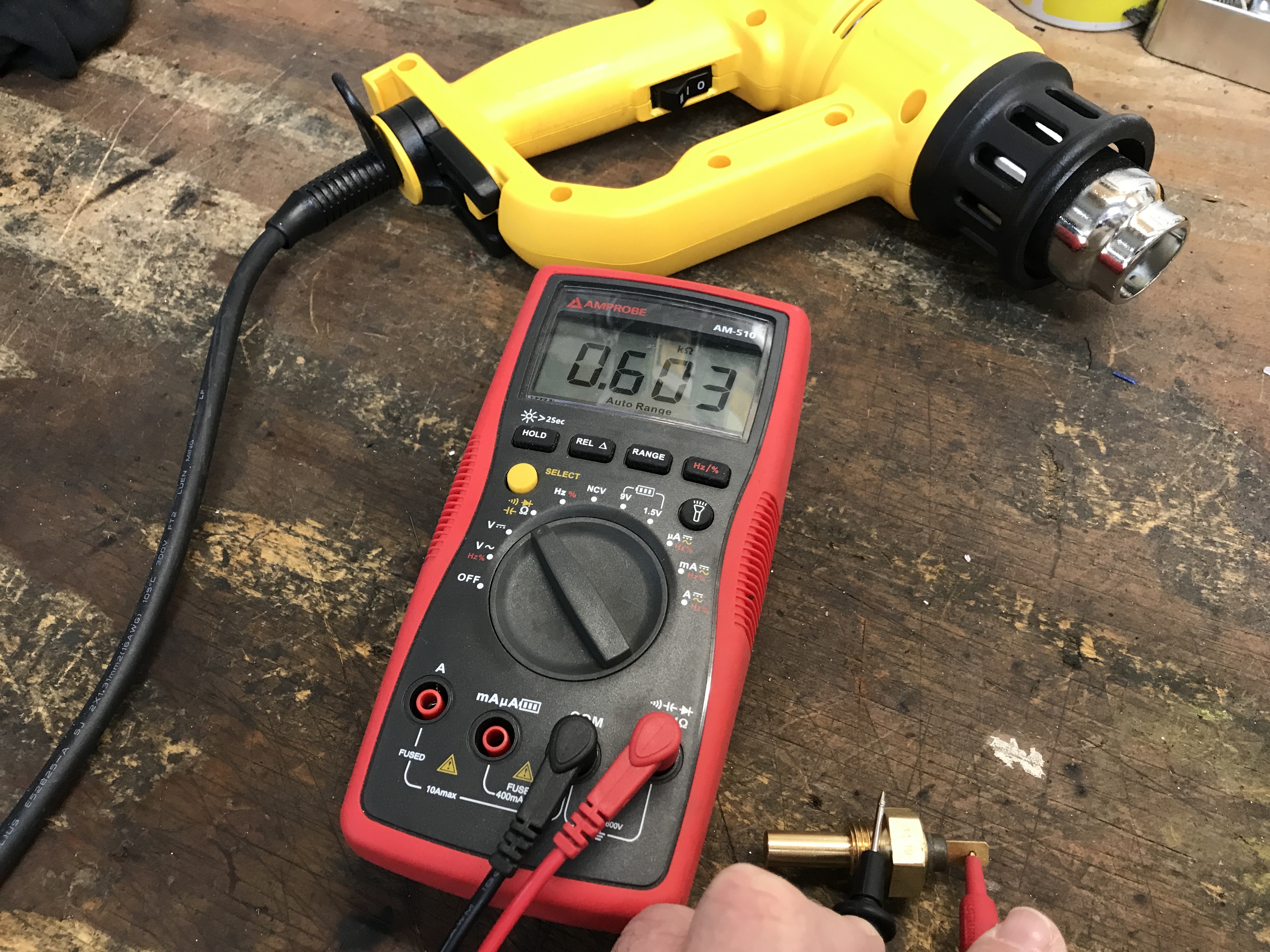 I rigged up the new sender, attached to the lead and grounded to the engine case.