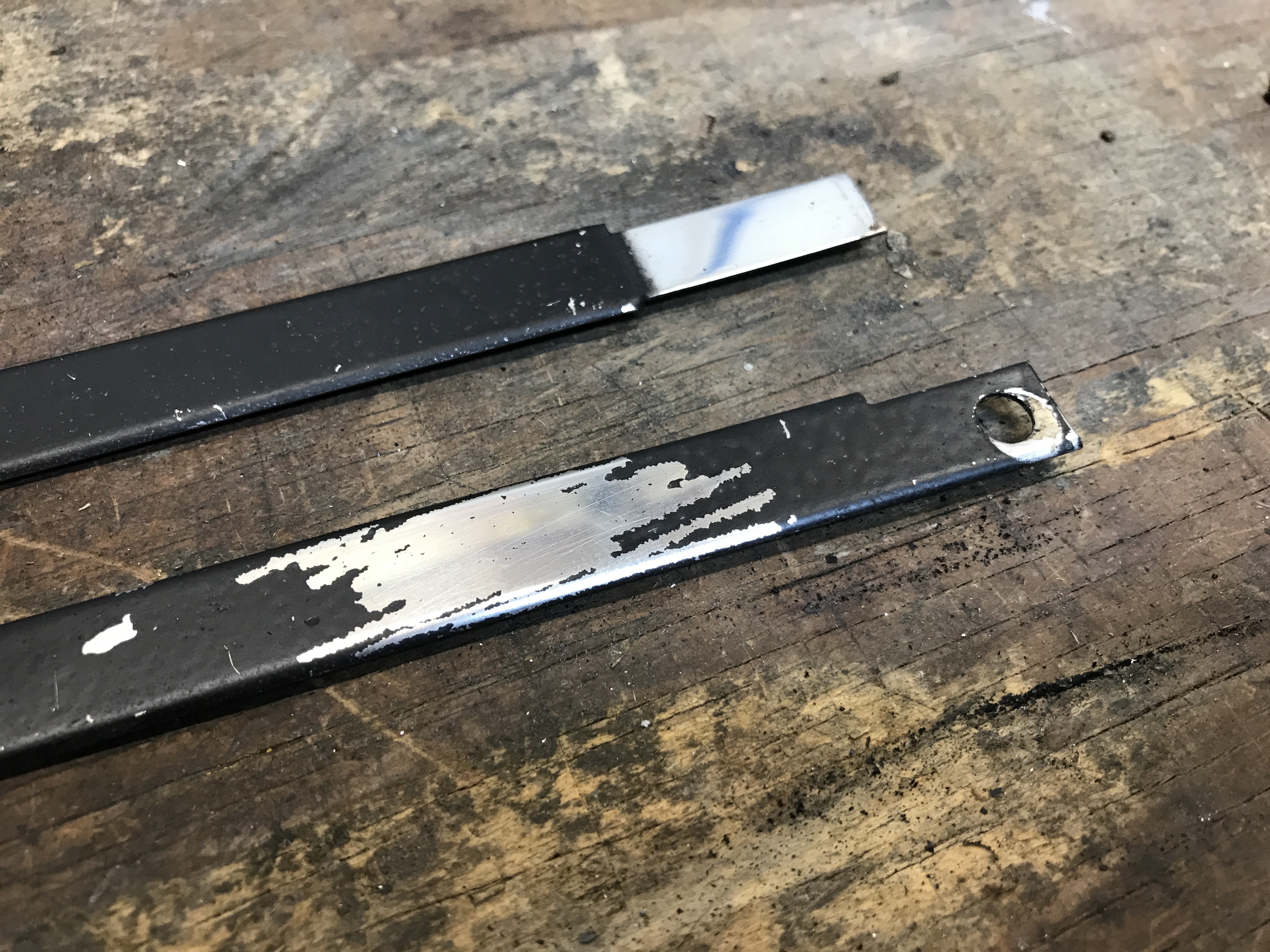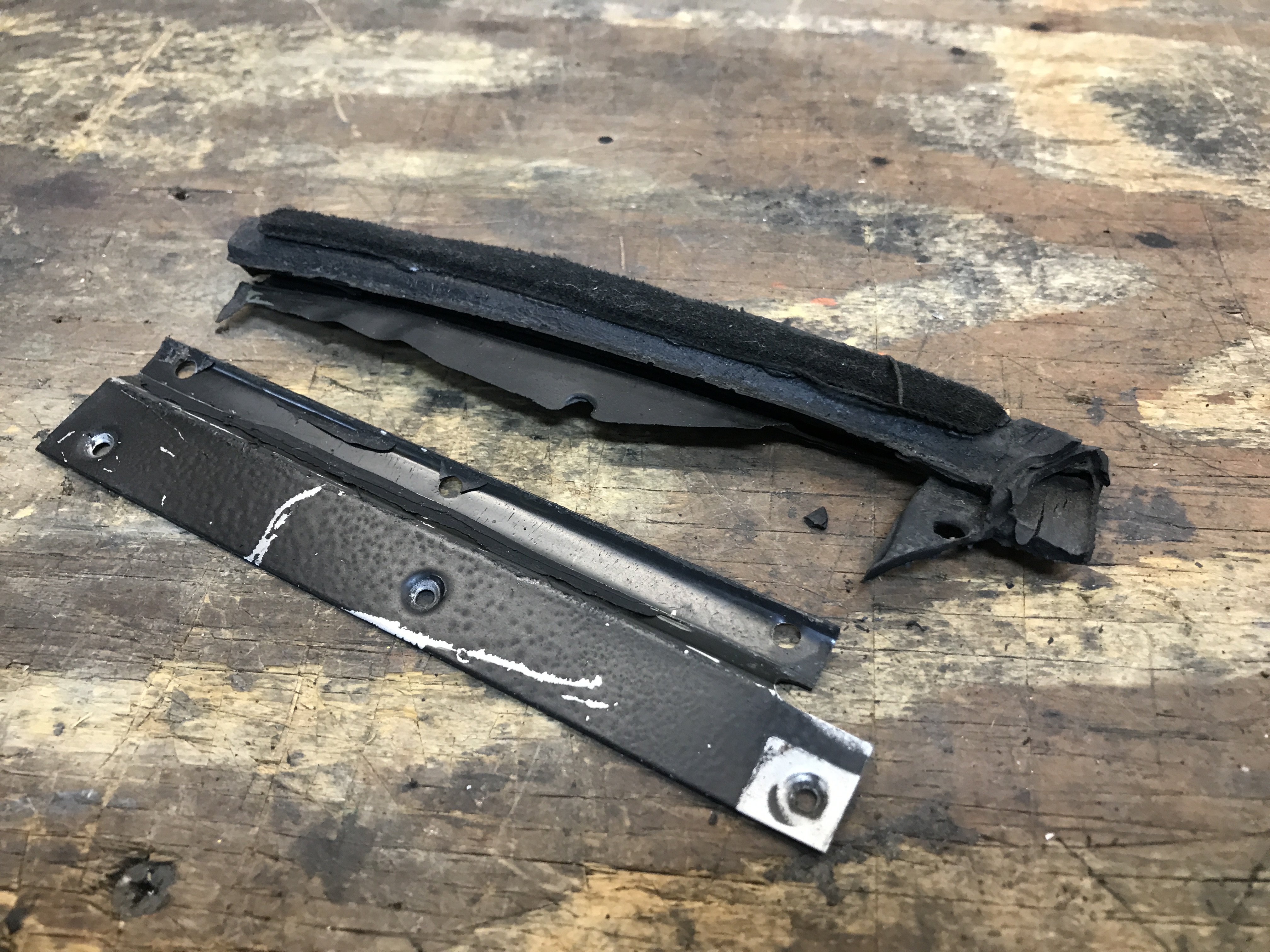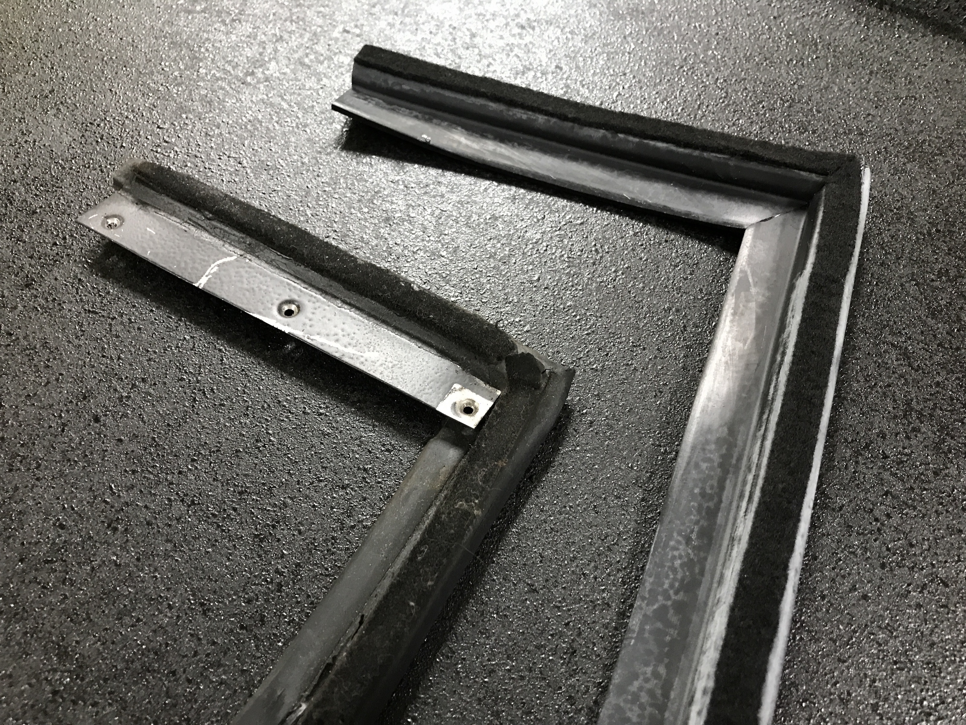 I will have to recycle the old metal strips from the original rear weatherstripping. As many of you know, the short side pieces are bonded to the rubber on the original.