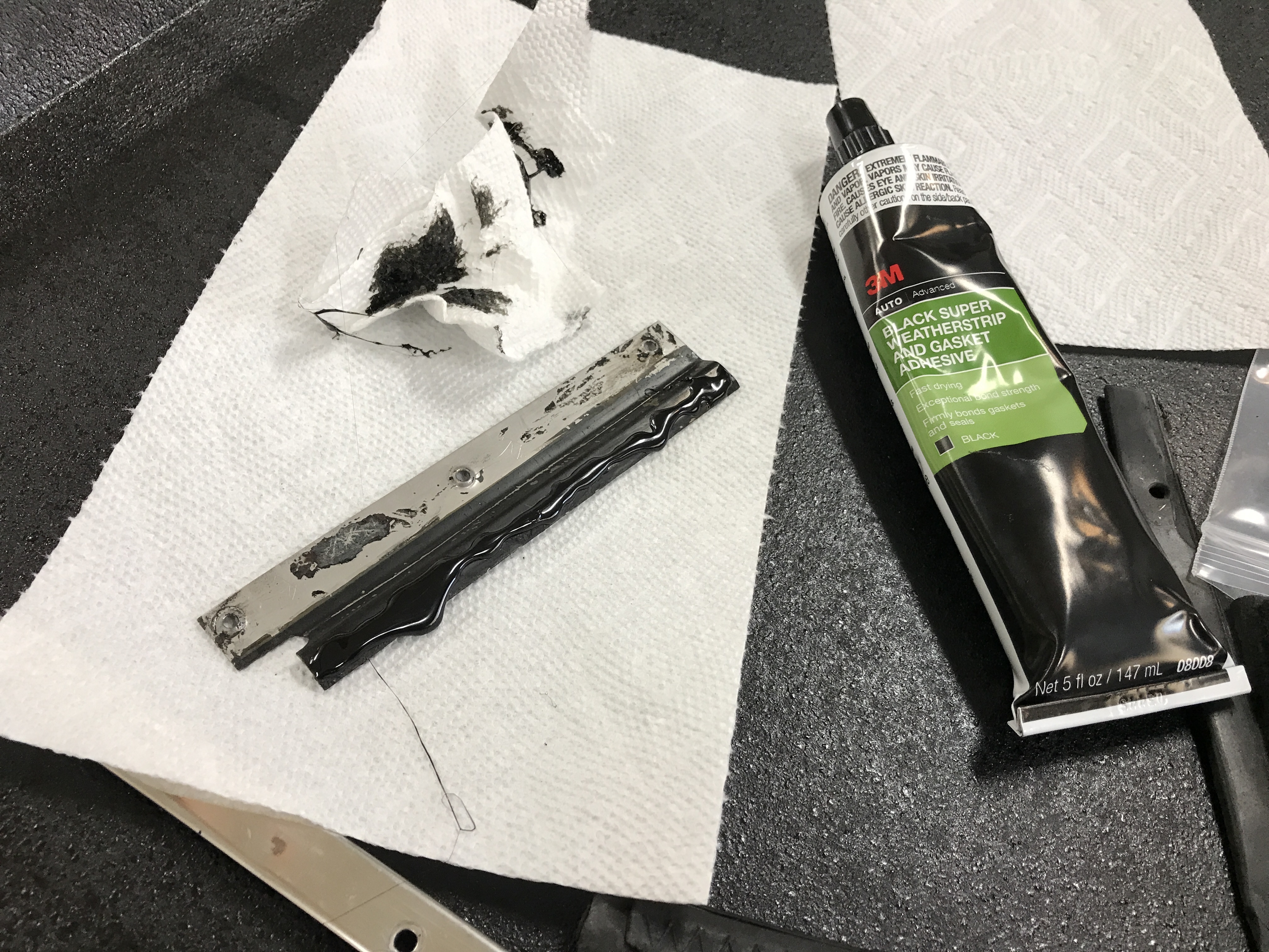 I used 3M weatherstrip adhesive to first glue the entire rubber piece to the top, and then some glue on the side metal sections.