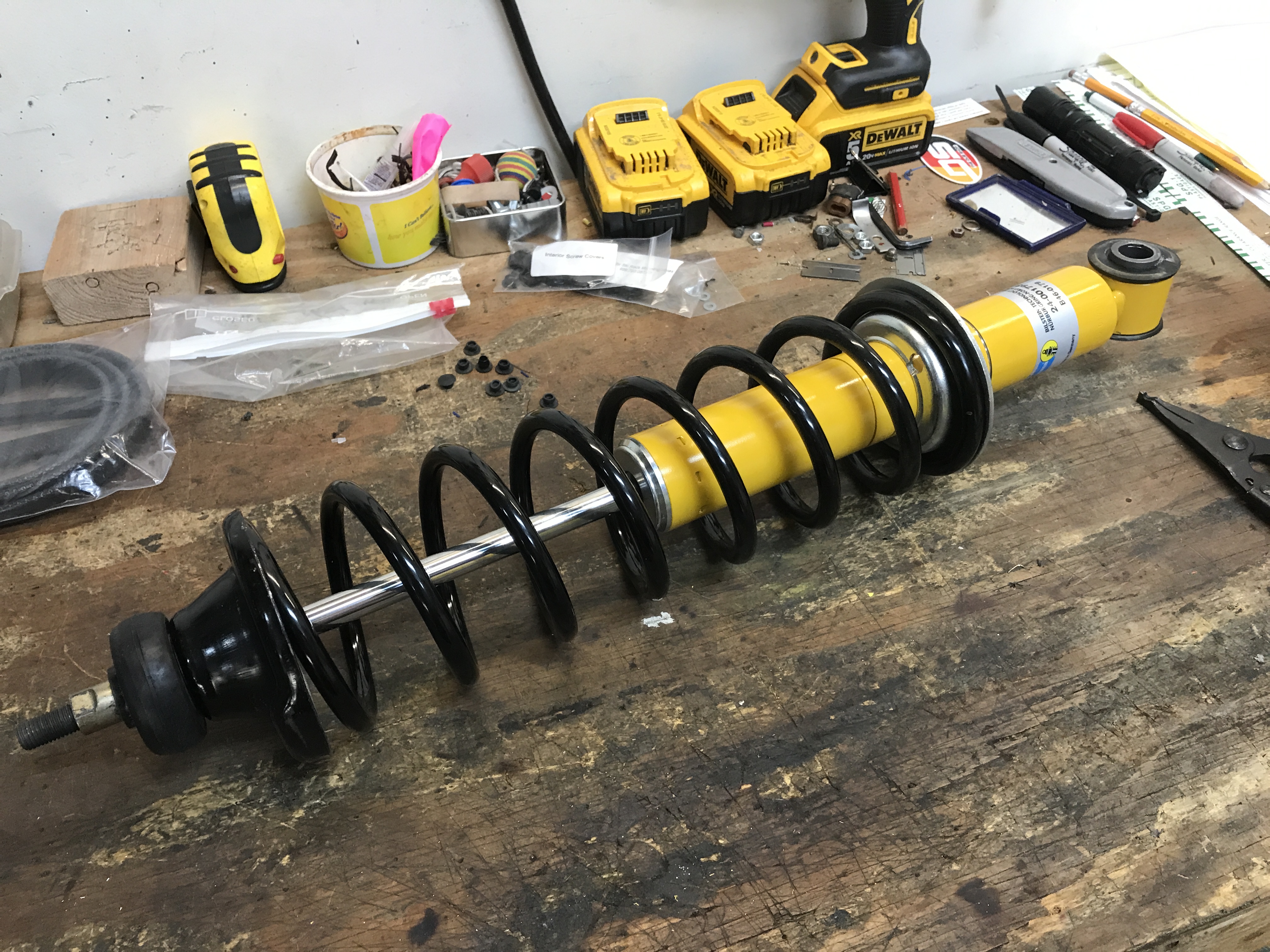 Shock and spring on the bench.