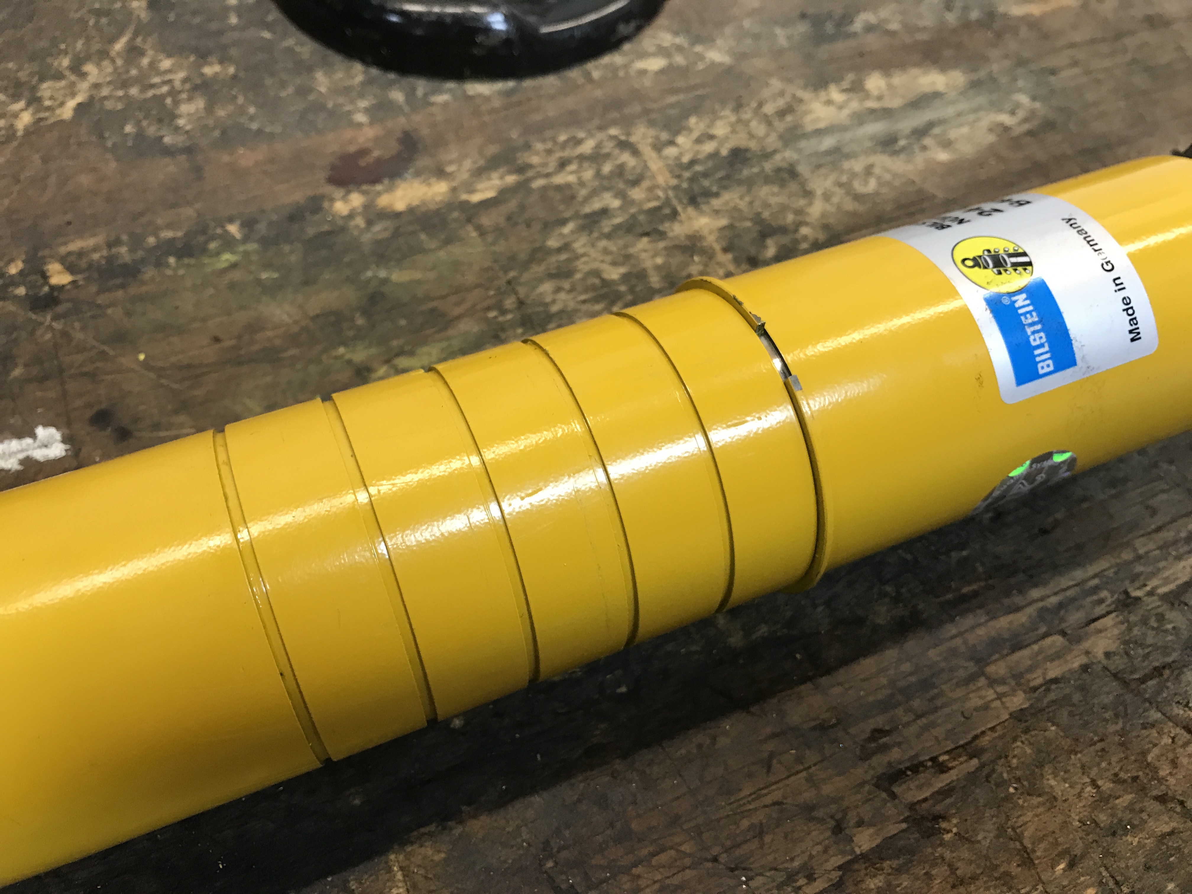 Of course, when reassembled, the spring is now shorter than the full shock length. I will think about tying the spring to the upper and lower perches.