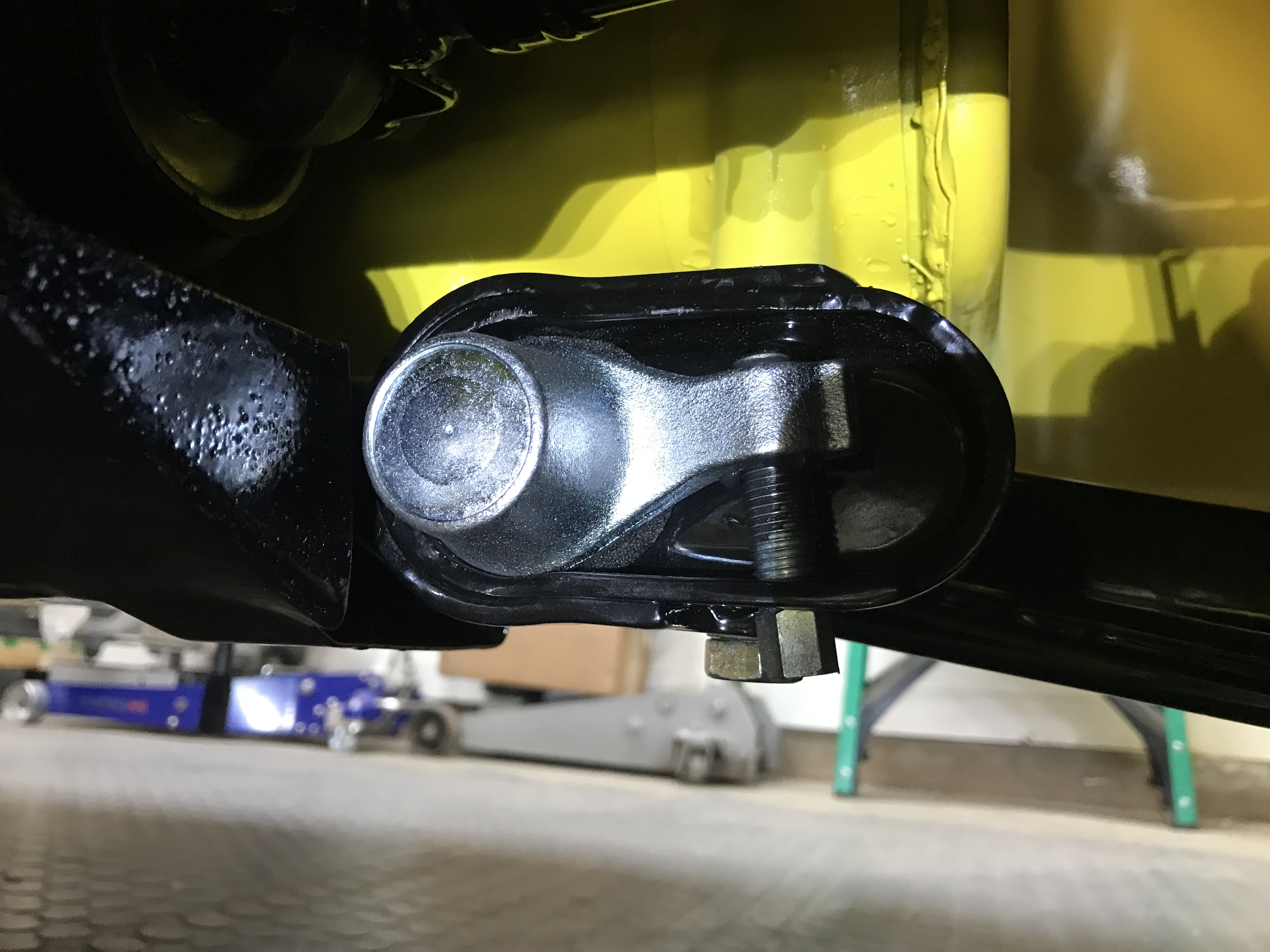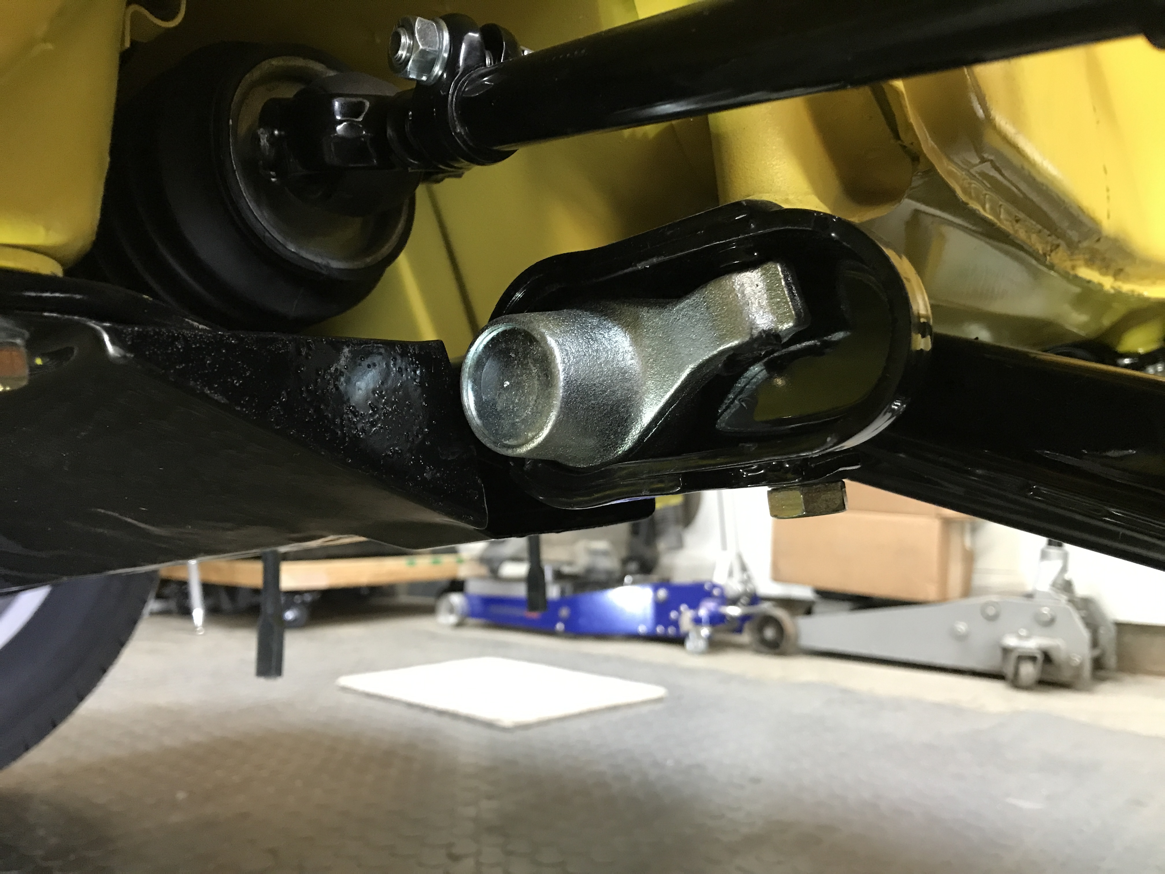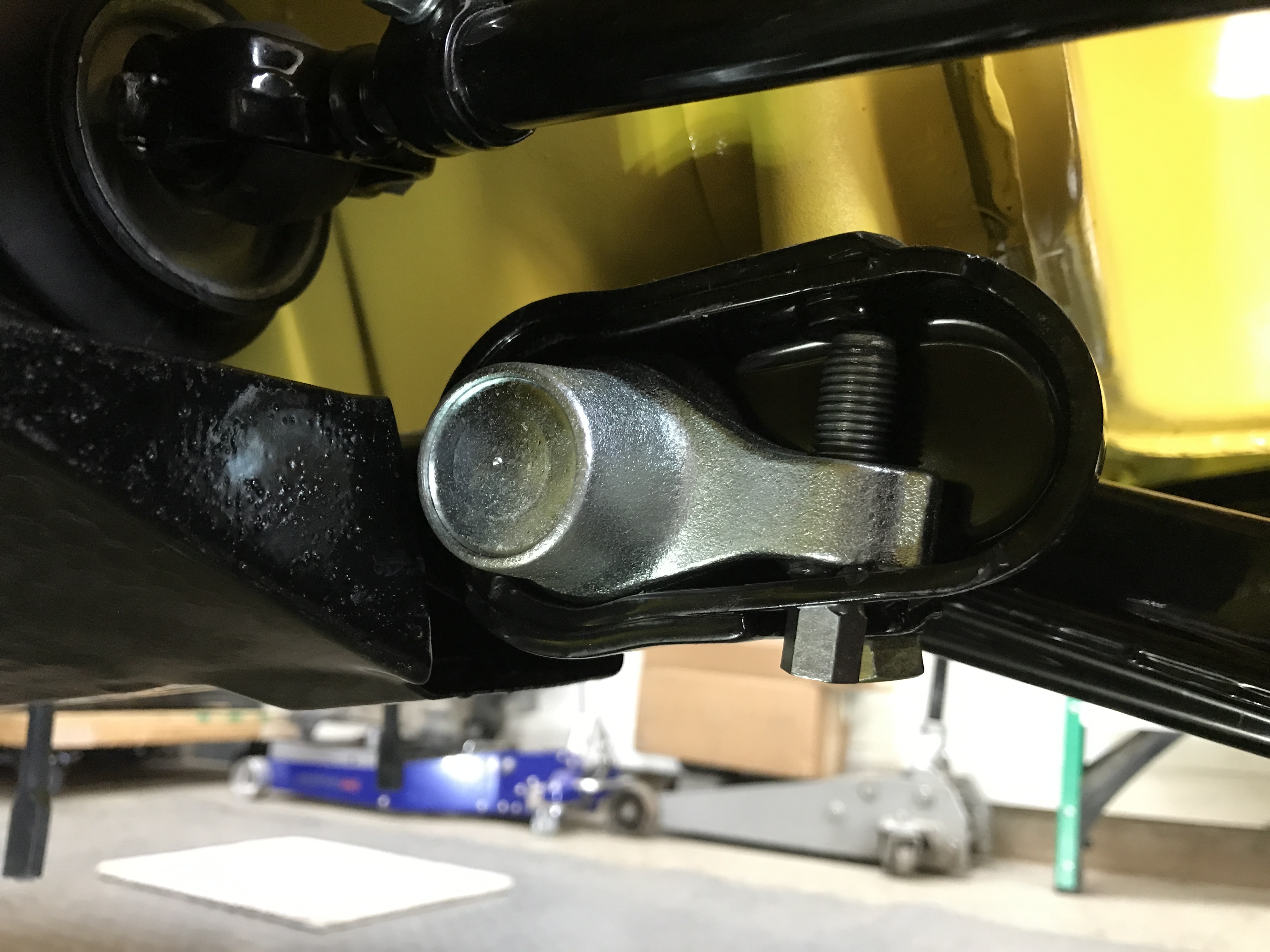 Ride height fun day 3. To lower the front more, I had to reset the torsion bar caps. Here is the right side the way I first installed it (with the adjusting screw removed).