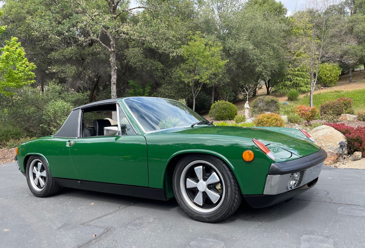 Here is mine sitting in the driveway Friday after a little drive. I do like the 914 low, but I do not want to be dragging over speed bumps. But they look so much better, in my mind, when lowered. BTW, I am running deep 6 wheels with 195x55x15 Yokohama tires. If I could have got 205x60x15 tires I would have. |