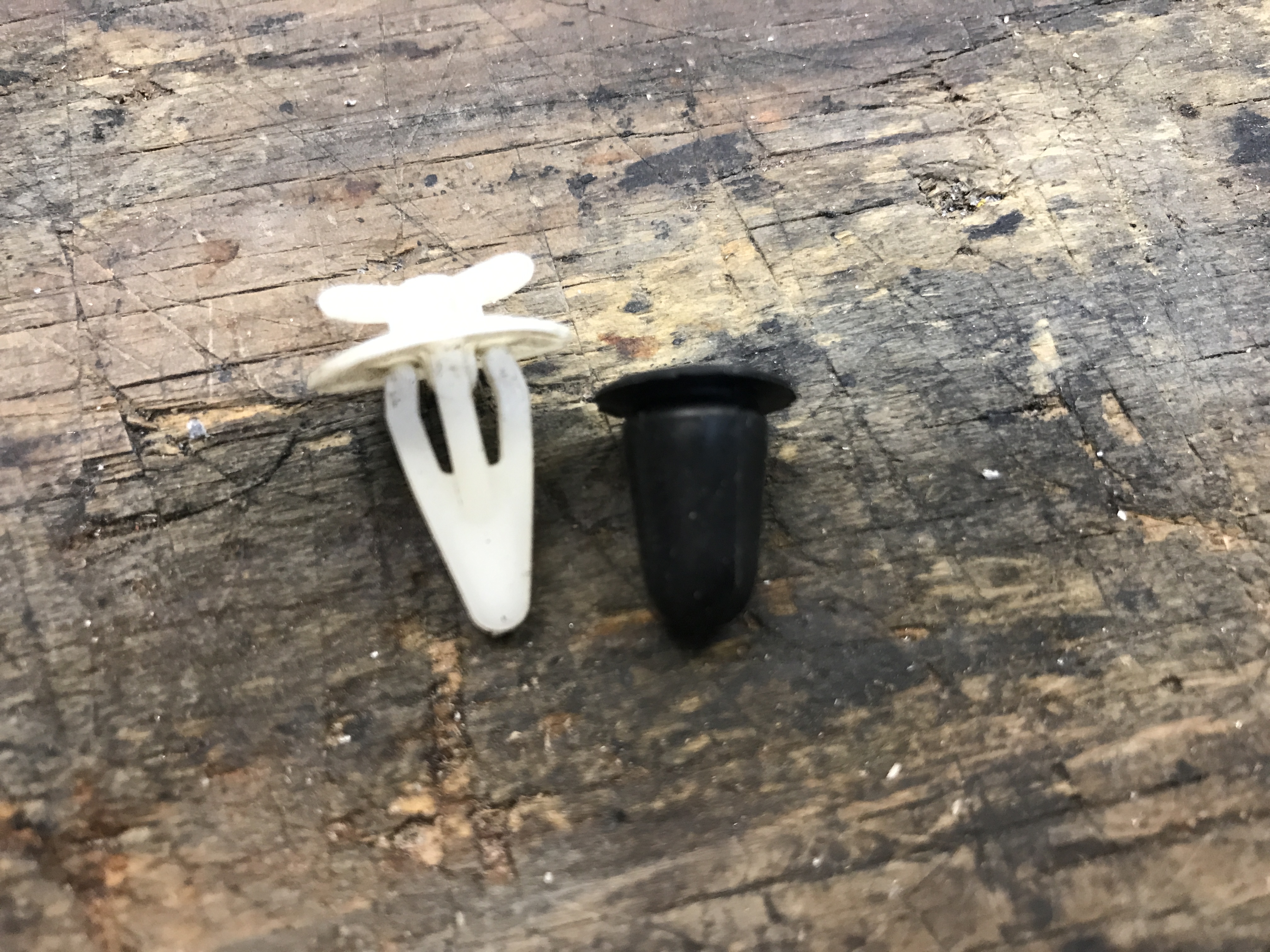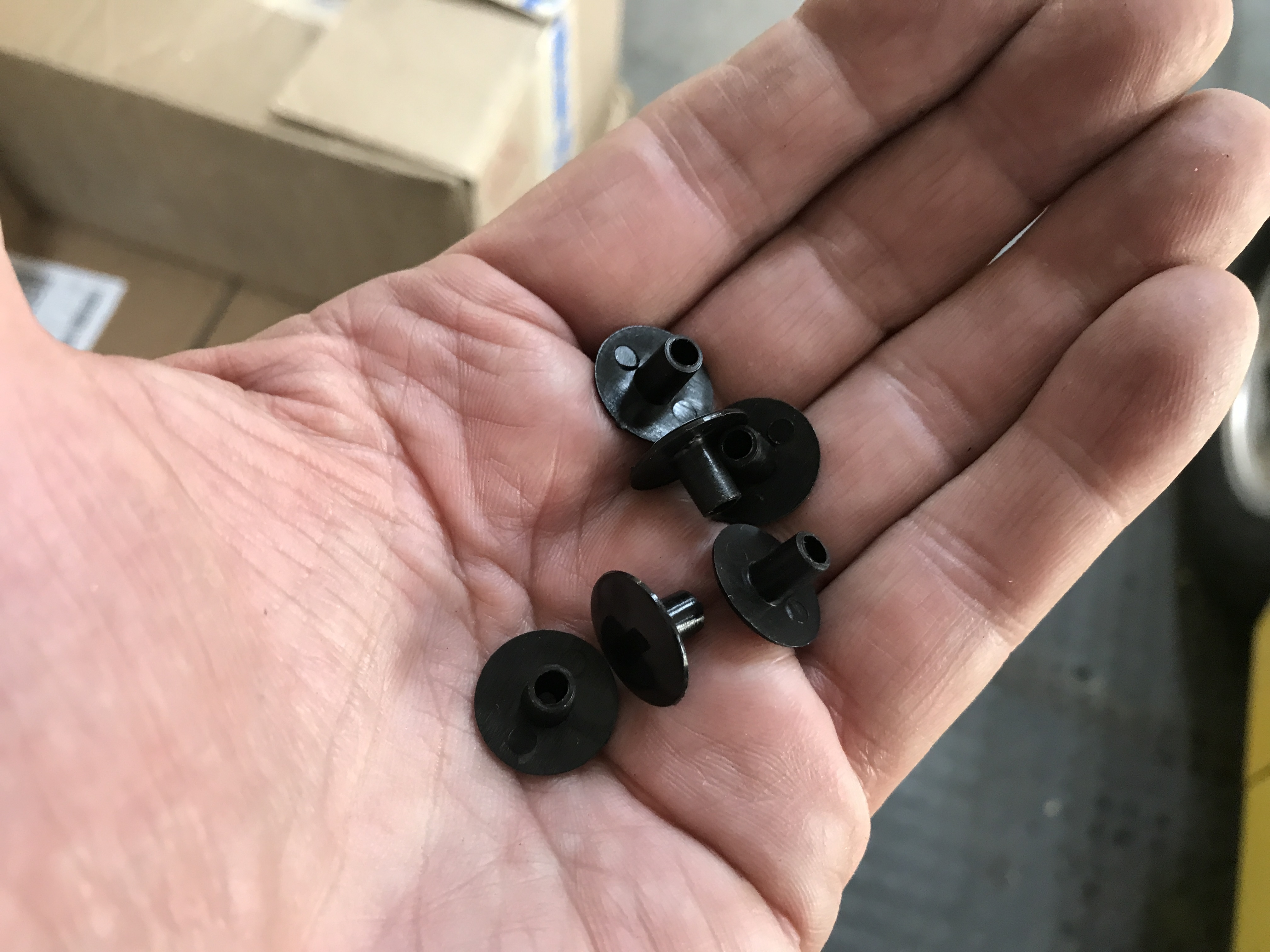 That's when I discovered that these are not compatible with the stock retaining pins, since the black cups are too short. ARGH! More small parts to order. Not sure the black cups are even needed??? I just went with the factory retaining pins (no cups) and the panels stayed on fine. I think the cups are partly a water barrier. Anyway, when my next order arrives I should have all kinds of cups and pins. |
